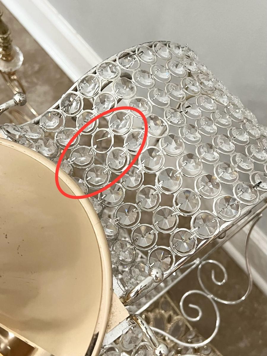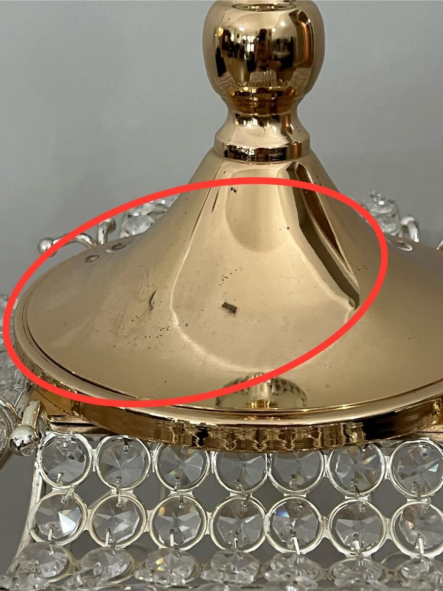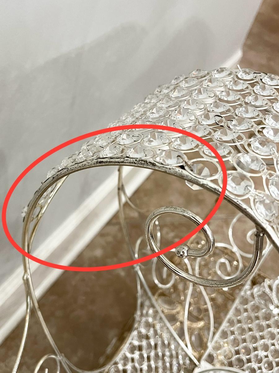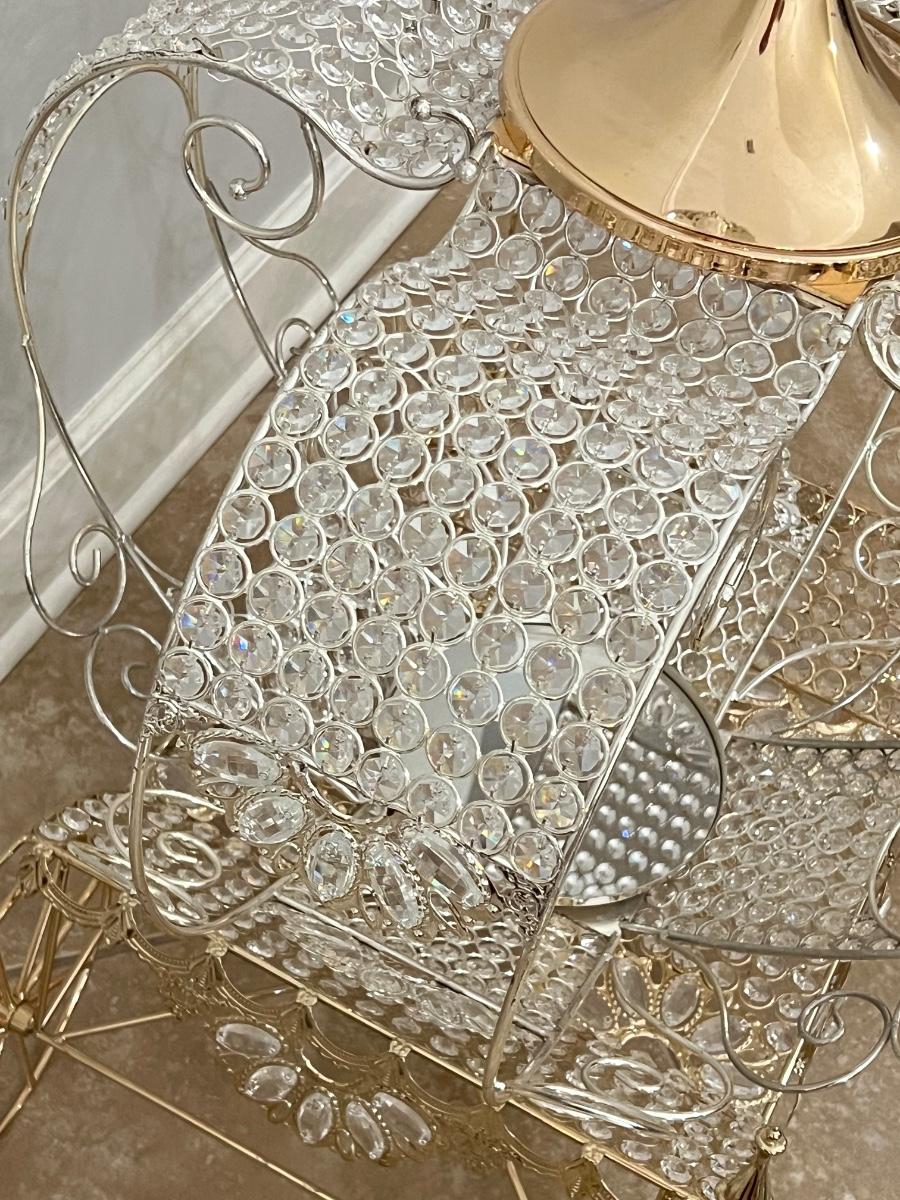 Carriage is silver & gold ~ Crystal piece is missing at the top & metal has wear, see photos ~ 36” H x 29” W x 24” D