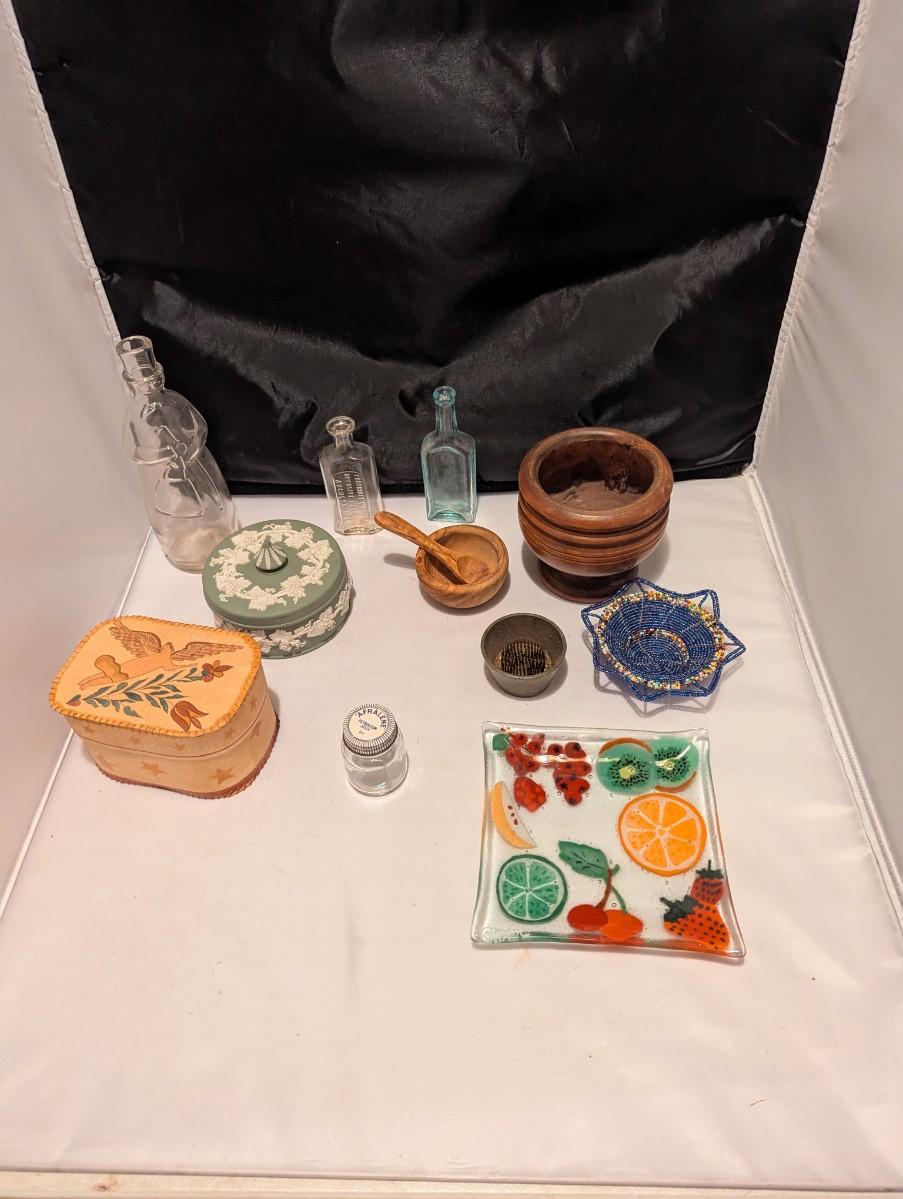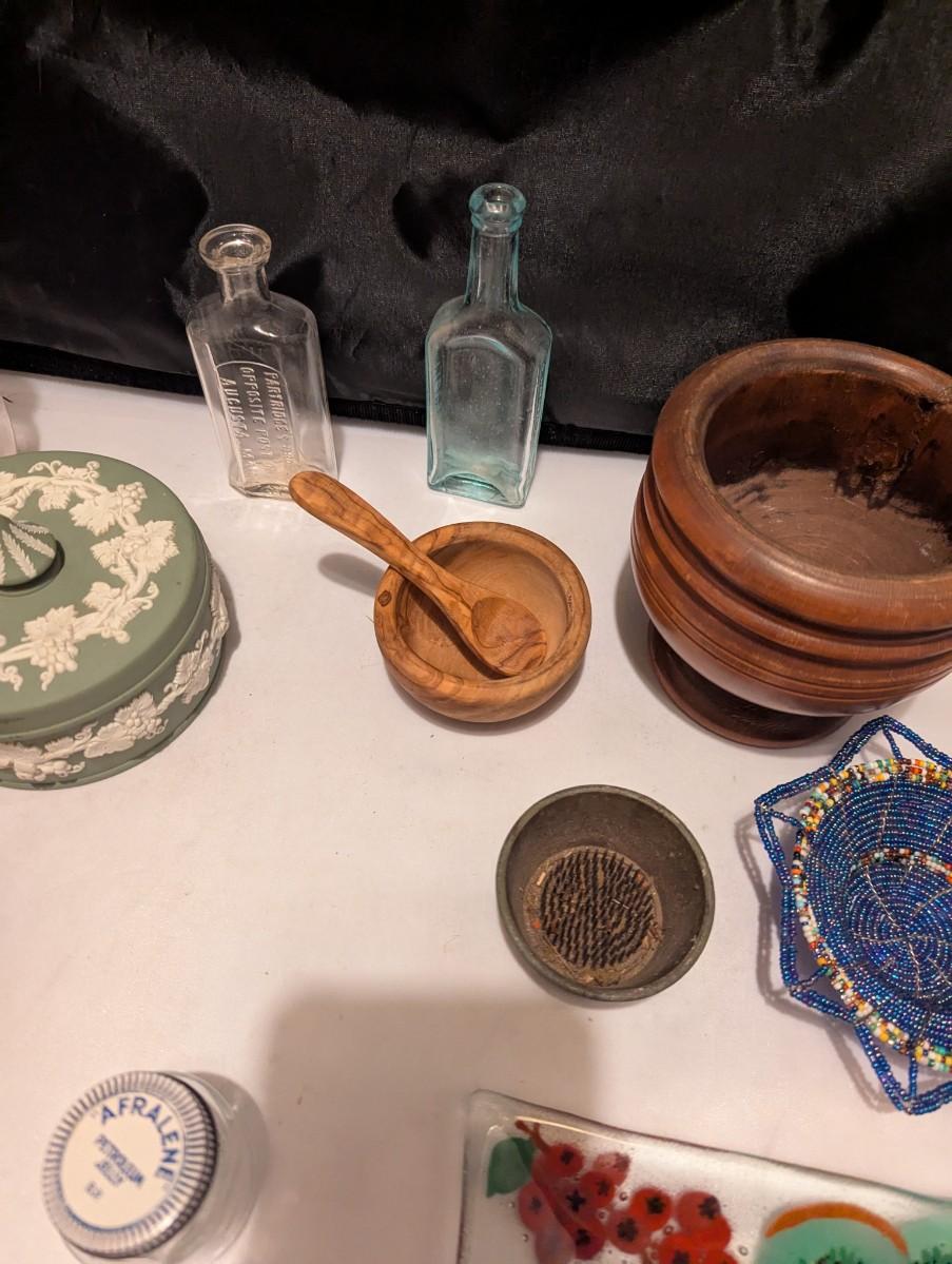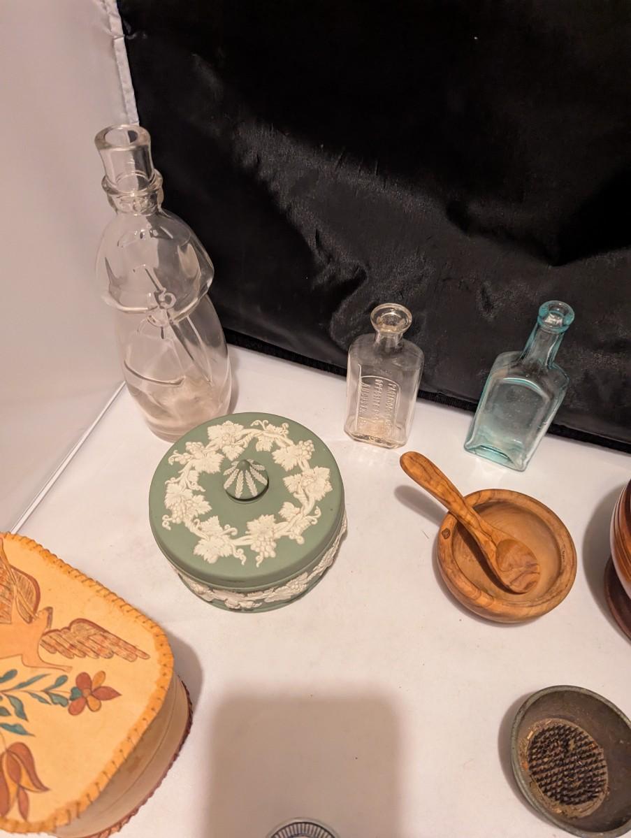 Carrie Nation Vinegar Bottle Wedgwood Jasperware Trinket Box Flower Frog Beaded Hand Made Bowl (B)