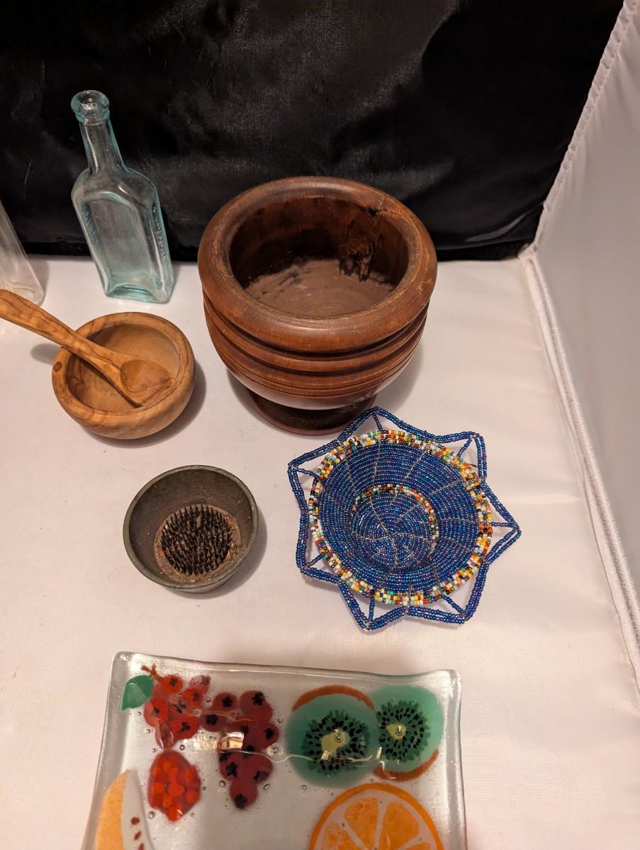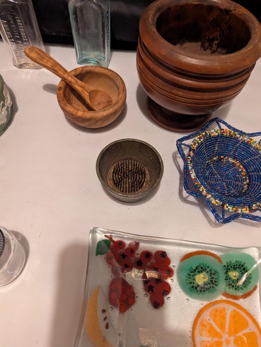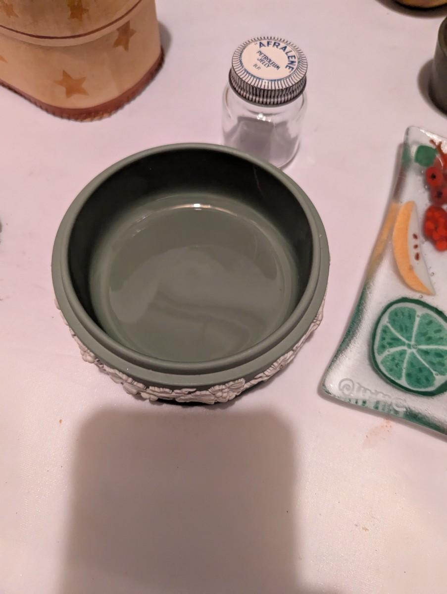 Carrie Nation Vinegar Bottle Wedgwood Jasperware Trinket Box Flower Frog Beaded Hand Made Bowl (B)