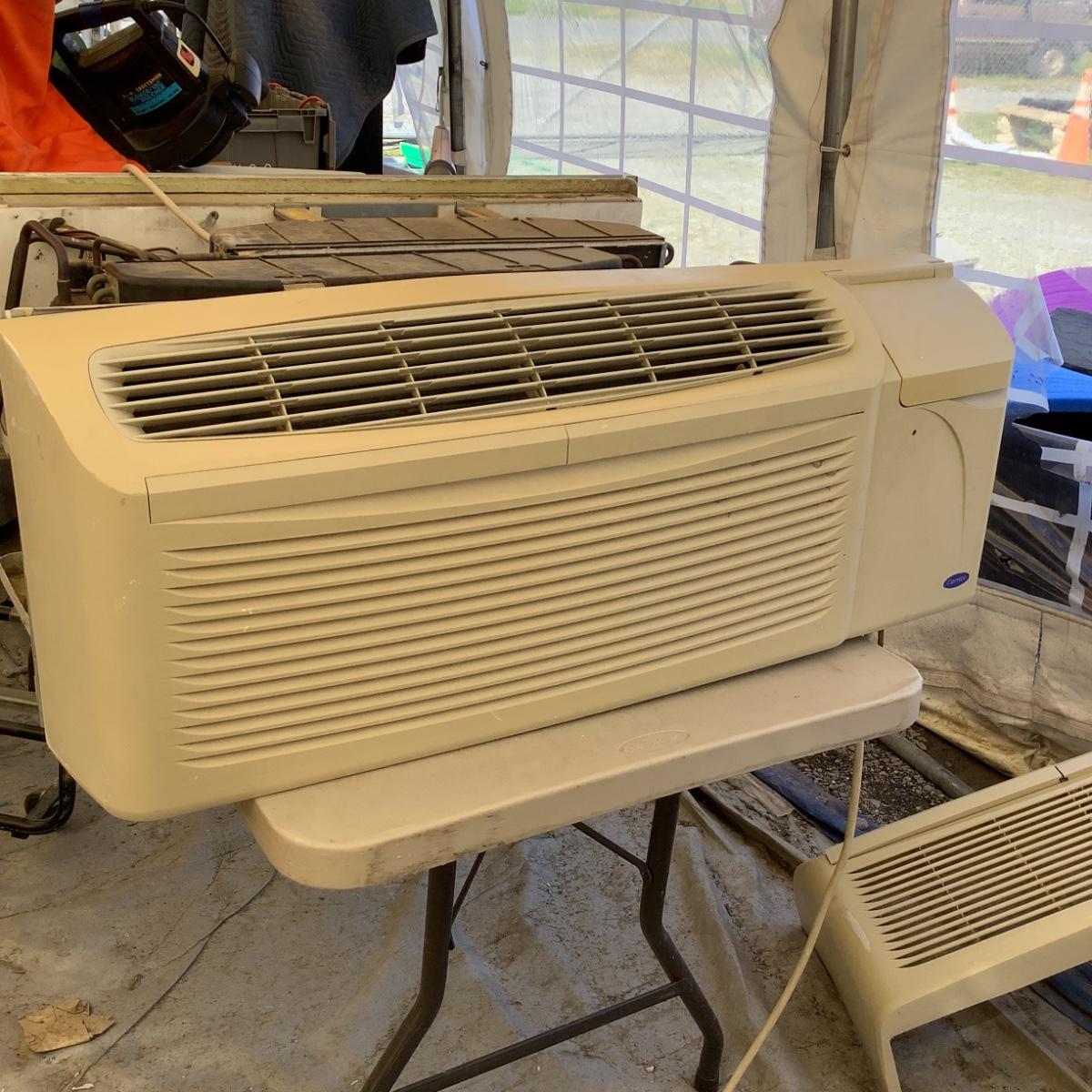 **All A/C units are missing exterior wall sleeve compressor weather covers with exterior front air flow grill. All Units were in working order when uninstalled on-site. After uninstalling units were not tested/plugged in prior to publishing on this auction.**