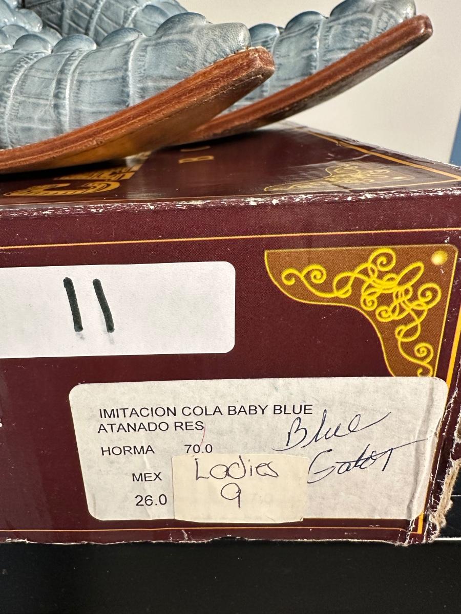 CARILLO BLUE GATOR LADIES BOOTS SIZE 9 IN EXCELLENT CONDITION WITH ORIG BOX