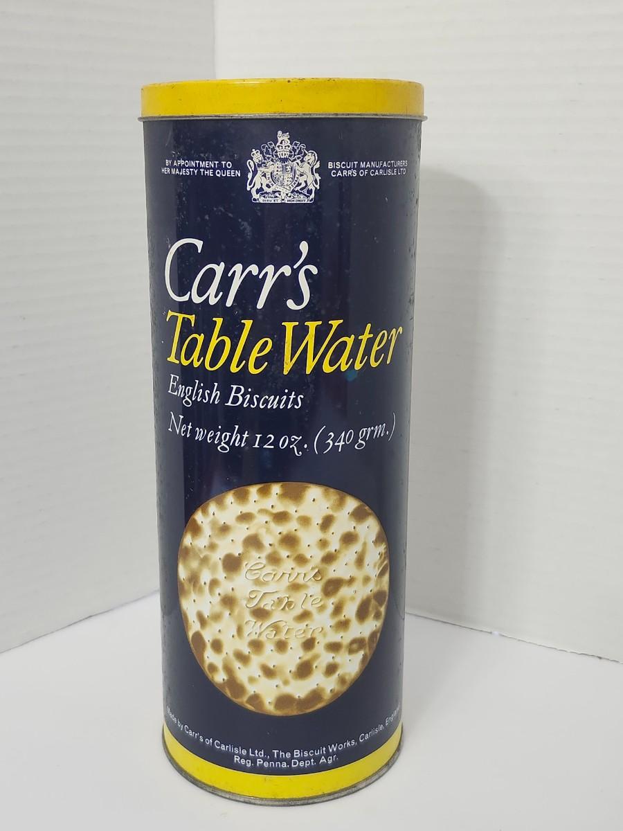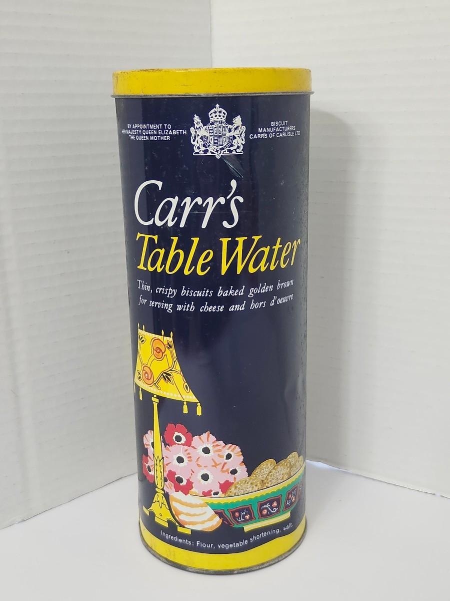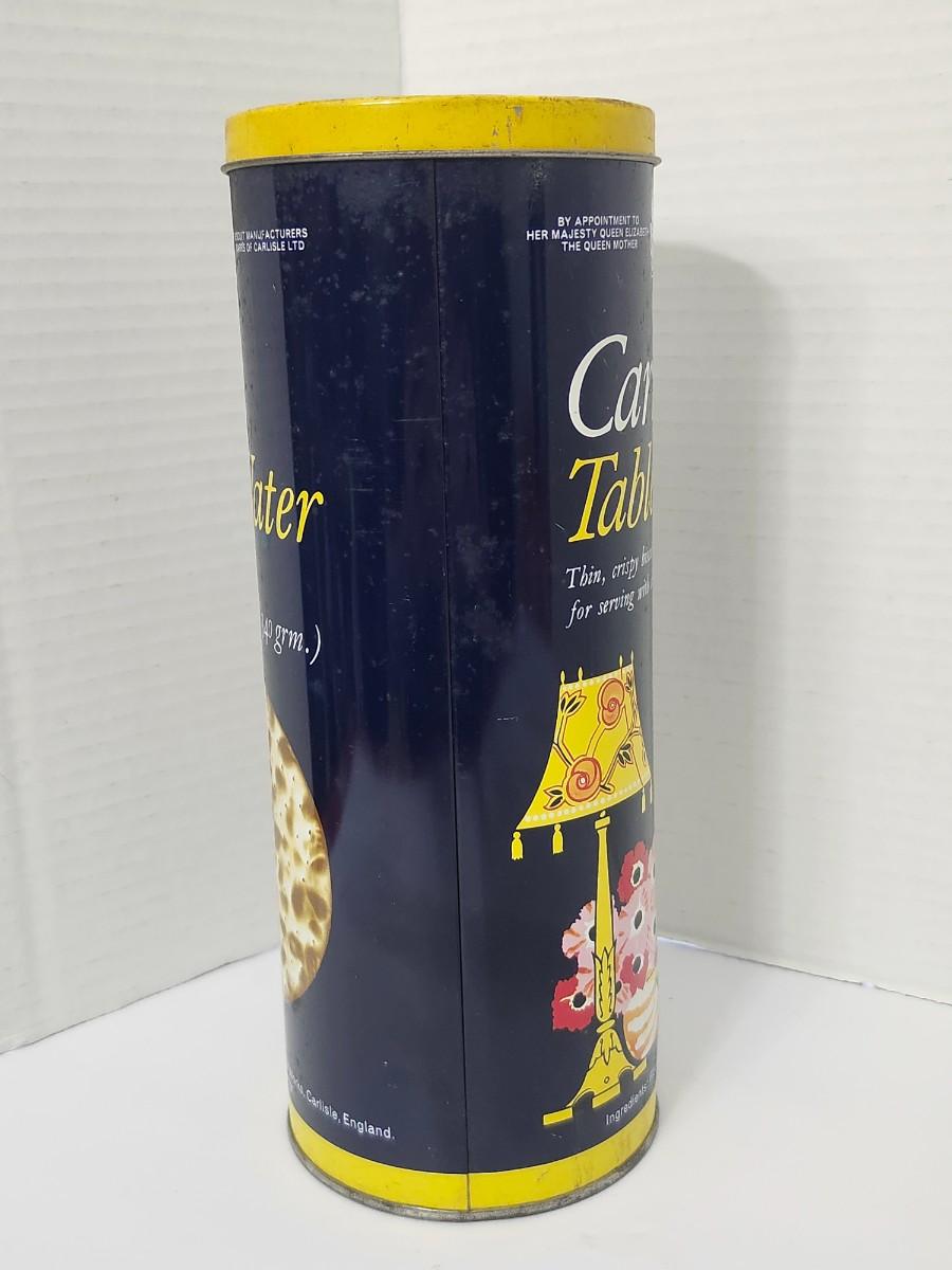 Carr’s Table Water Biscuits Tall Cylindrical Tin Queen Elizabeth The Queen Mother Crest