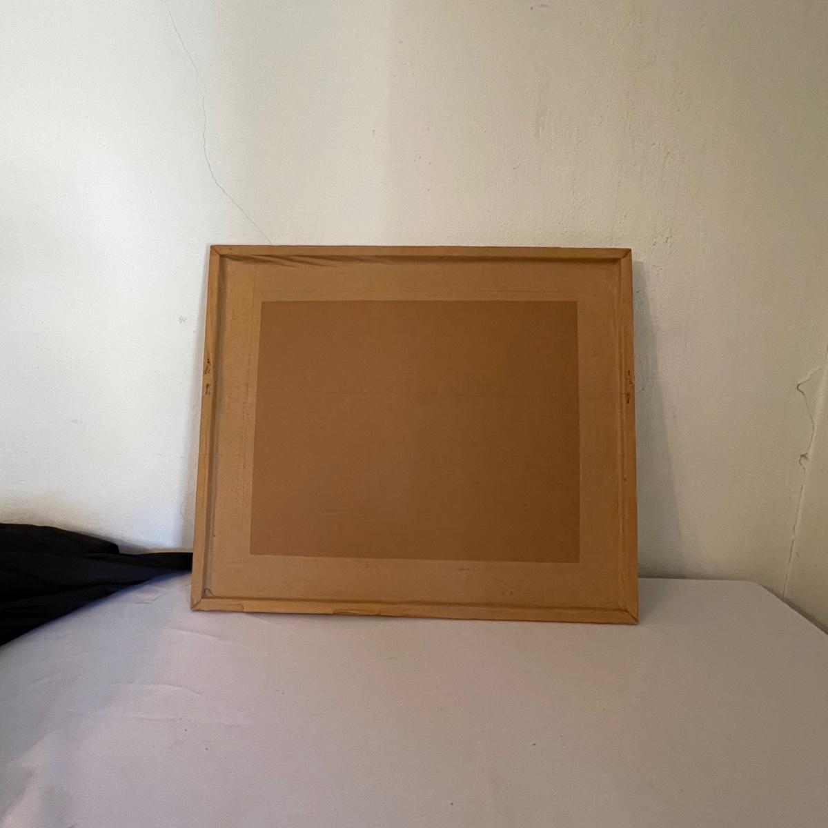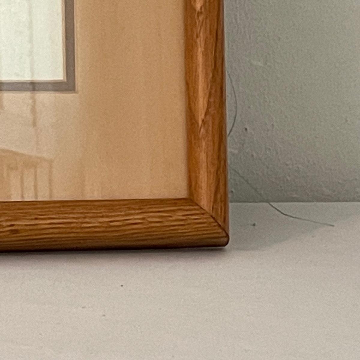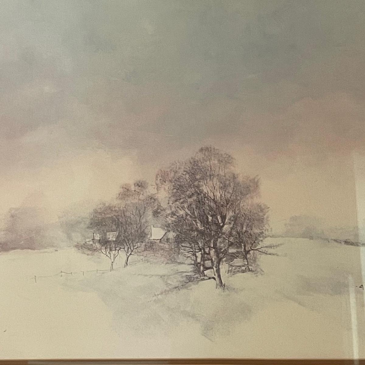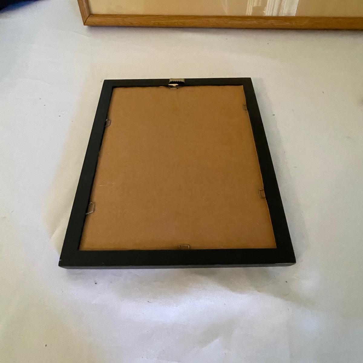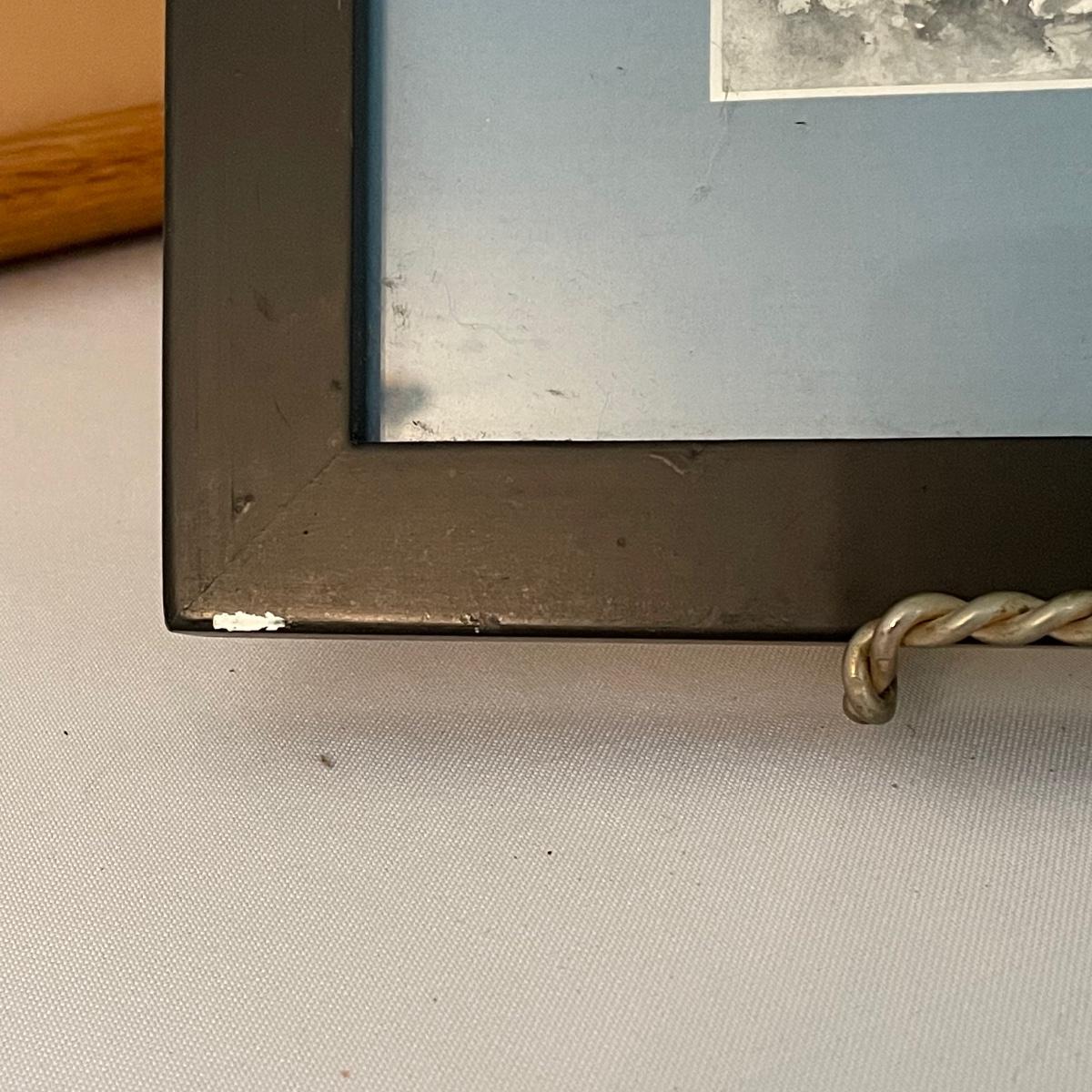 Both of the prints in this lot have signatures. The small watercolor is matted and mounted in a black frame that has a few scuff marks. The larger print appears to be pastels and it’s frame is a natural wood. Also included is a Carruth’s aged stone plaque that is their signature “˜Garden Smile’ face, it measures 7.5” x 11”.