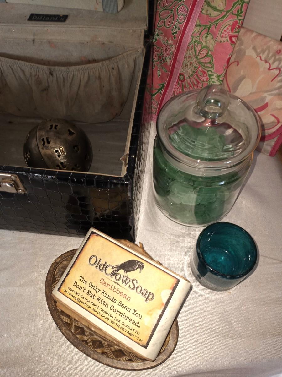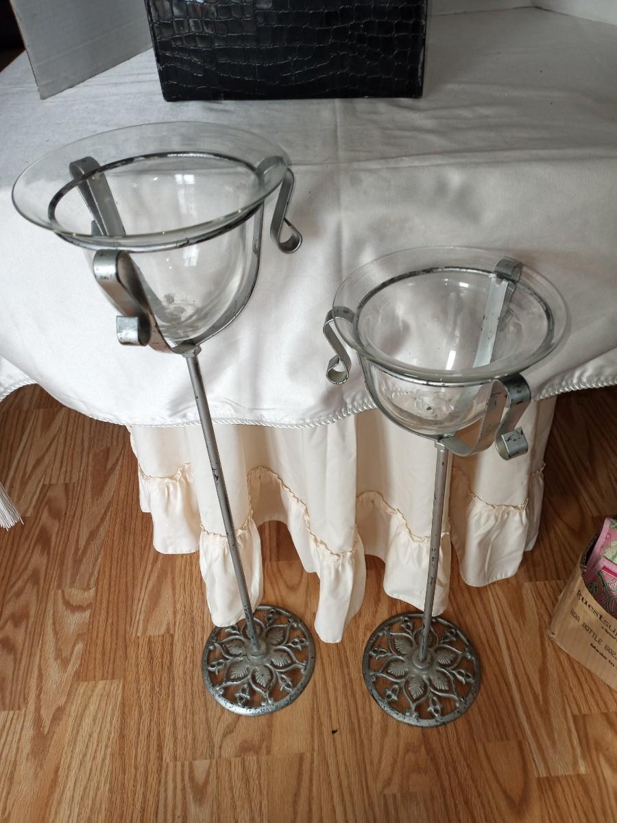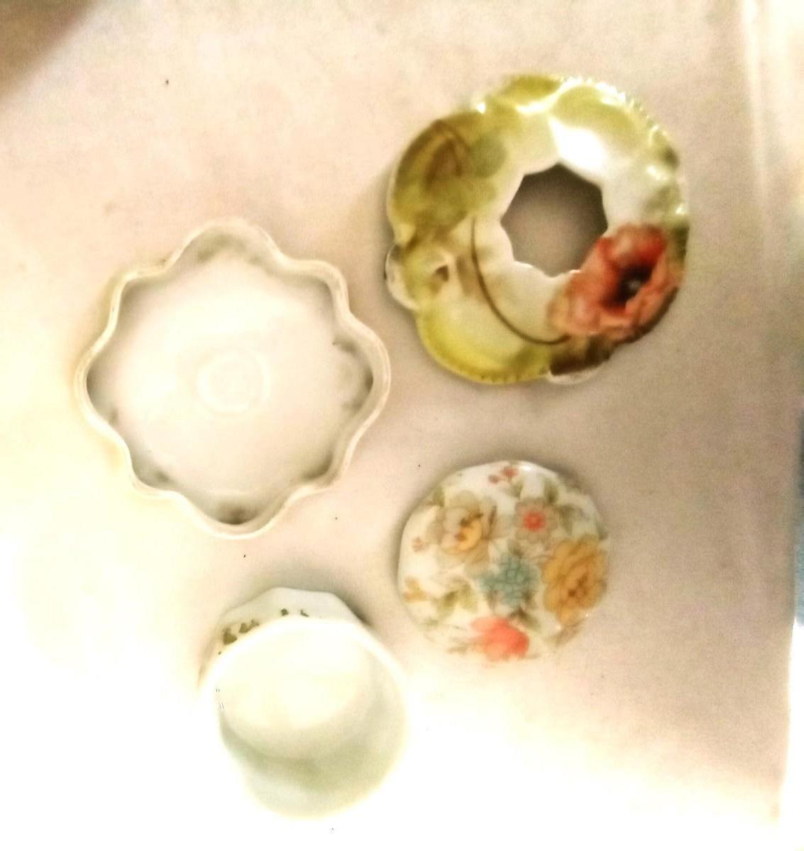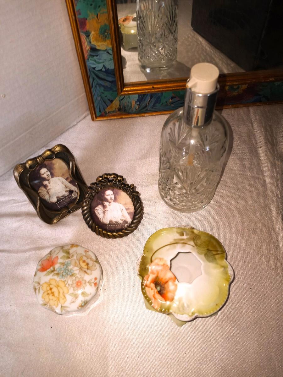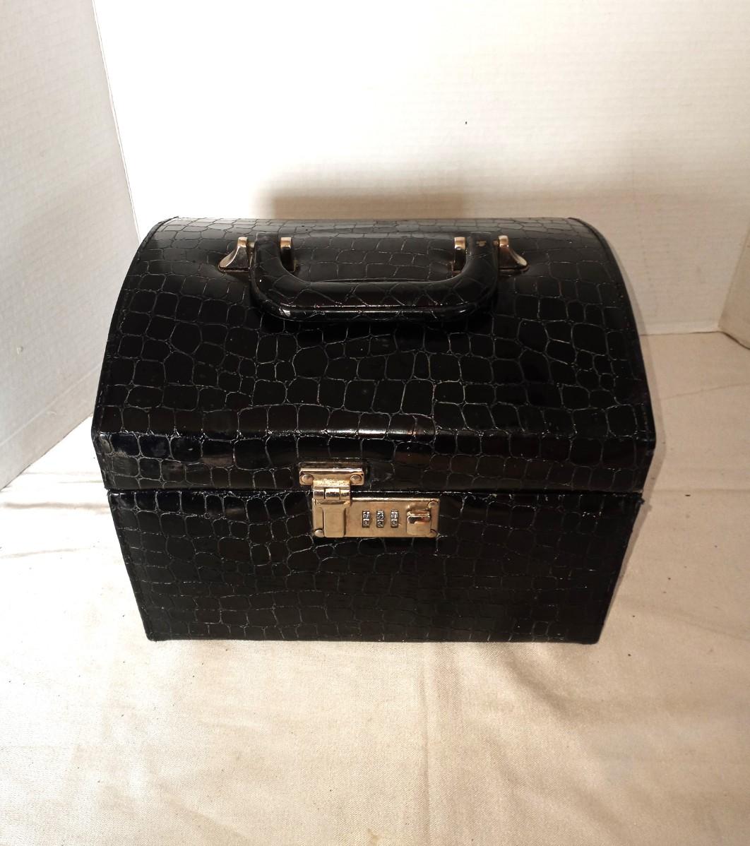 BLACK VINAL CARRY CASE-MIRROR MEASURES 13X24"-2 PORCELIAN TRINKET BOXES-VINTAGE TRINKET & COMPACTS-CANDLE HOLDERS TALLEST STANDS 28"-OTHER BEAUTY ITEMS
