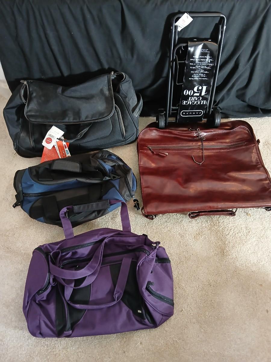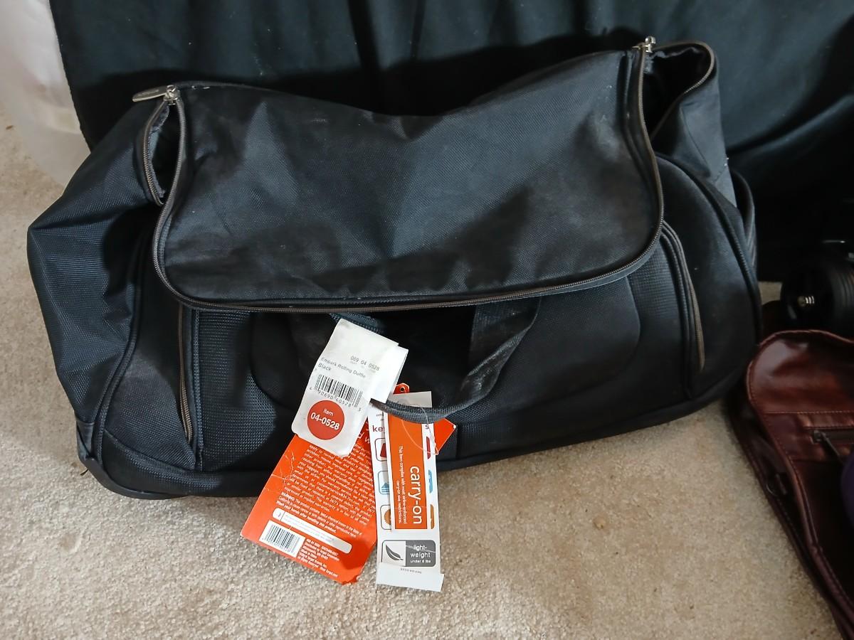 Carry on type duffle bag luggage with adjustable two wheeled luggage cart