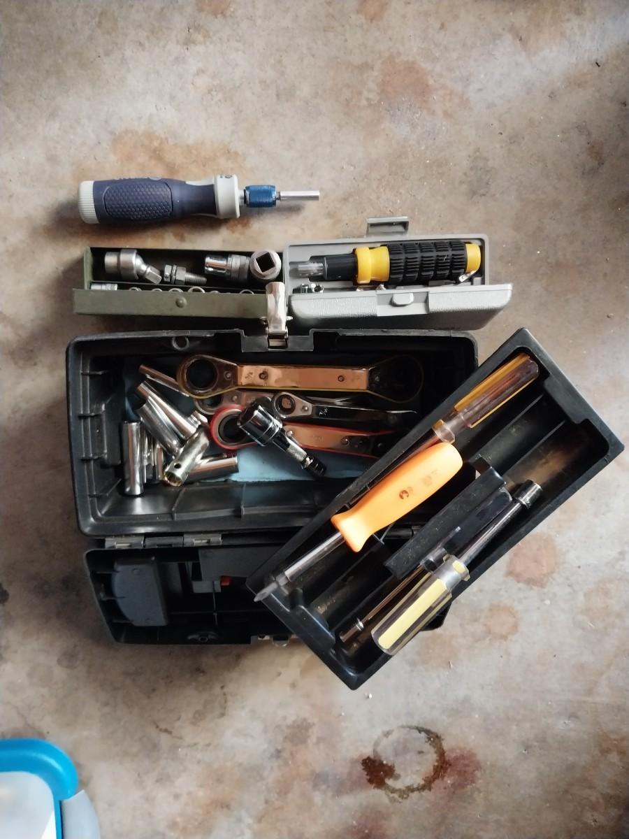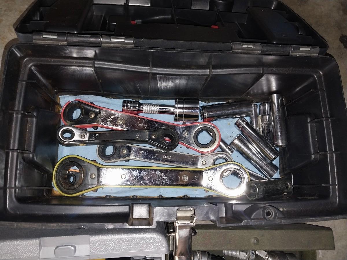 CARRY TOOLBOX FILLED WITH SOCKETS AND HAND TOOLS