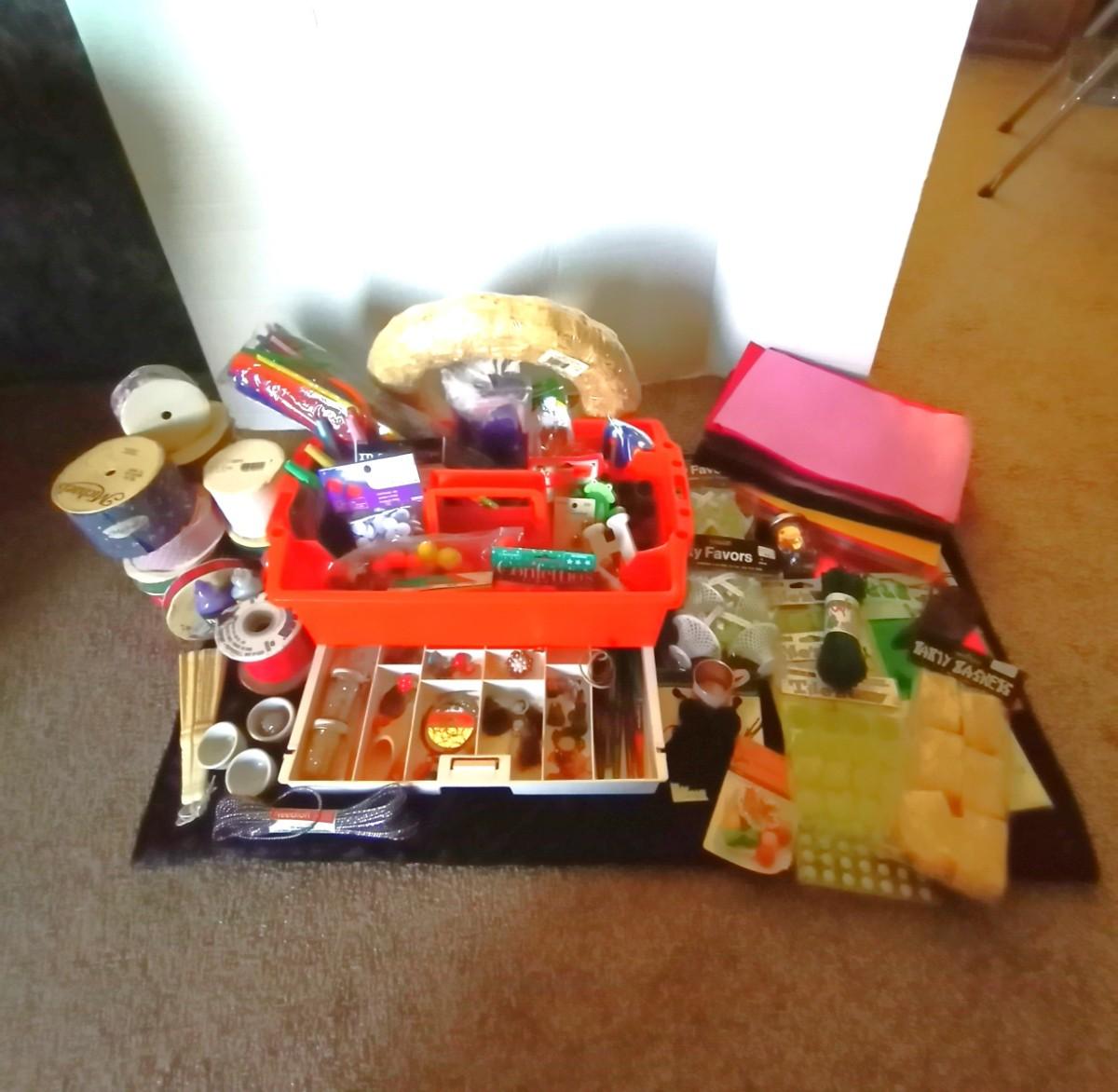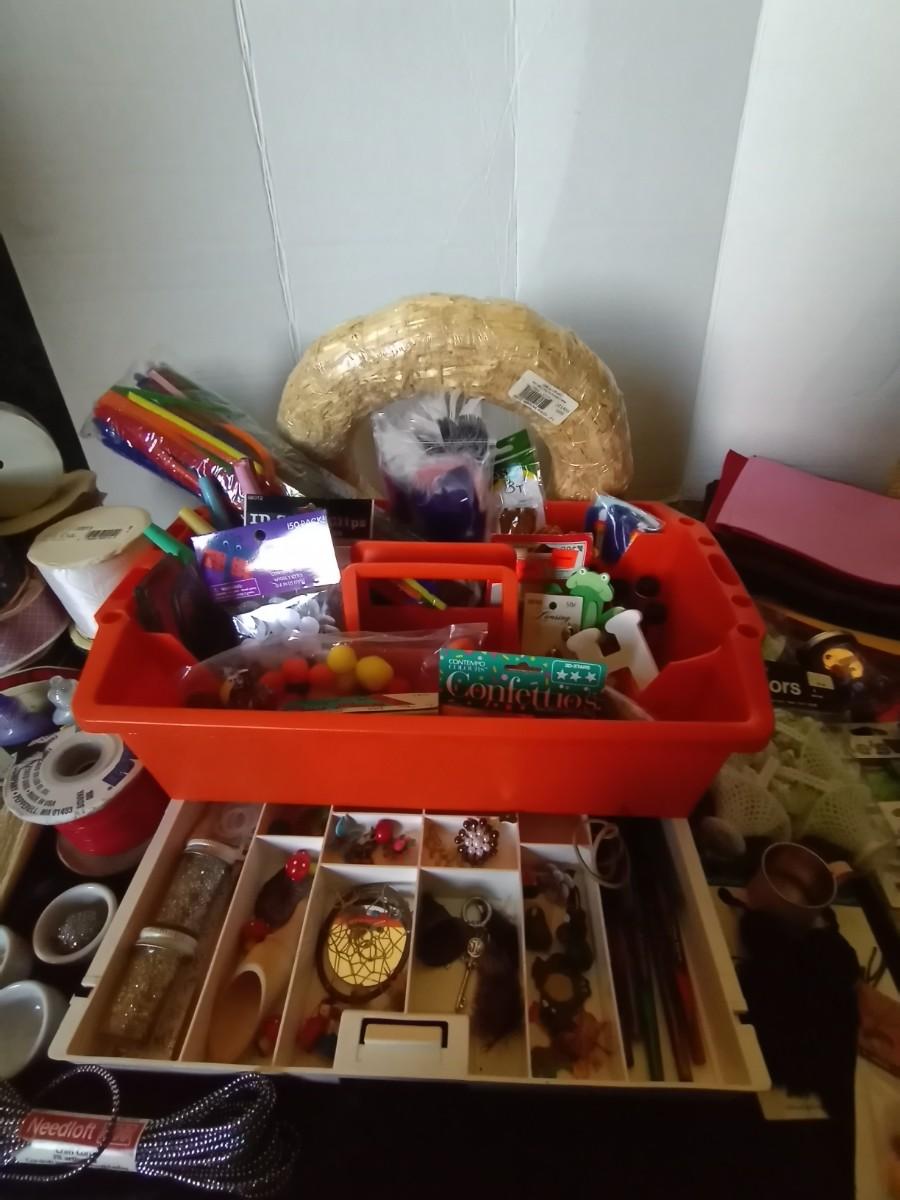 CARRY TOTE WITH DRAWER AND CRAFTING ITEMS