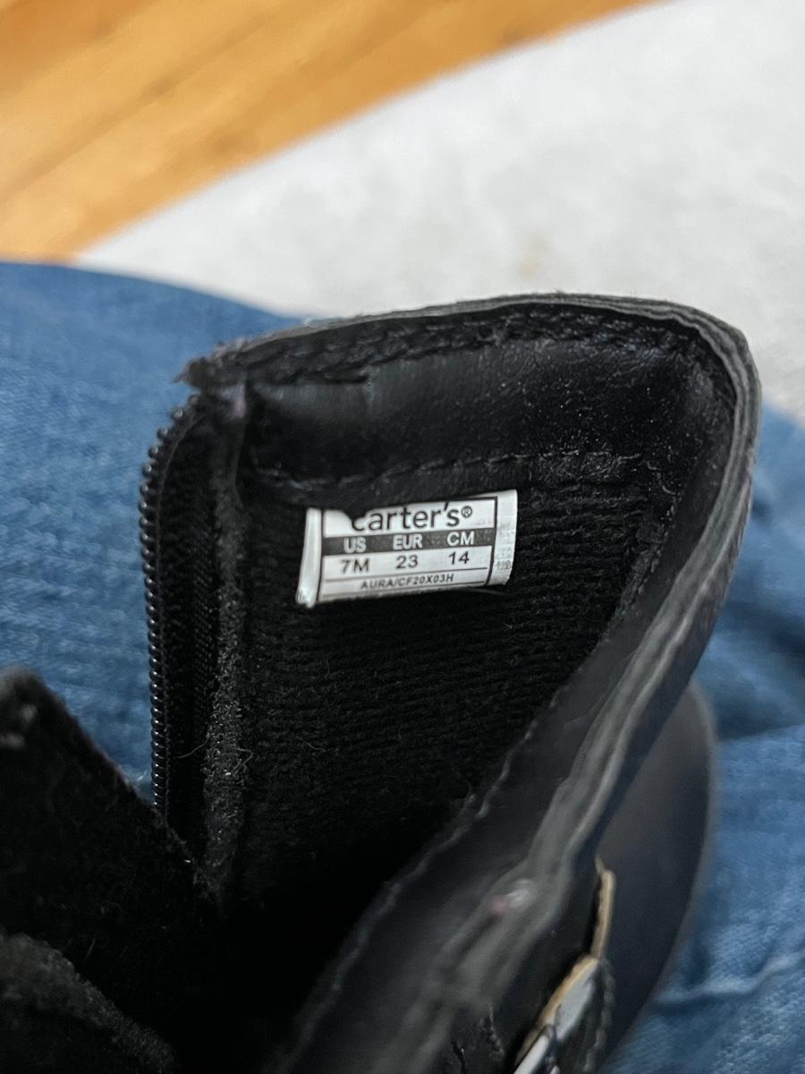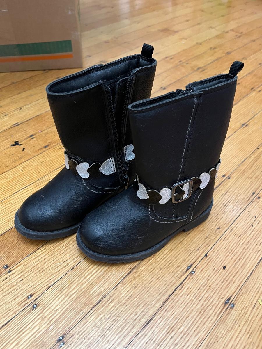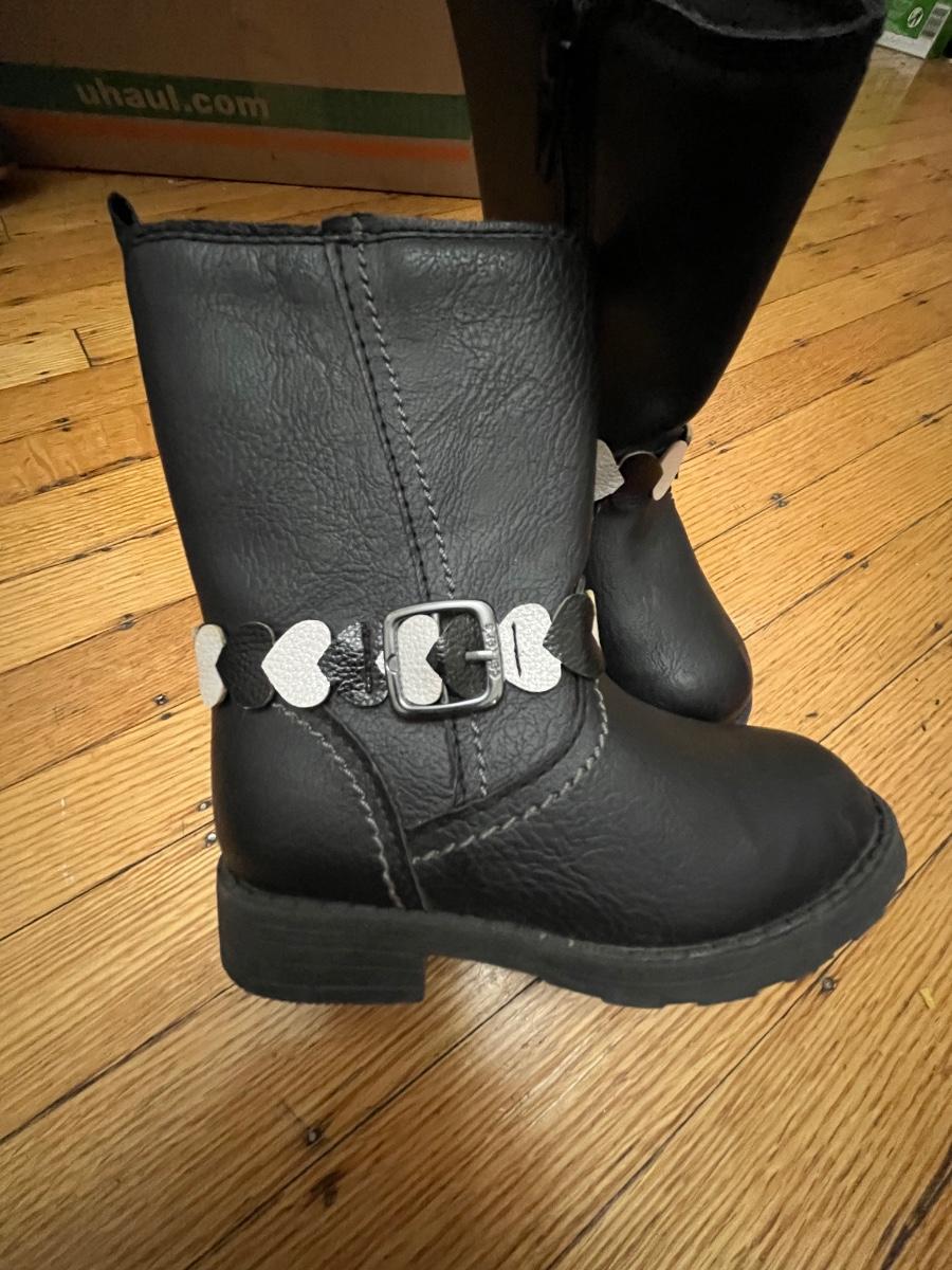 Carter's Toddler Girls Aura Fashion Boot in black faux leather with a heart strap accent in size 7M.