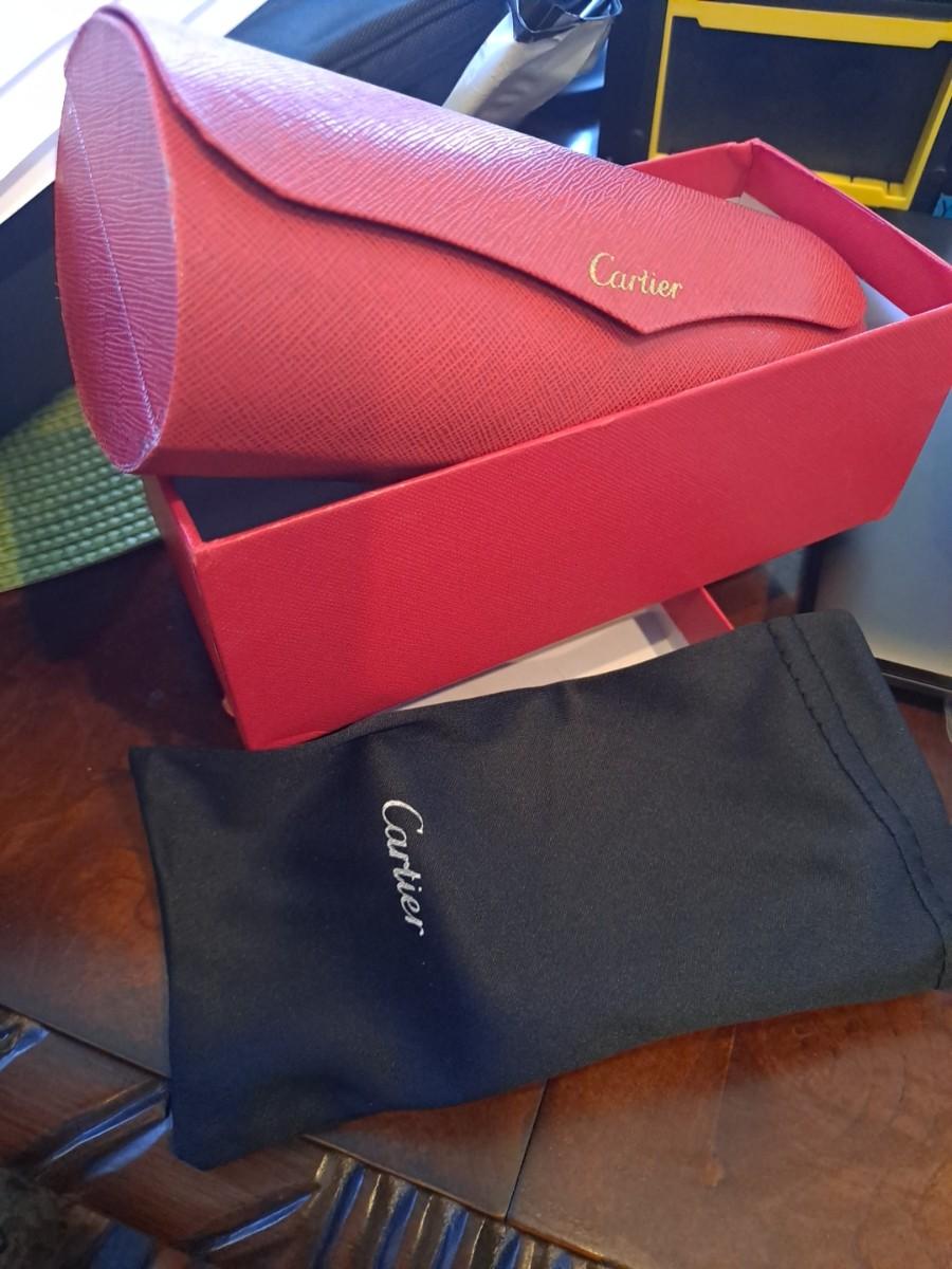 Cartier sunglasses in original box, very nice excellent quality of course because they are Cartier! These go for up to $2,000 the Cartier emblem is in the left lens. Get them while you can