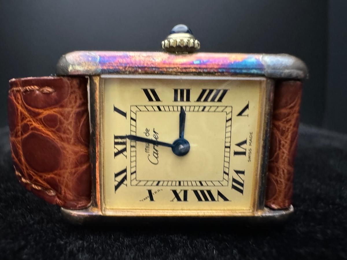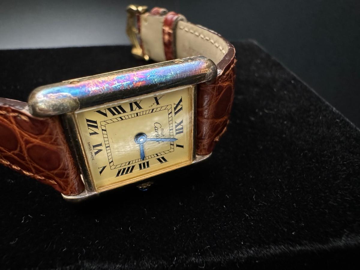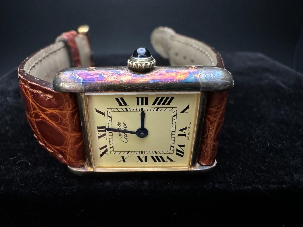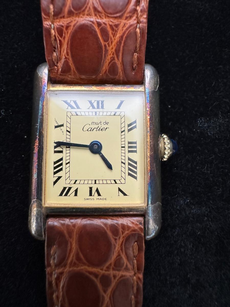 Cartier Paris Watch Argent 925 Plaque OR G 20M Swiss