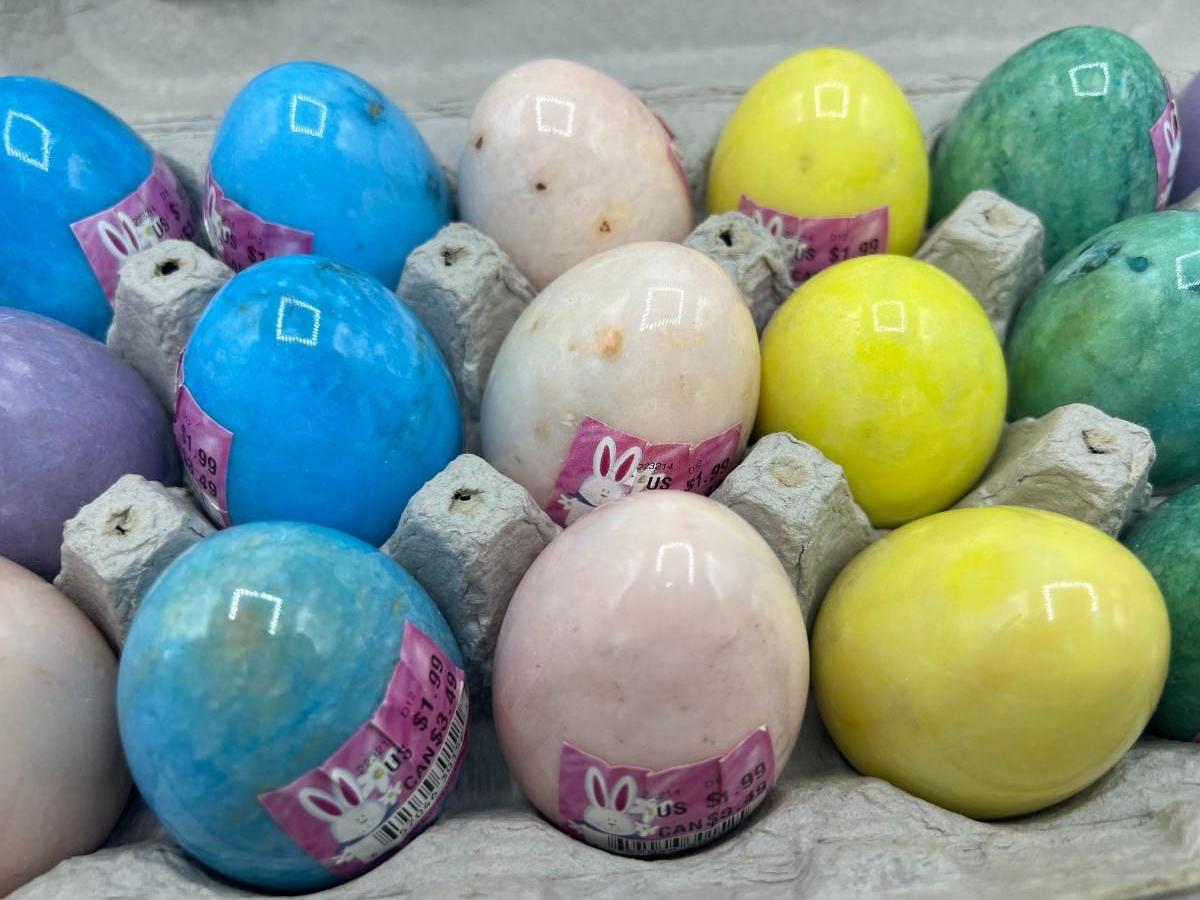 Carton of Multicolored Easter Displayable Marble Like Eggs