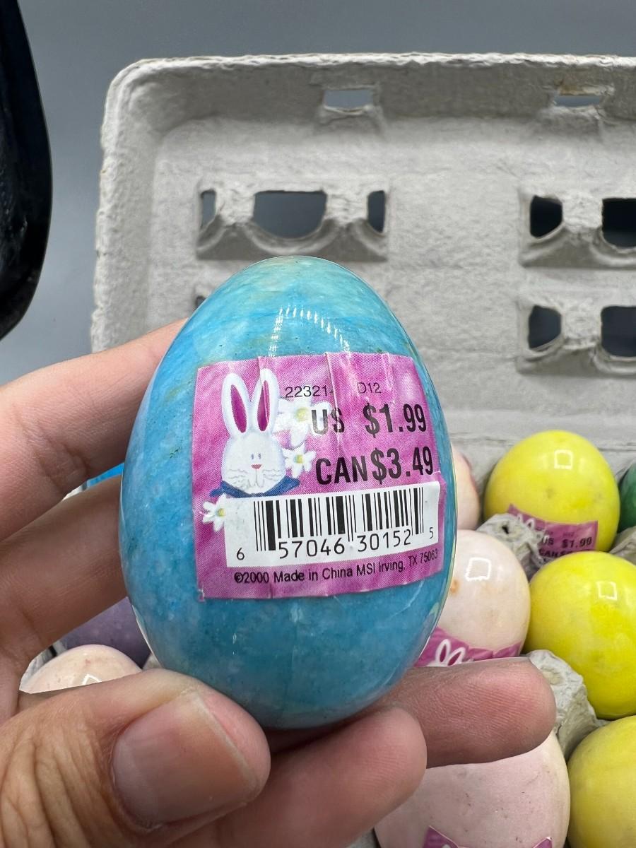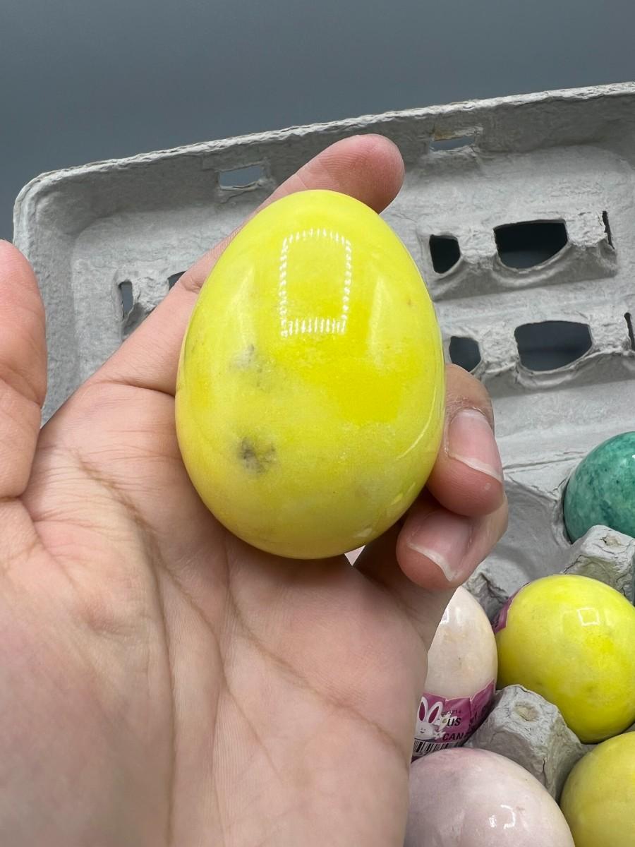 There is no significant damage to the eggs and is in overall good displayable condition. Check pictures for more details and for sizing.