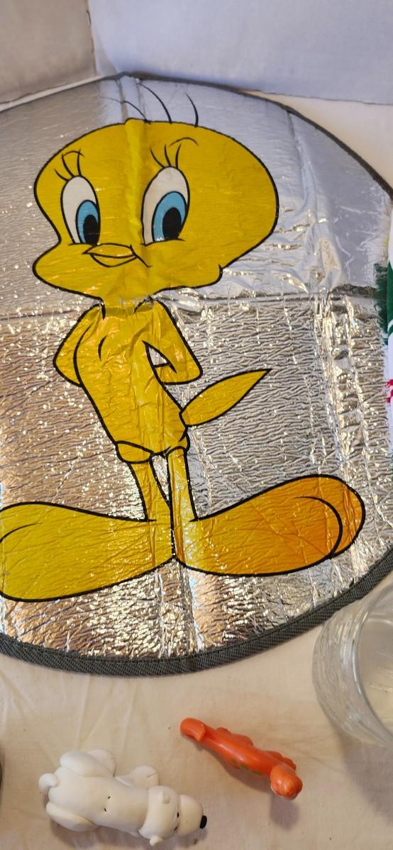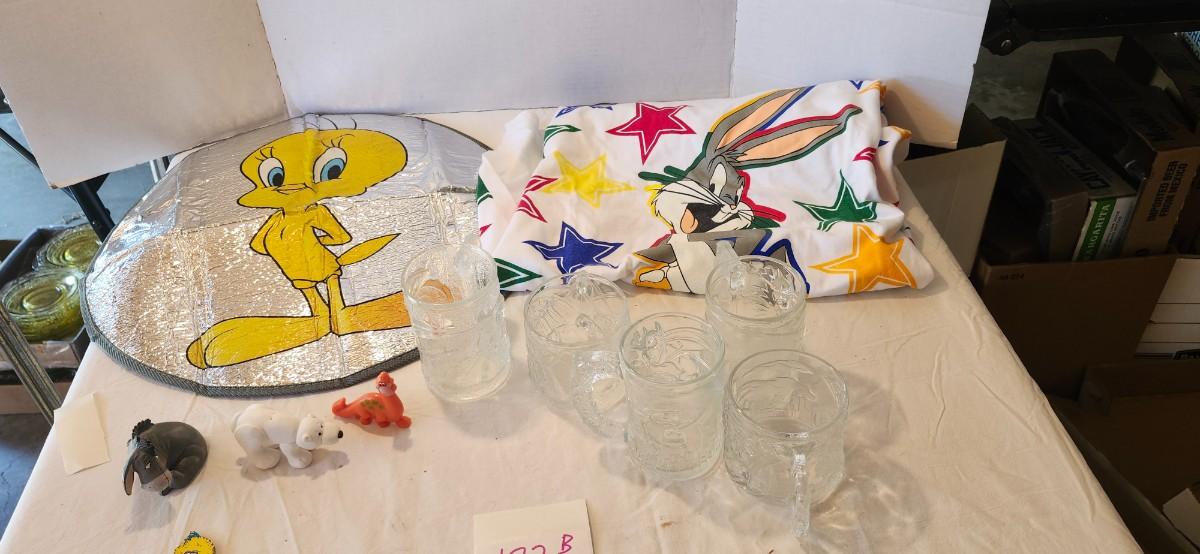 Cartoon memorabilia watch including Batman glasses and Bugs Bunny items