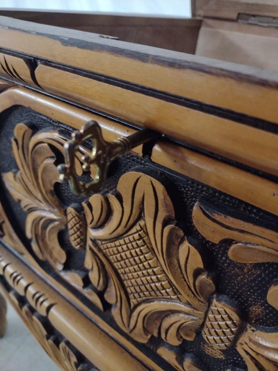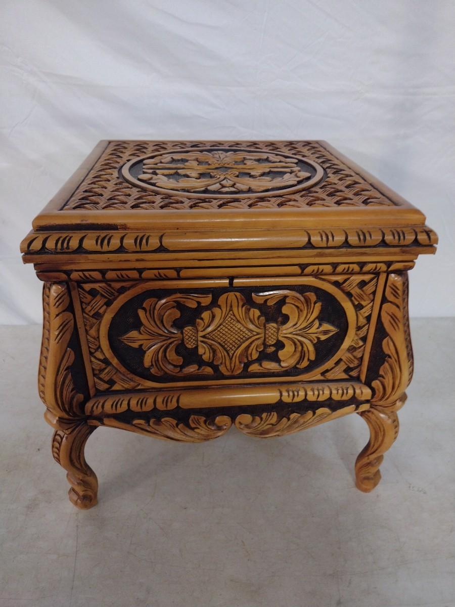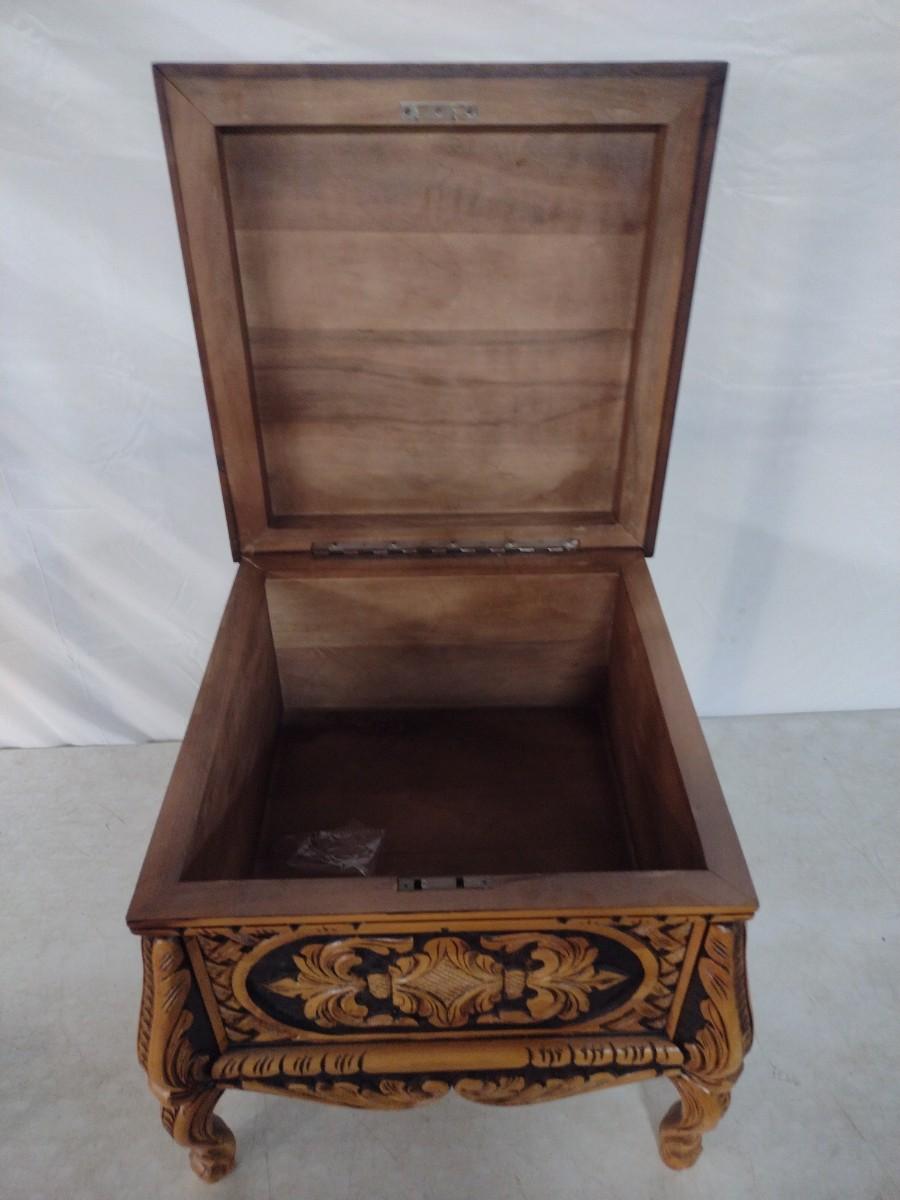Carved Wood Walnut Hope Chest Storage Cabinet Side Table with Key Choice A