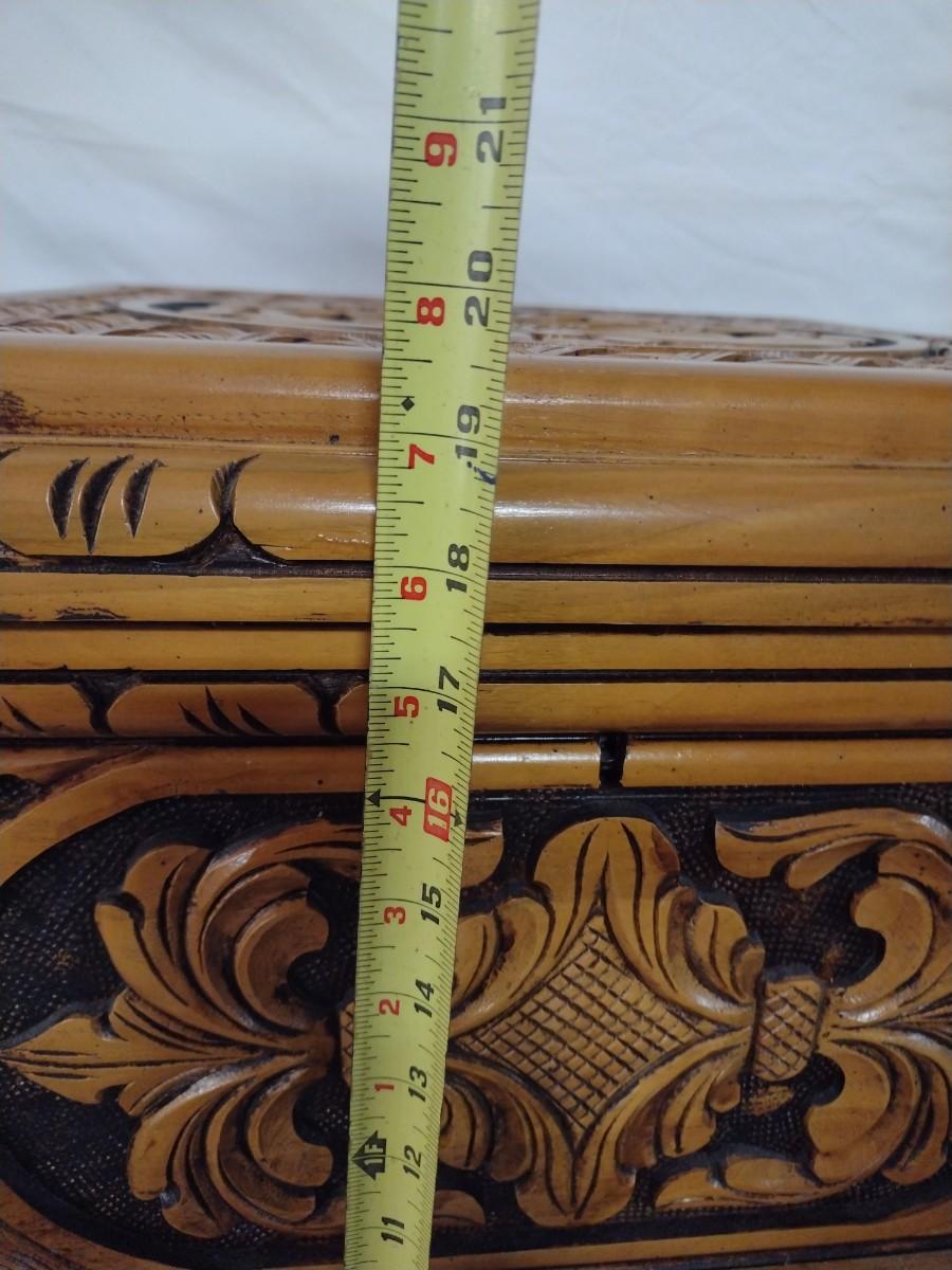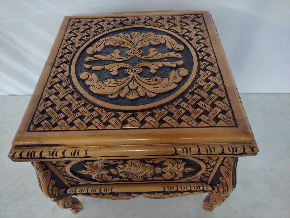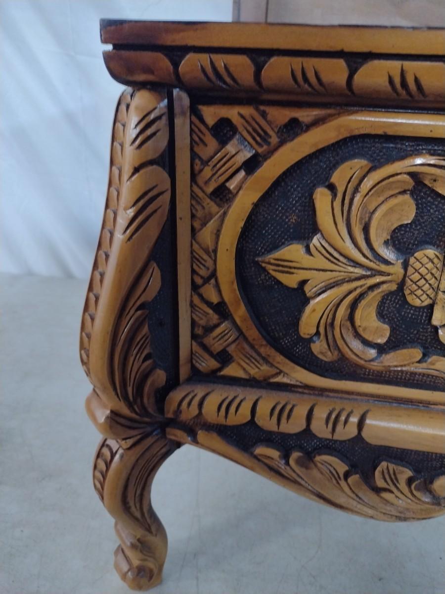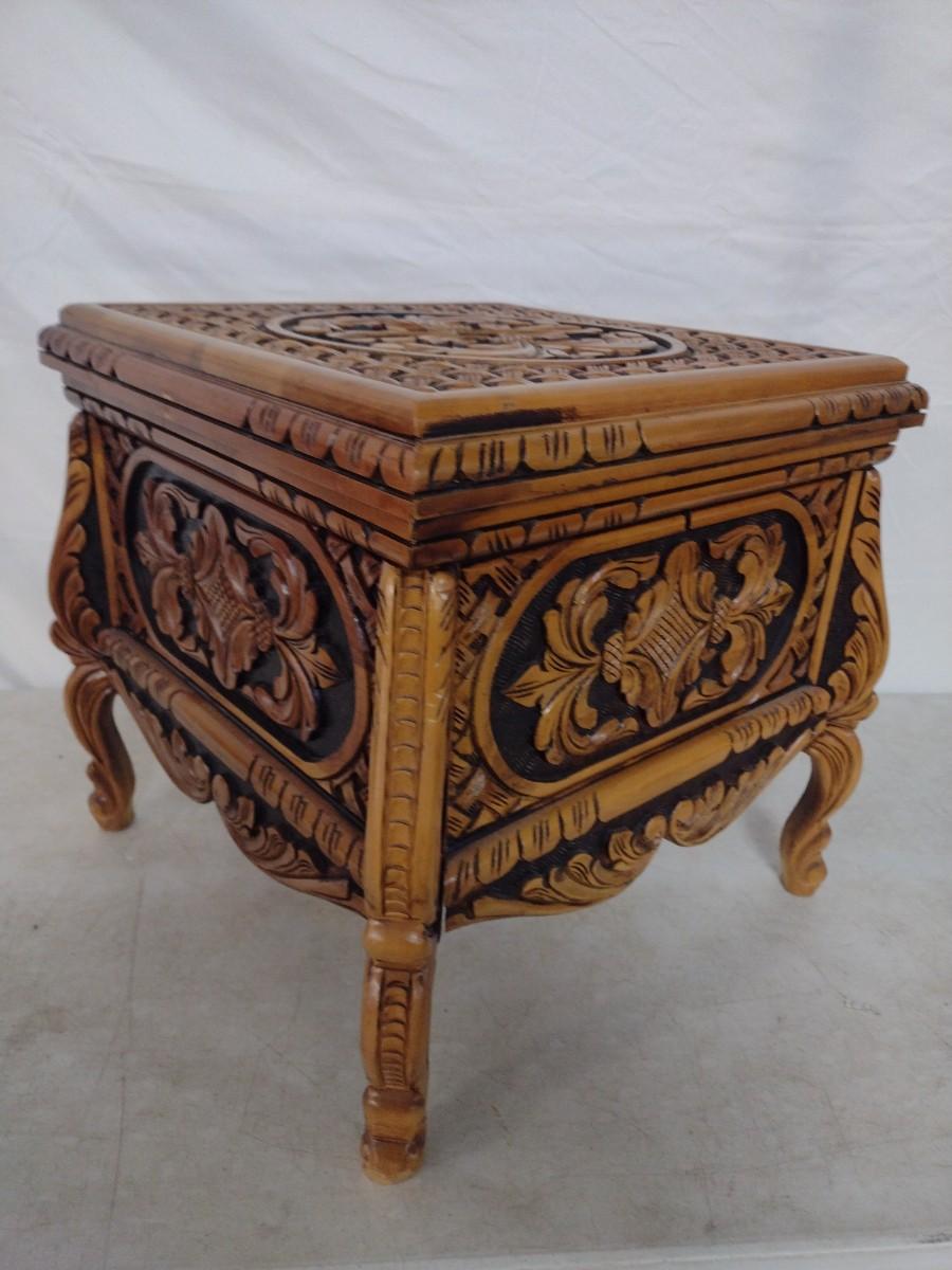 Carved Wood Walnut Hope Chest Storage Cabinet Side Table with Key Choice A