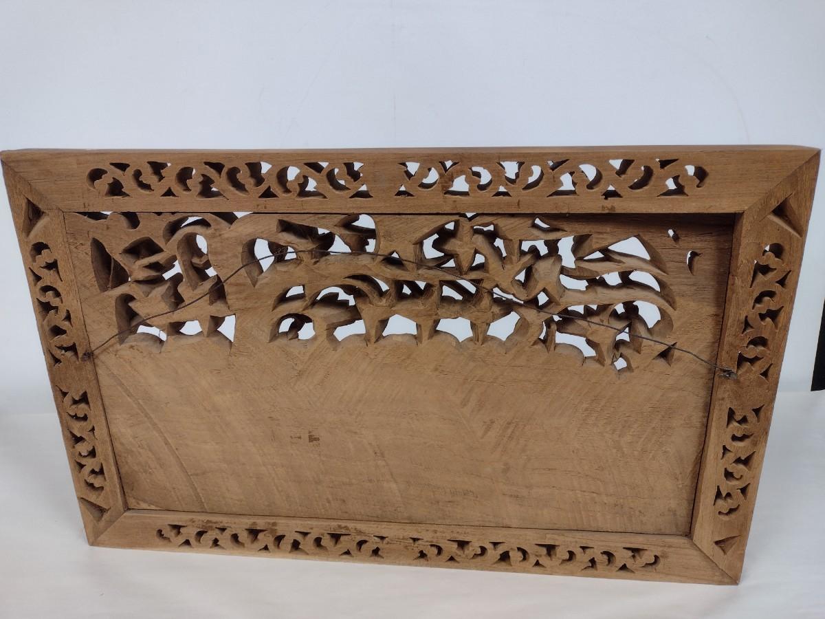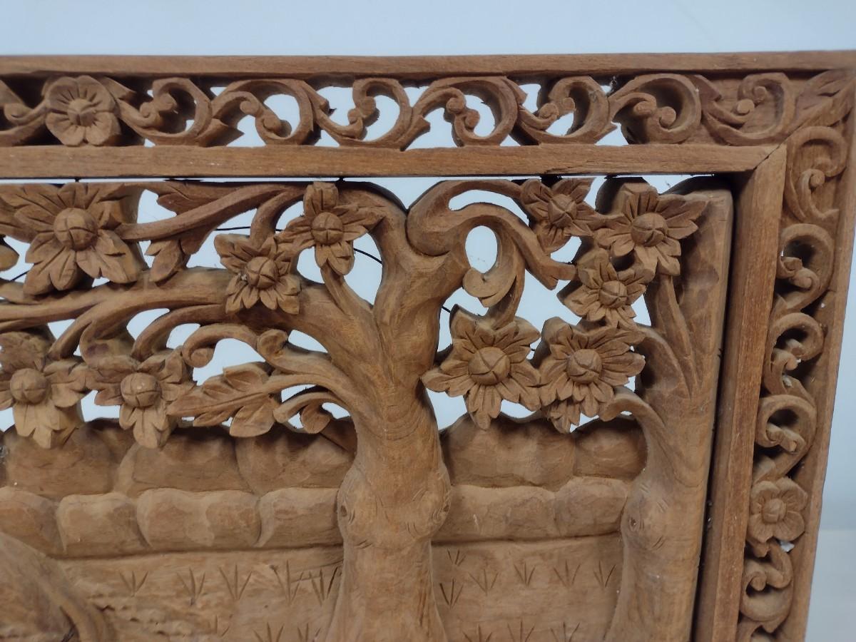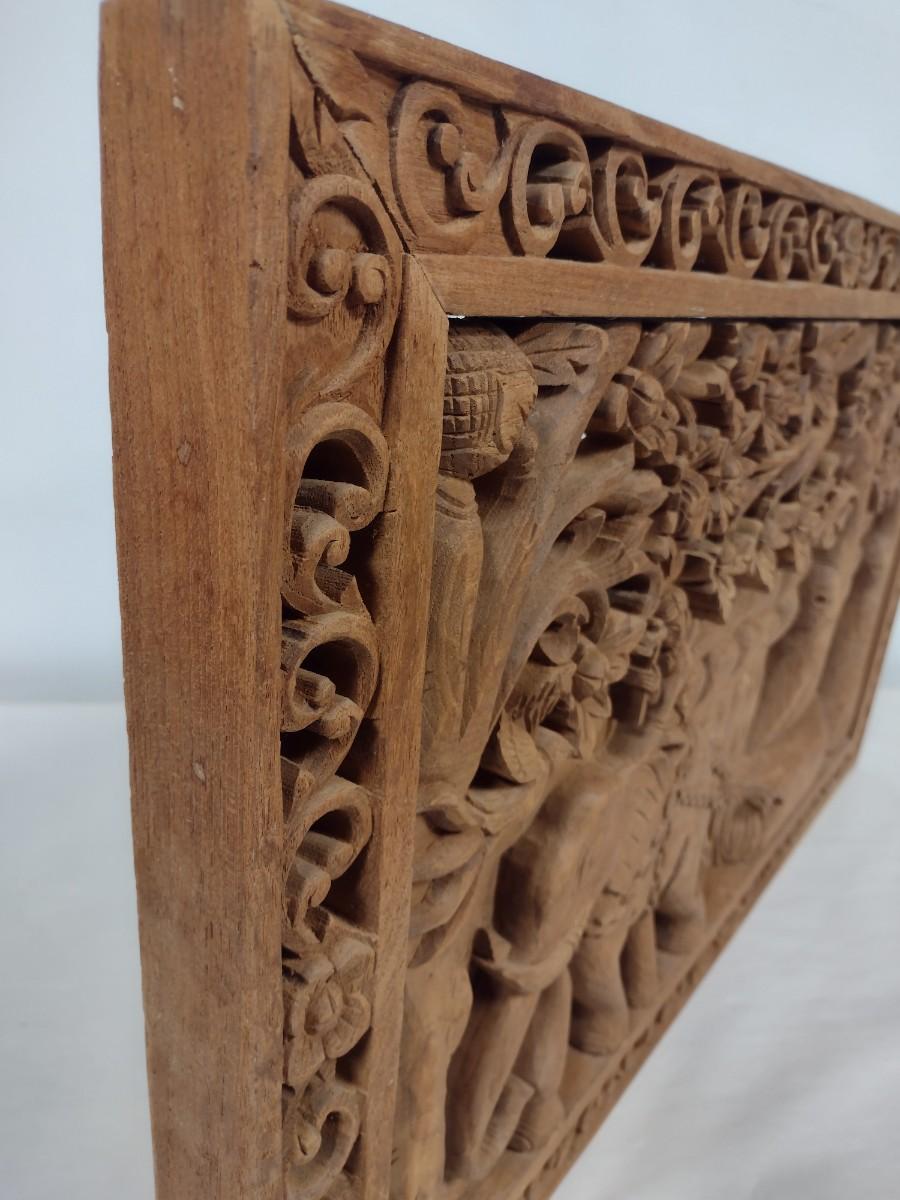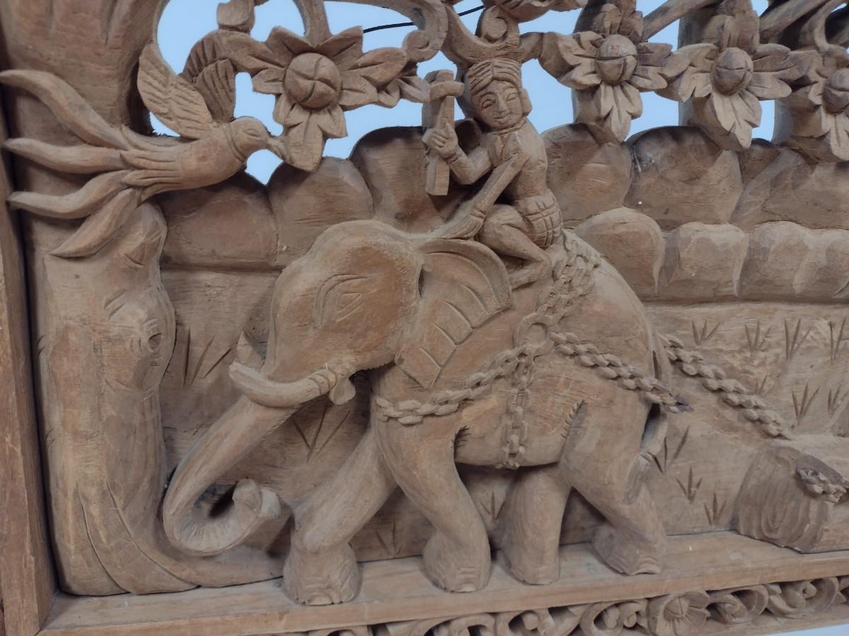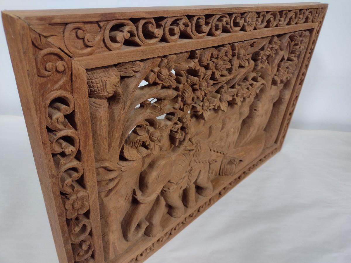 Vintage Large Hand Carved Wood Relief of Working Elephant