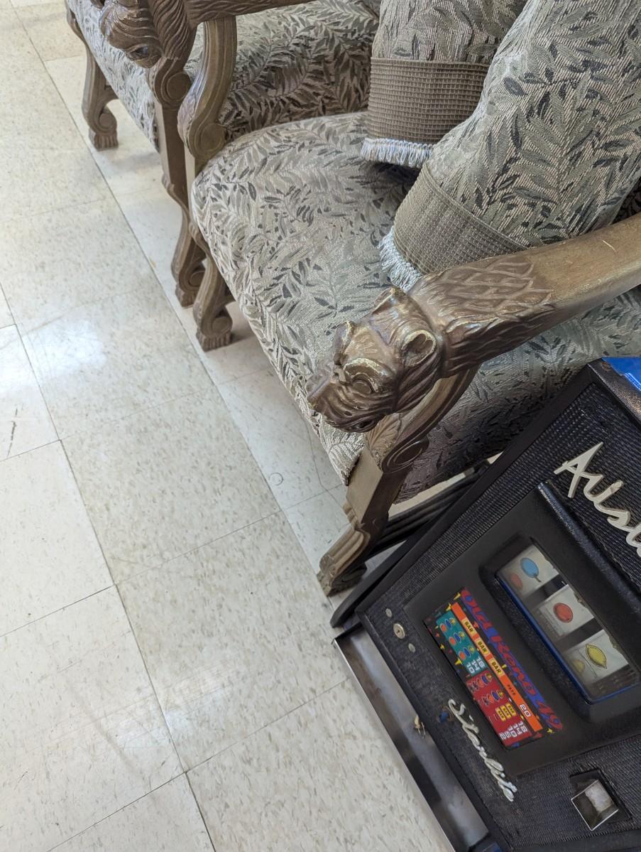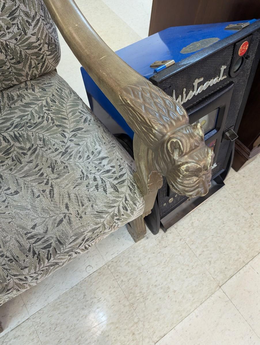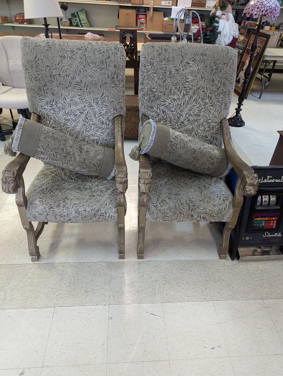 Carved Antique Lion's Head Arm Chairs With Pillows