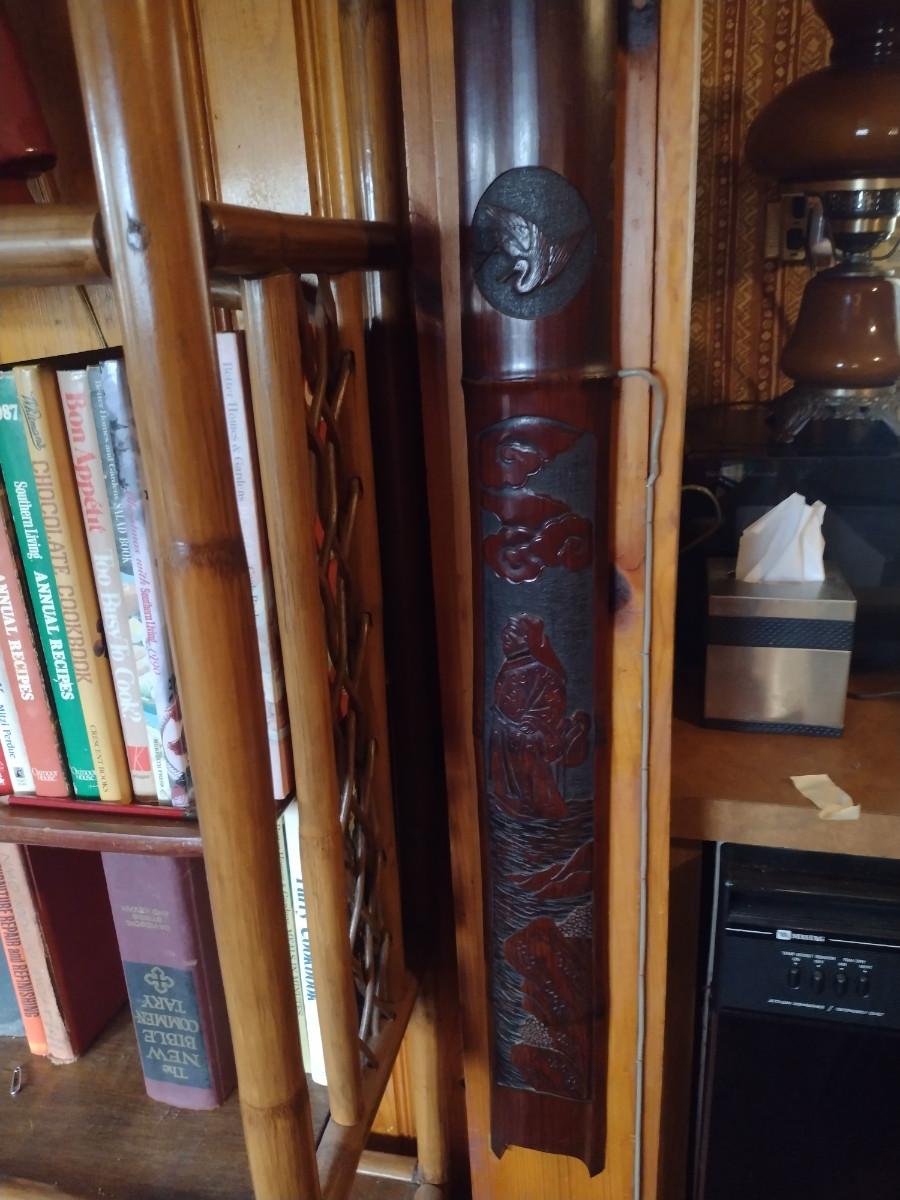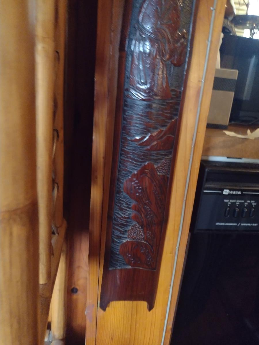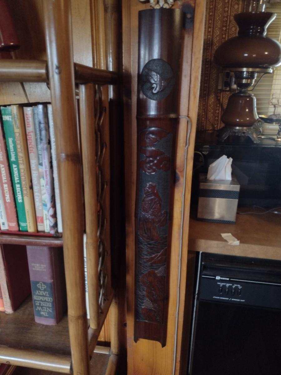 Carved Bamboo Wall Art. Approx 36" tall, 3 1/2" wide.