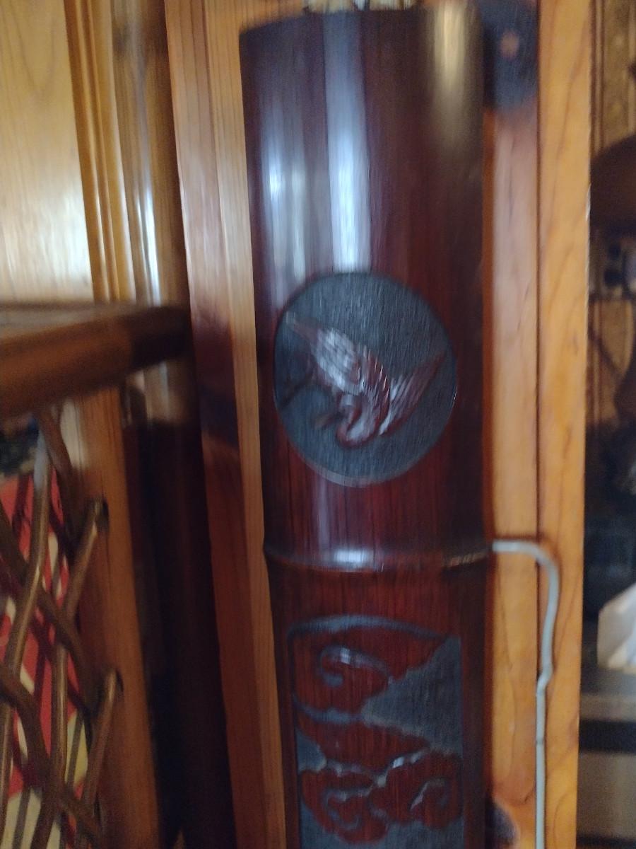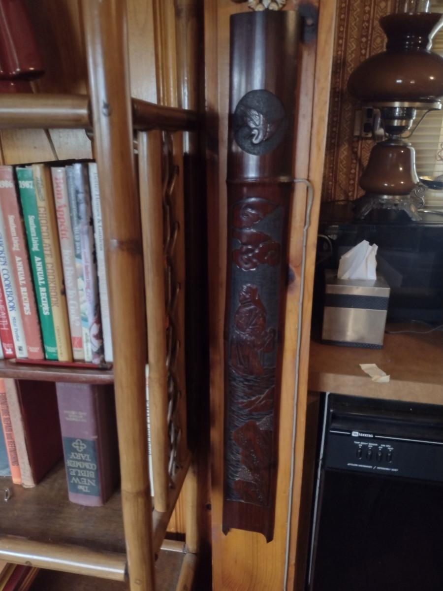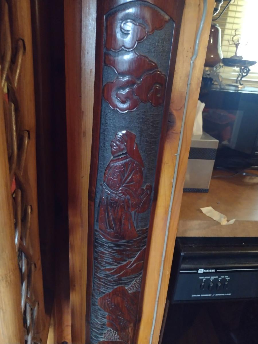 Carved Bamboo Wall Art. Approx 36" tall, 3 1/2" wide.