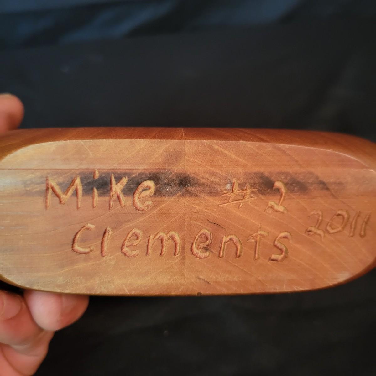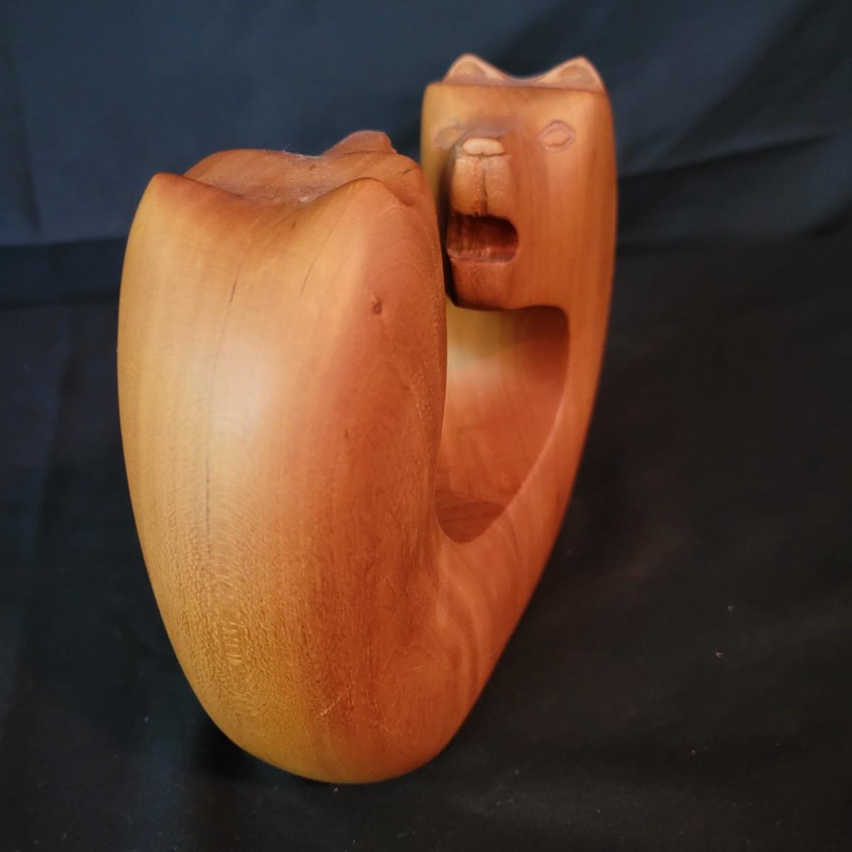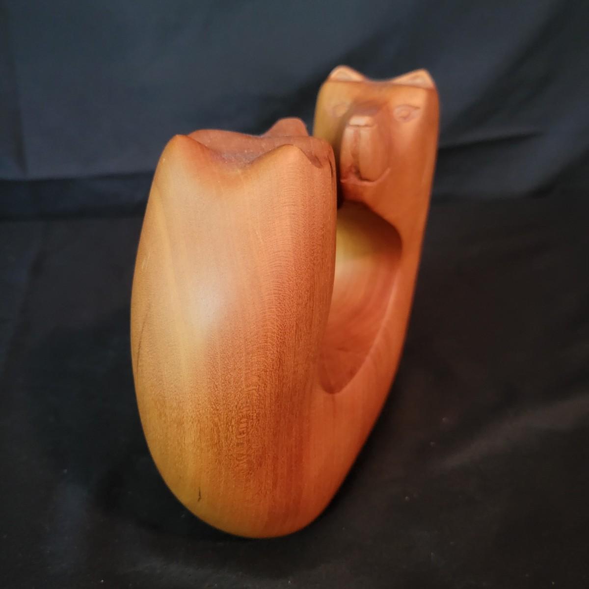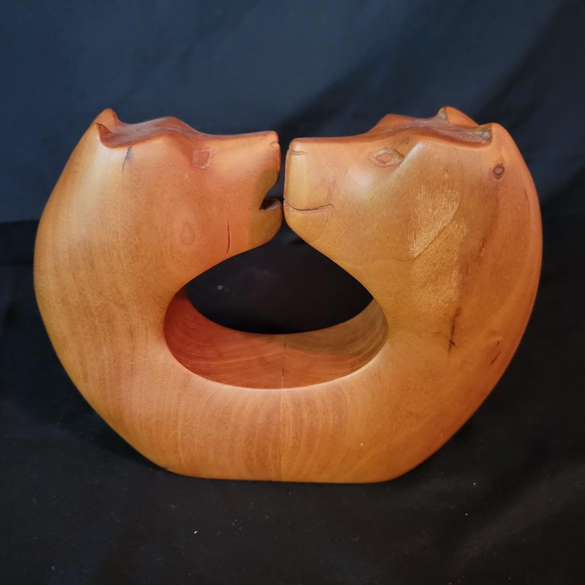 A unique wood carved piece of bears signed by Mike Clements. It measures approximately 7.5" x 2" x 6"H. Shipping available