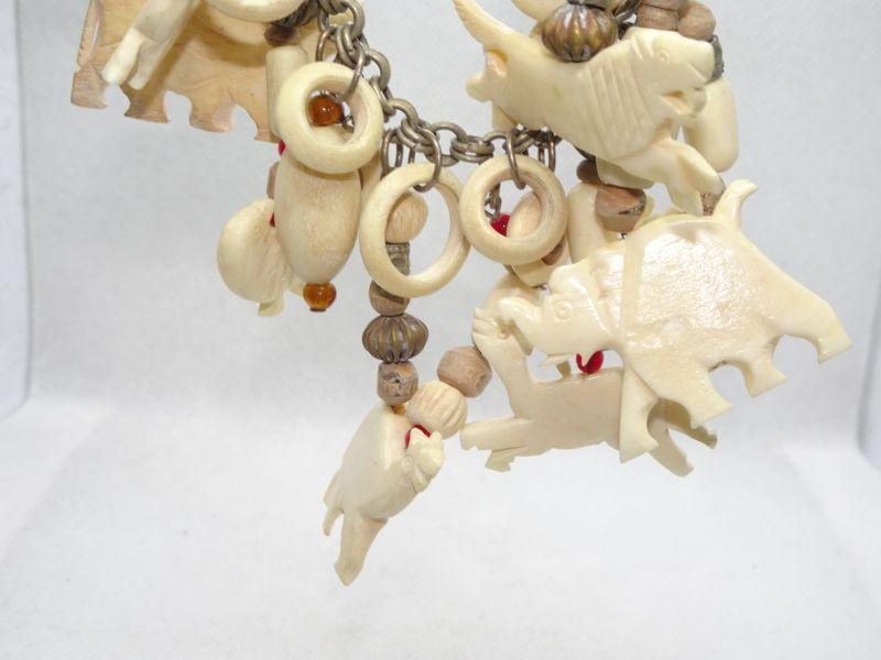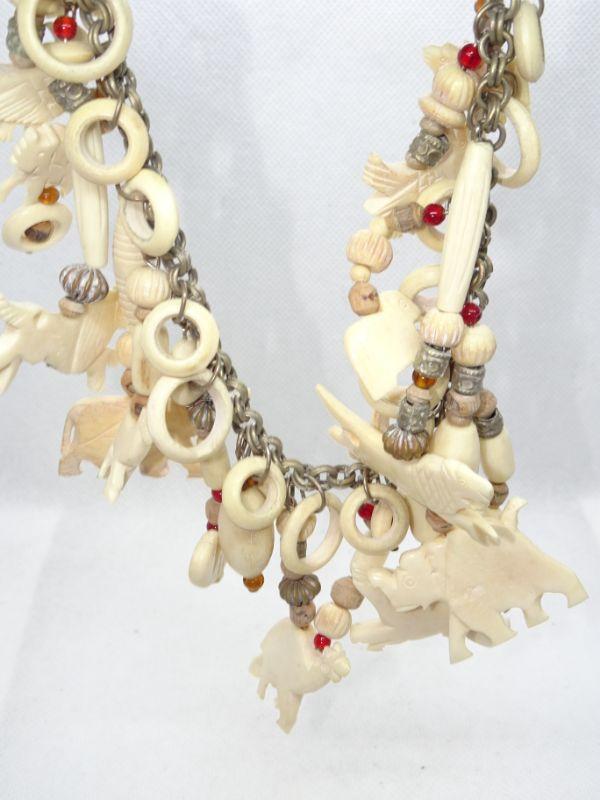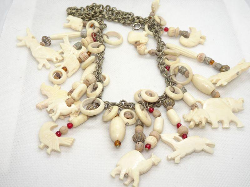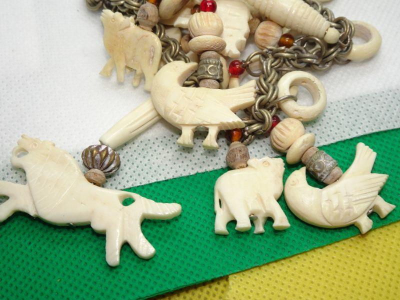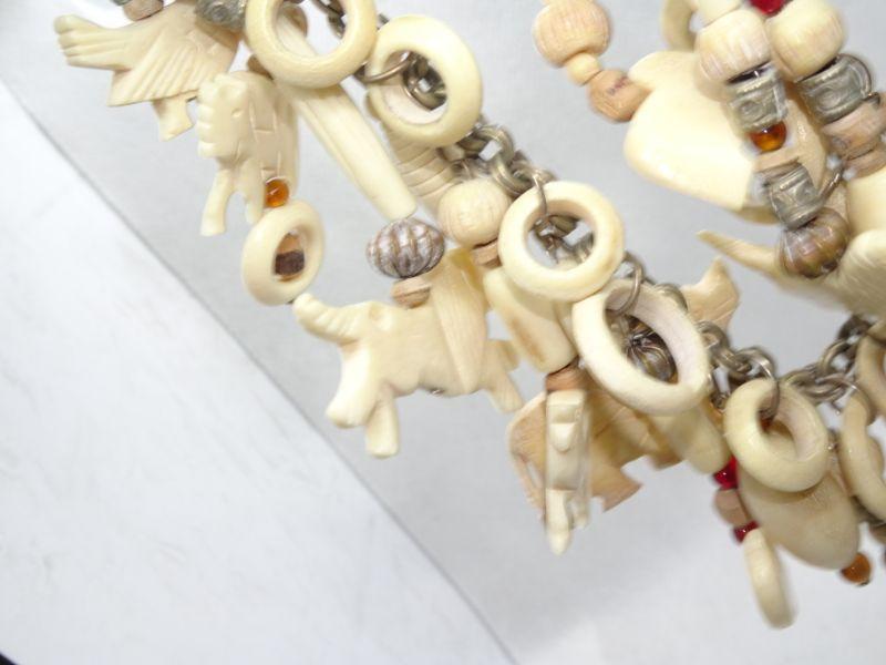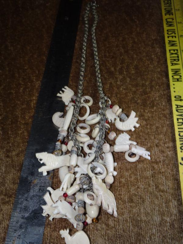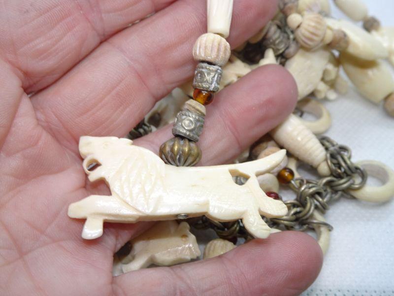 Carved Bone African Style Fetish Necklace, Camels, Elephants, Gazelles, Birds Unusual!