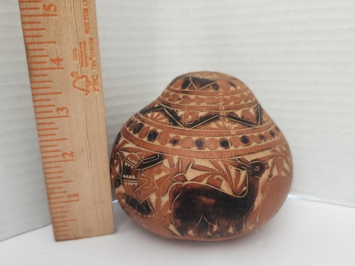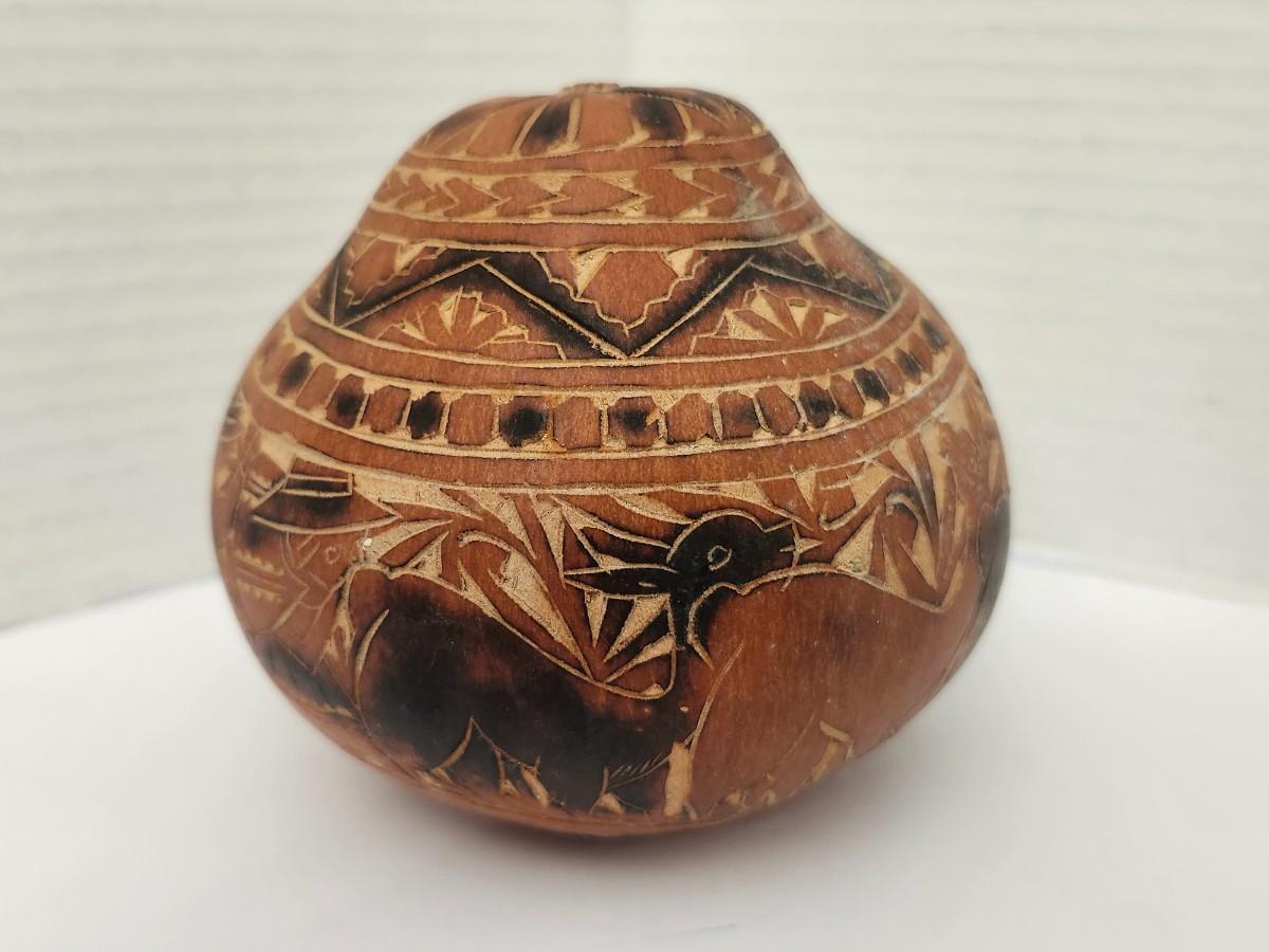 Carved Decorative Gourd With Geometric and Animal Motif Design Southwestern Style Unmarked