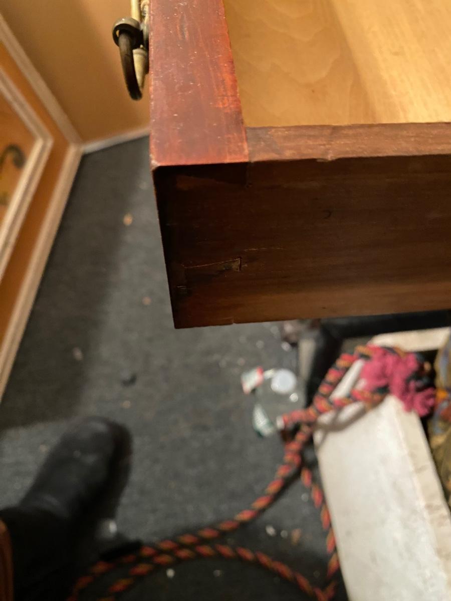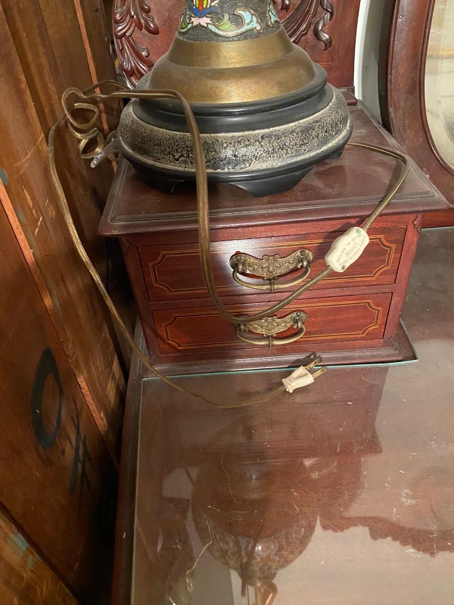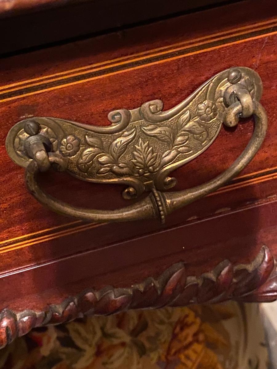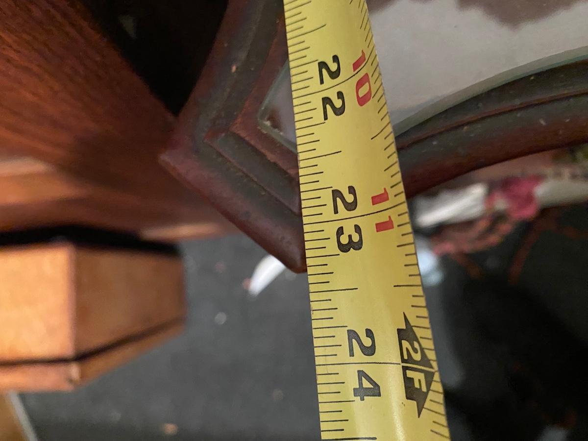 Antique vanity with Mirror. Has custom cut glass cut for the top. Lovely brass pull on drawers. Claw foot details. 47" w 23" d. 30" from floor to top of vanity, 72" to top of mirror. Stunning piece. Bob's furniture will never last this long.