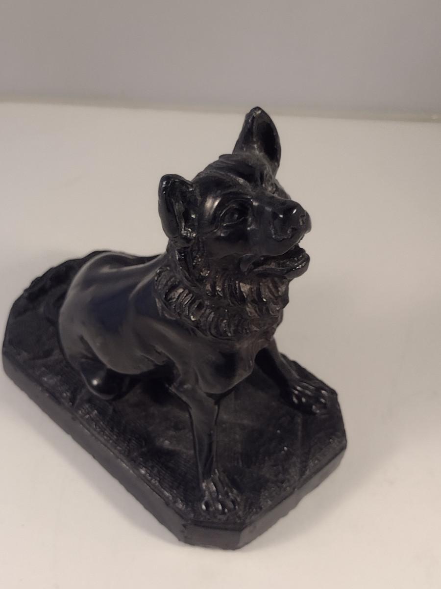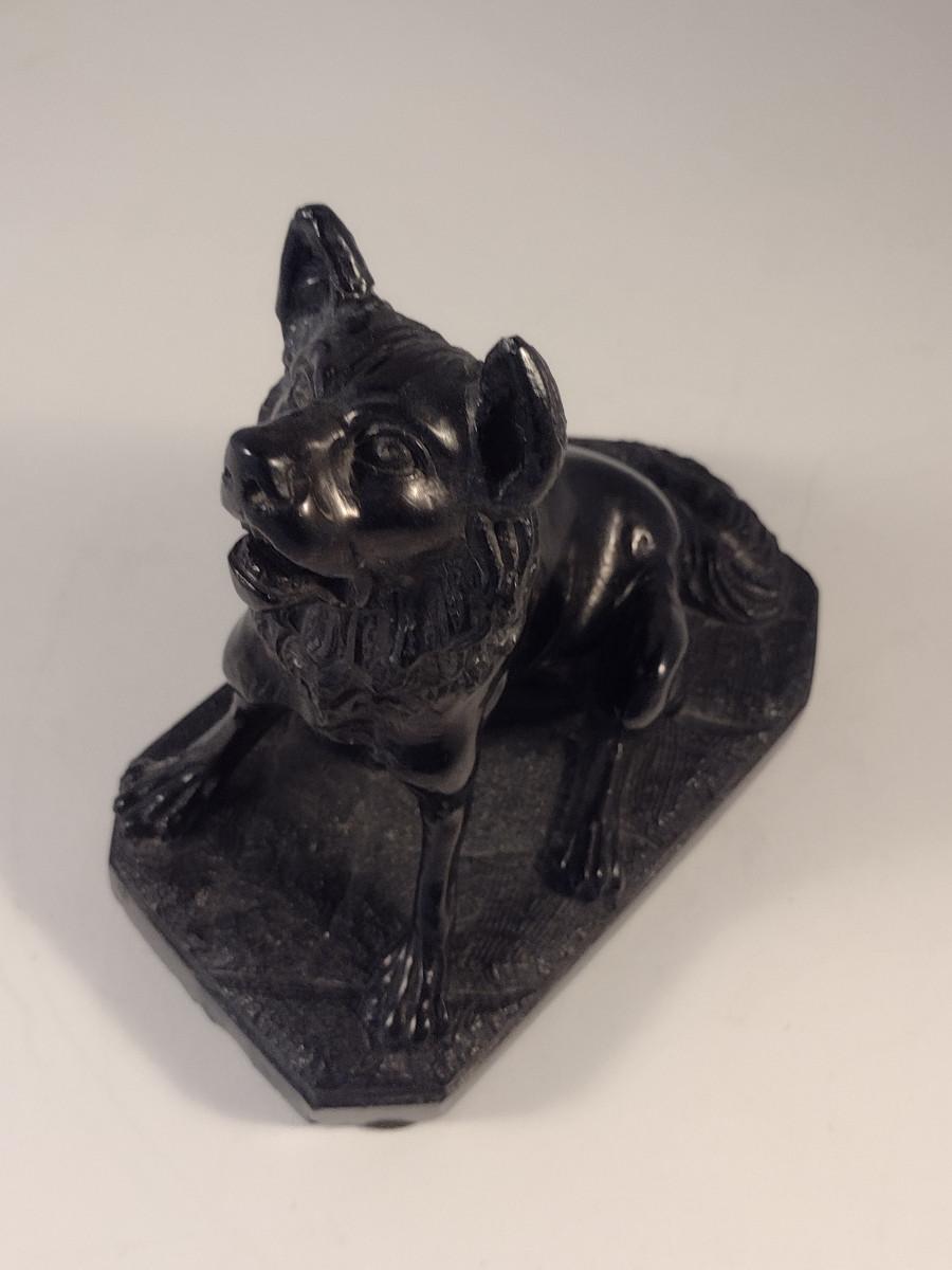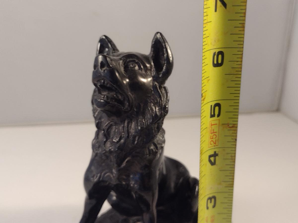 Carved Dog Figurine- Approx 6 1/2" Tall. Possible stone bookend.