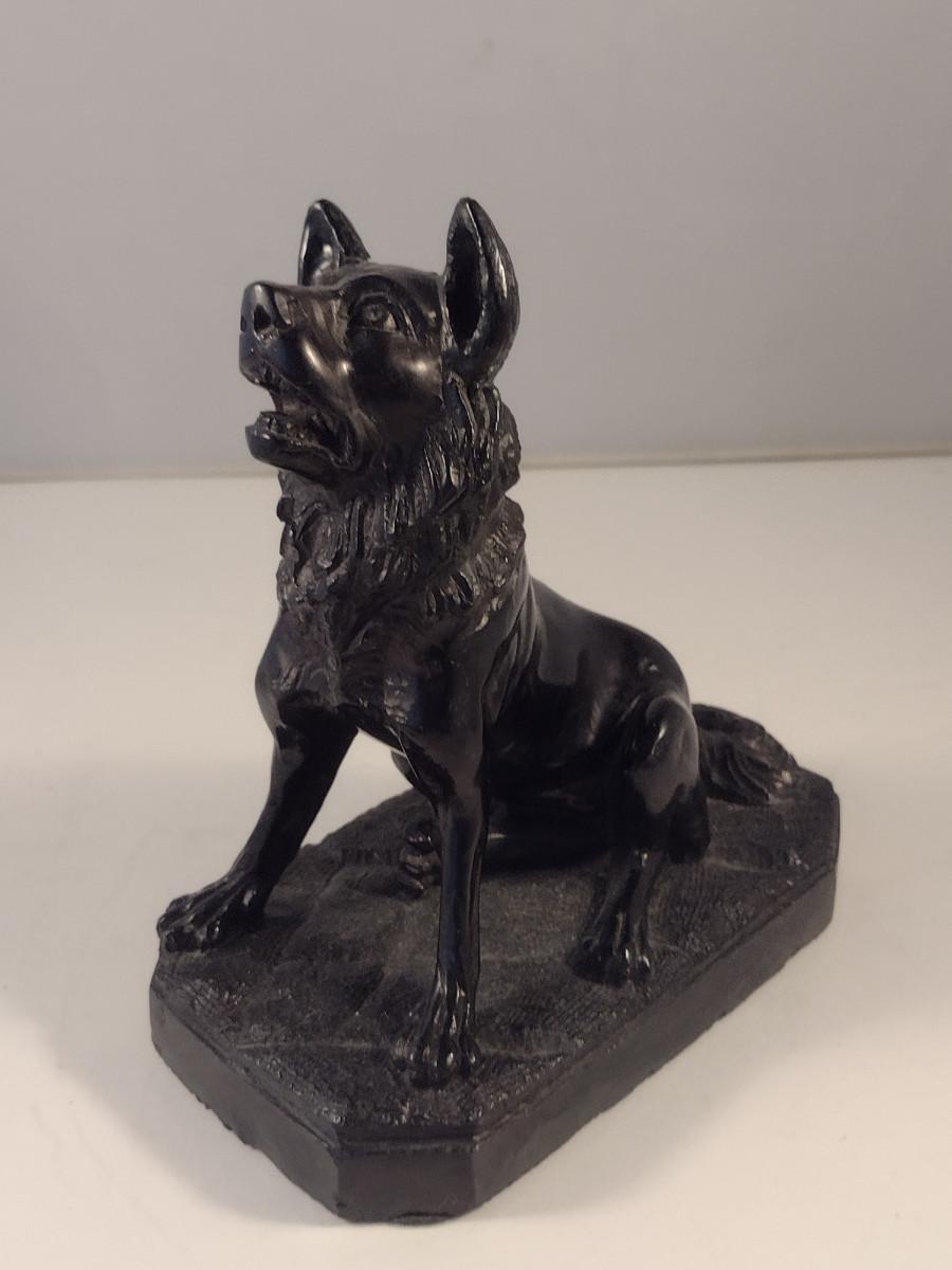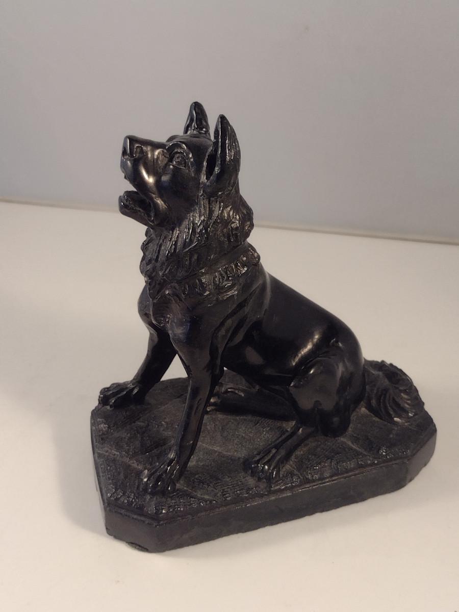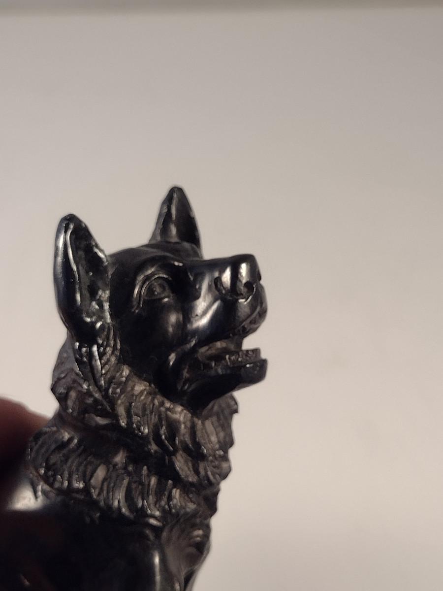 Carved Dog Figurine- Approx 6 1/2" Tall. Possible stone bookend.