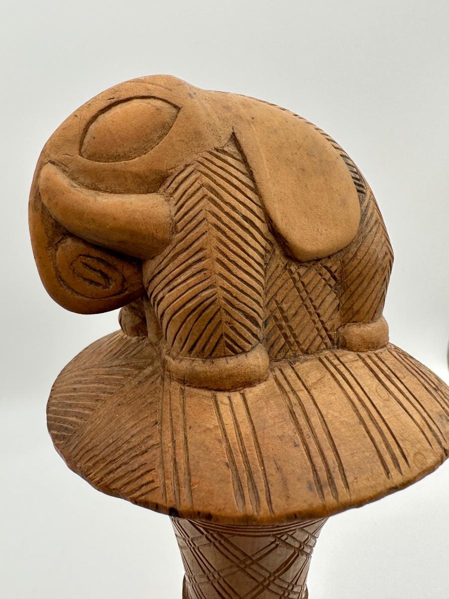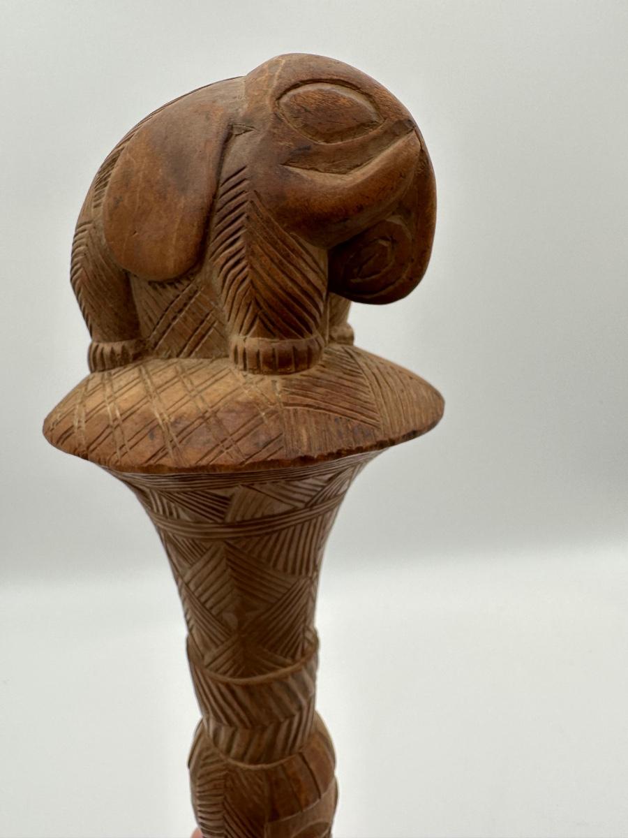 Antique Fly Whisk Carved with Elephant