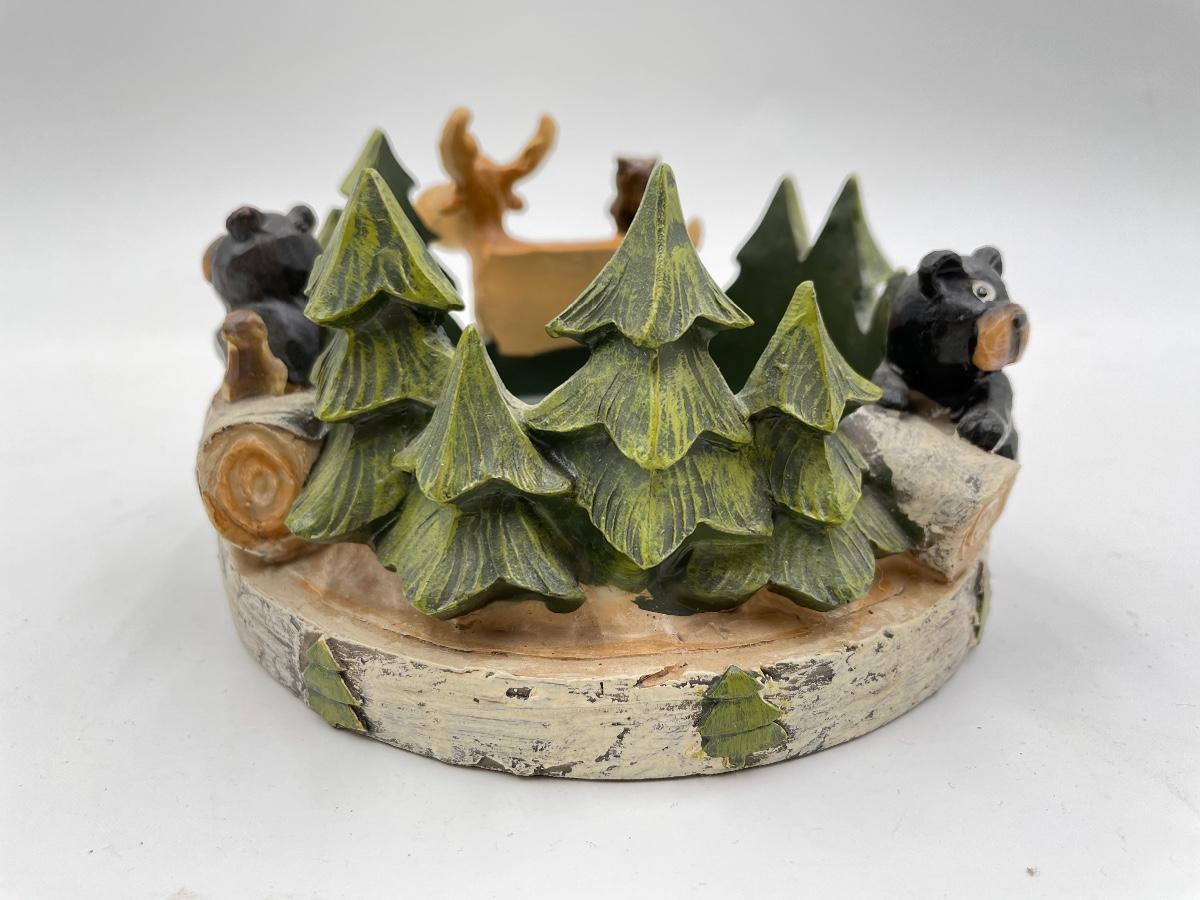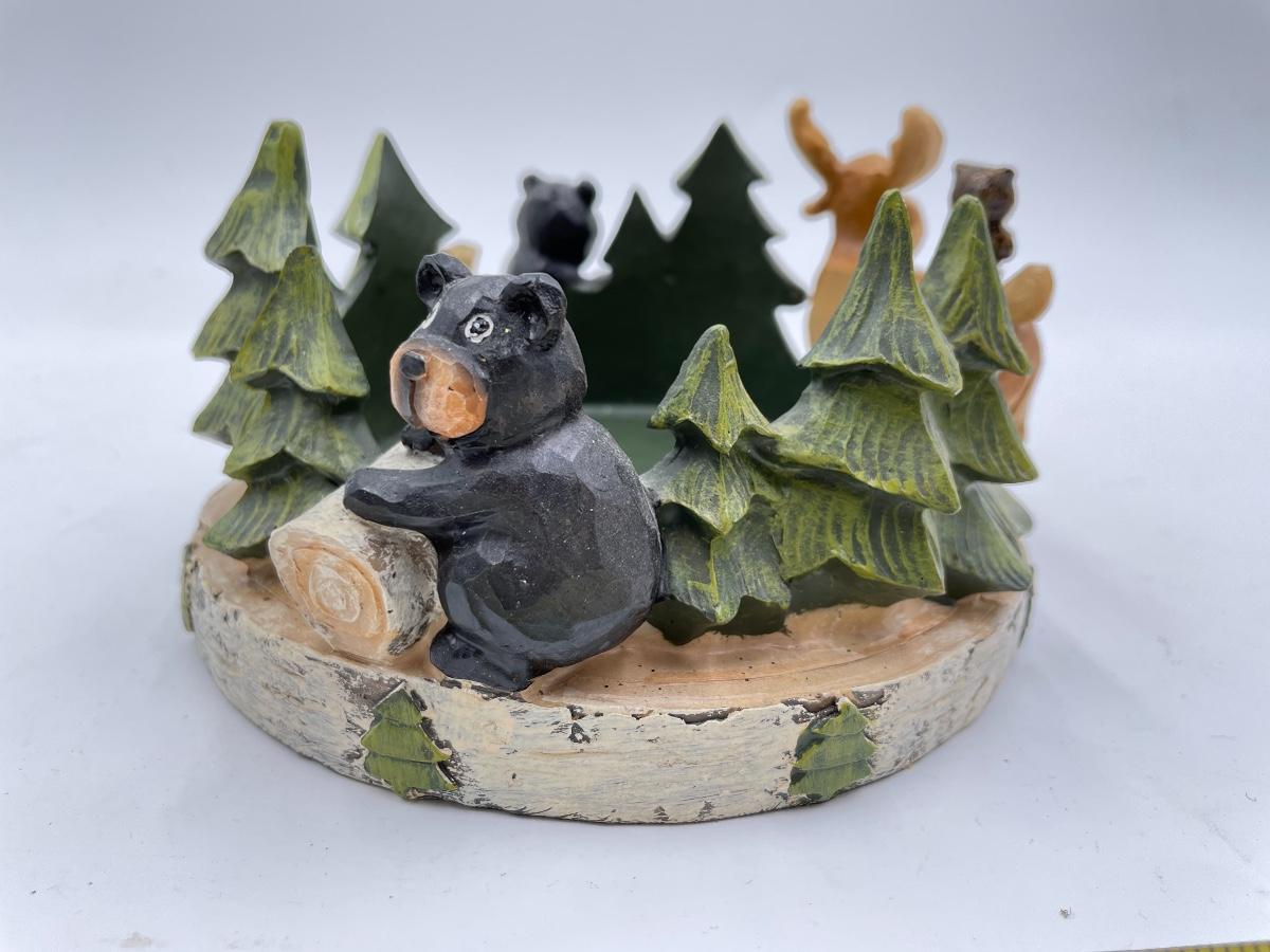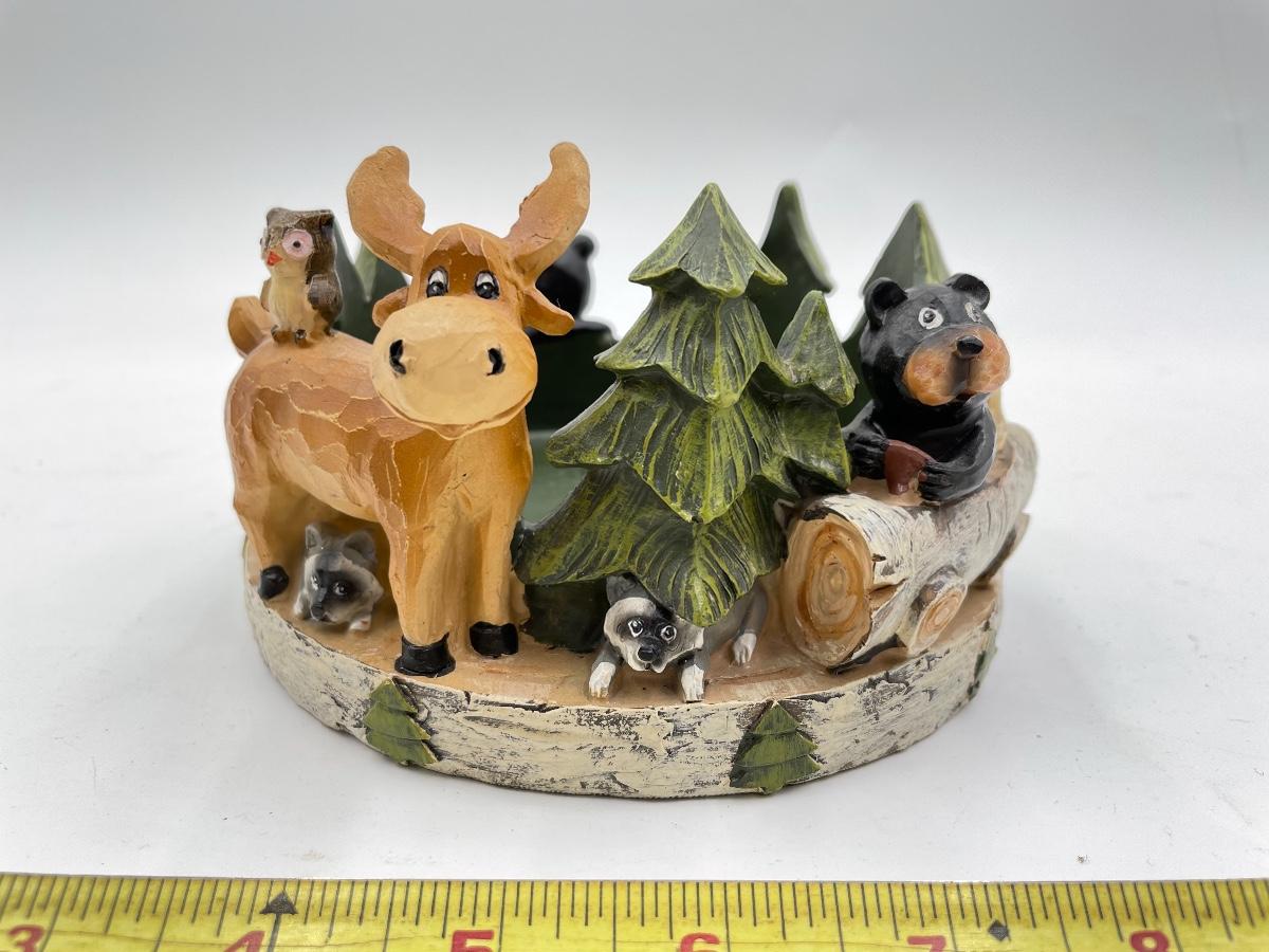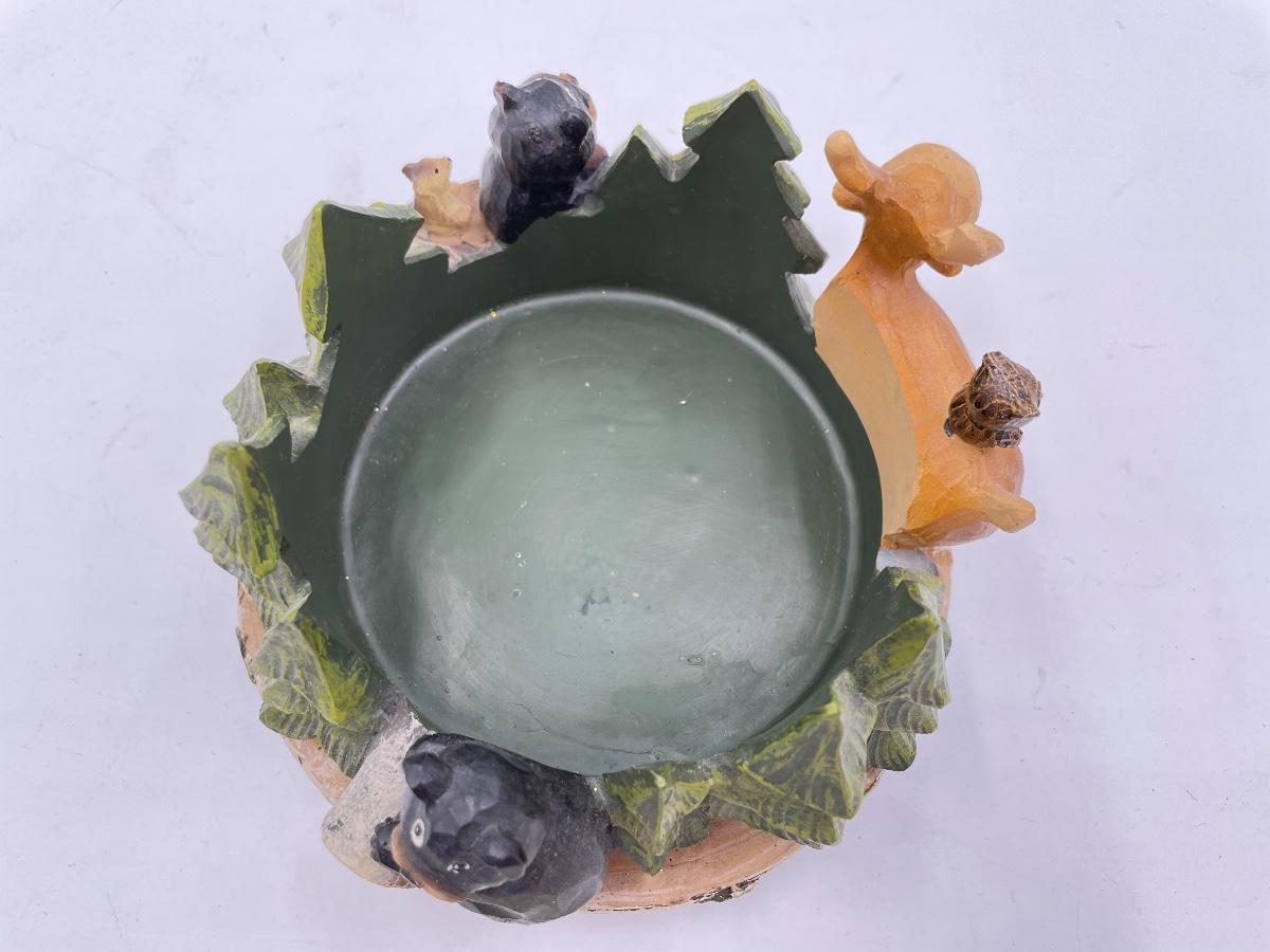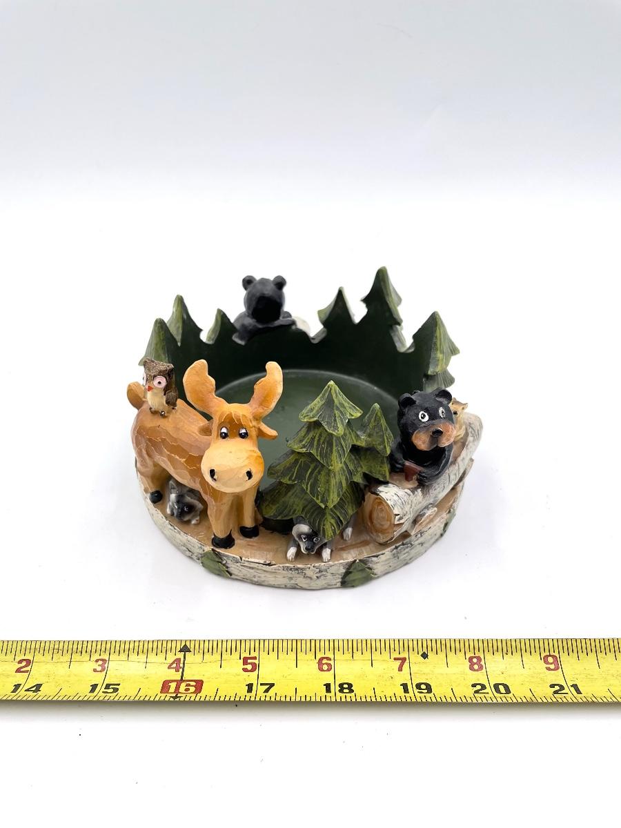 CARVED FOREST ANIMALS RUSTIC CANDLEHOLDER