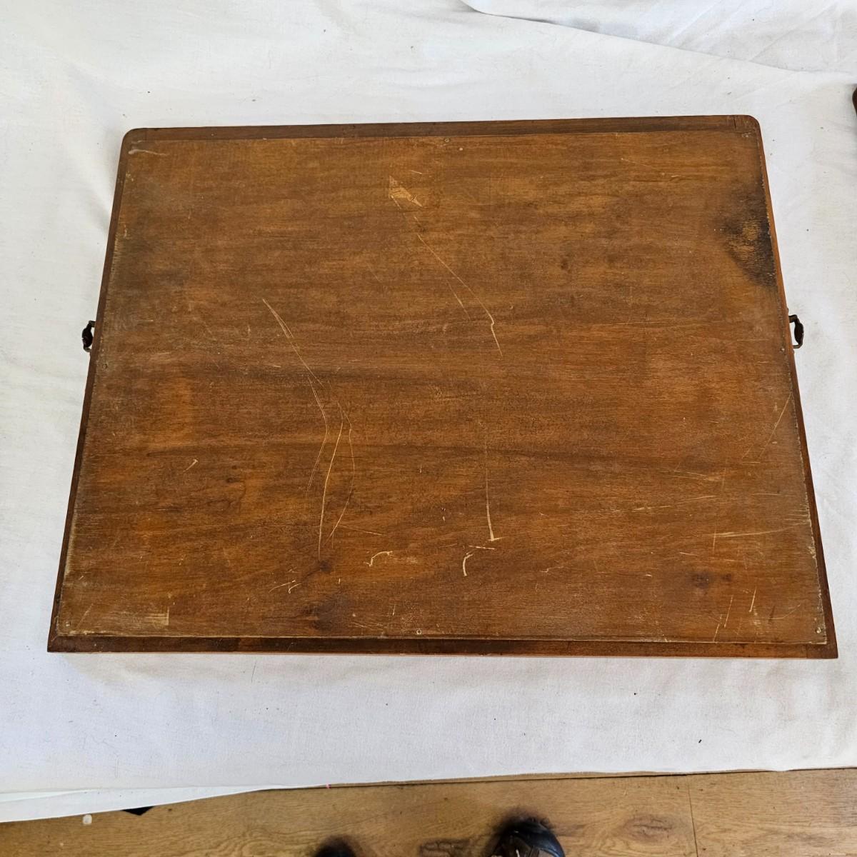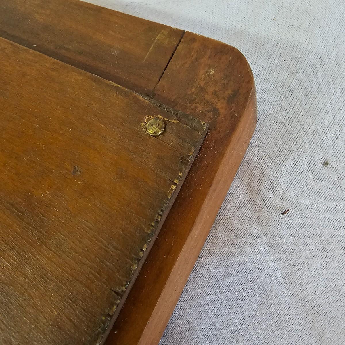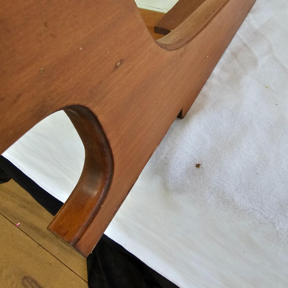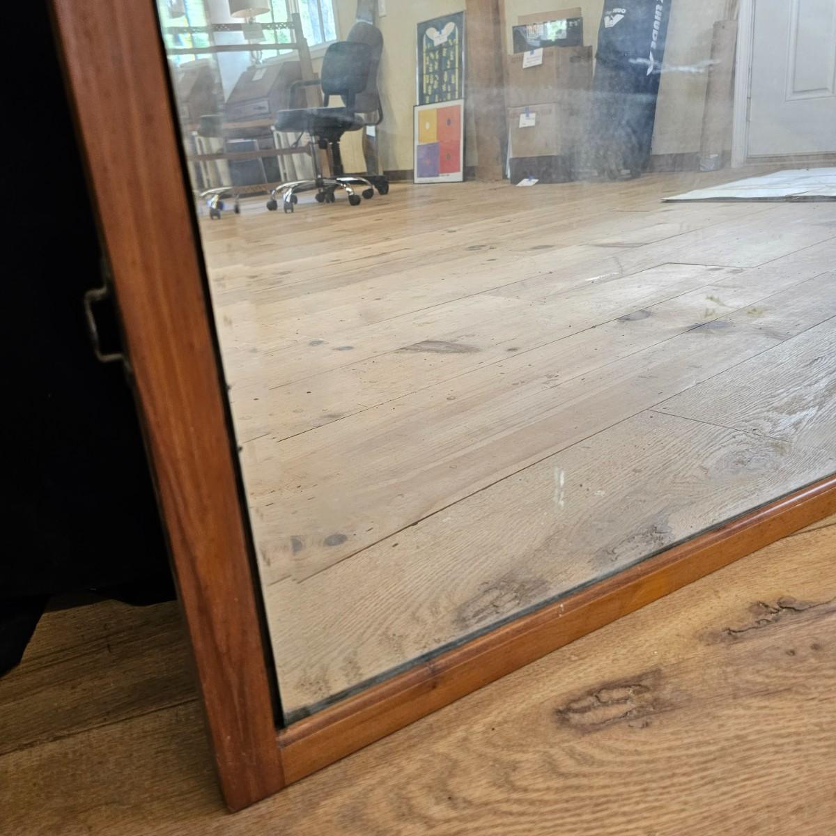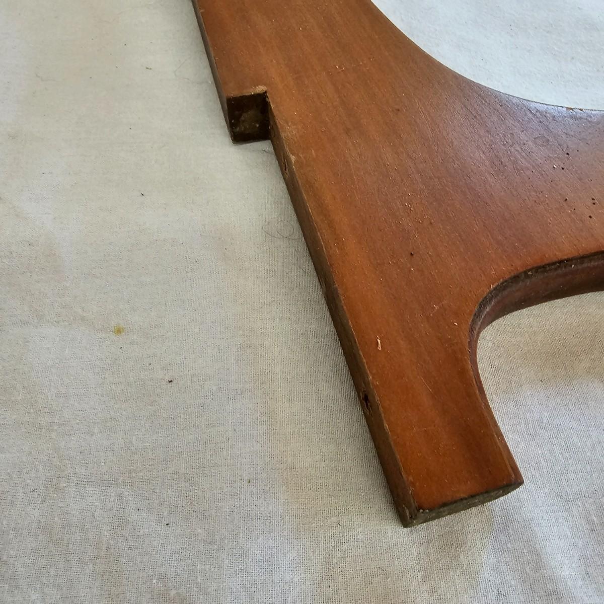 Small mirror with side supports for top of dresser or other. Supports are notched at bottom to accommodate mounting, also have holes in bottom. Supports measure 6" x 20.5"H. Mirror has carved flower pattern across top, measures 23" x 18.5" H. With supports it is 25.5" x 26.5" H. Mirror hangs in brackets on supports, see photos for details. Local pickup only.