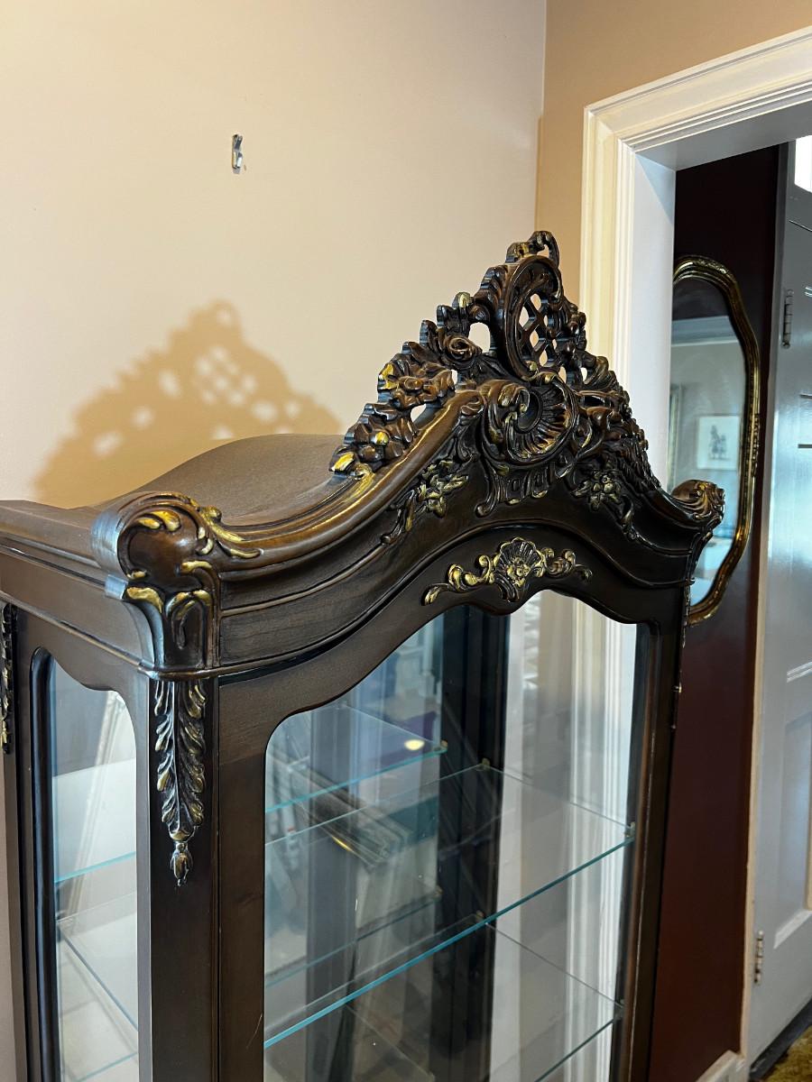 Carved French Curio Cabinet Antique Reproduction