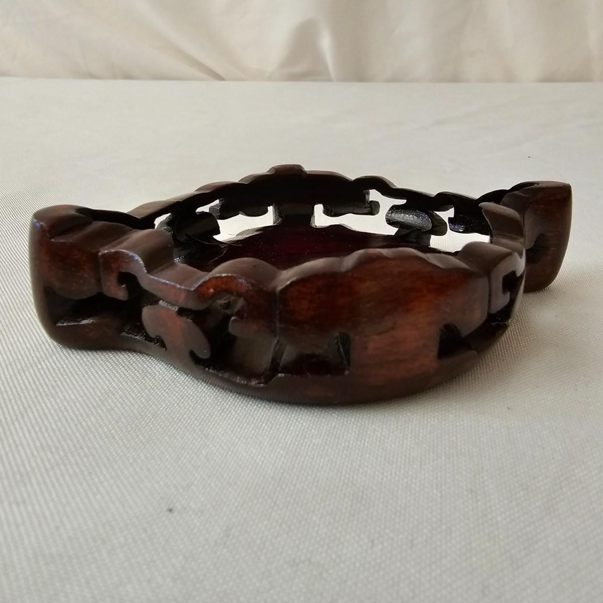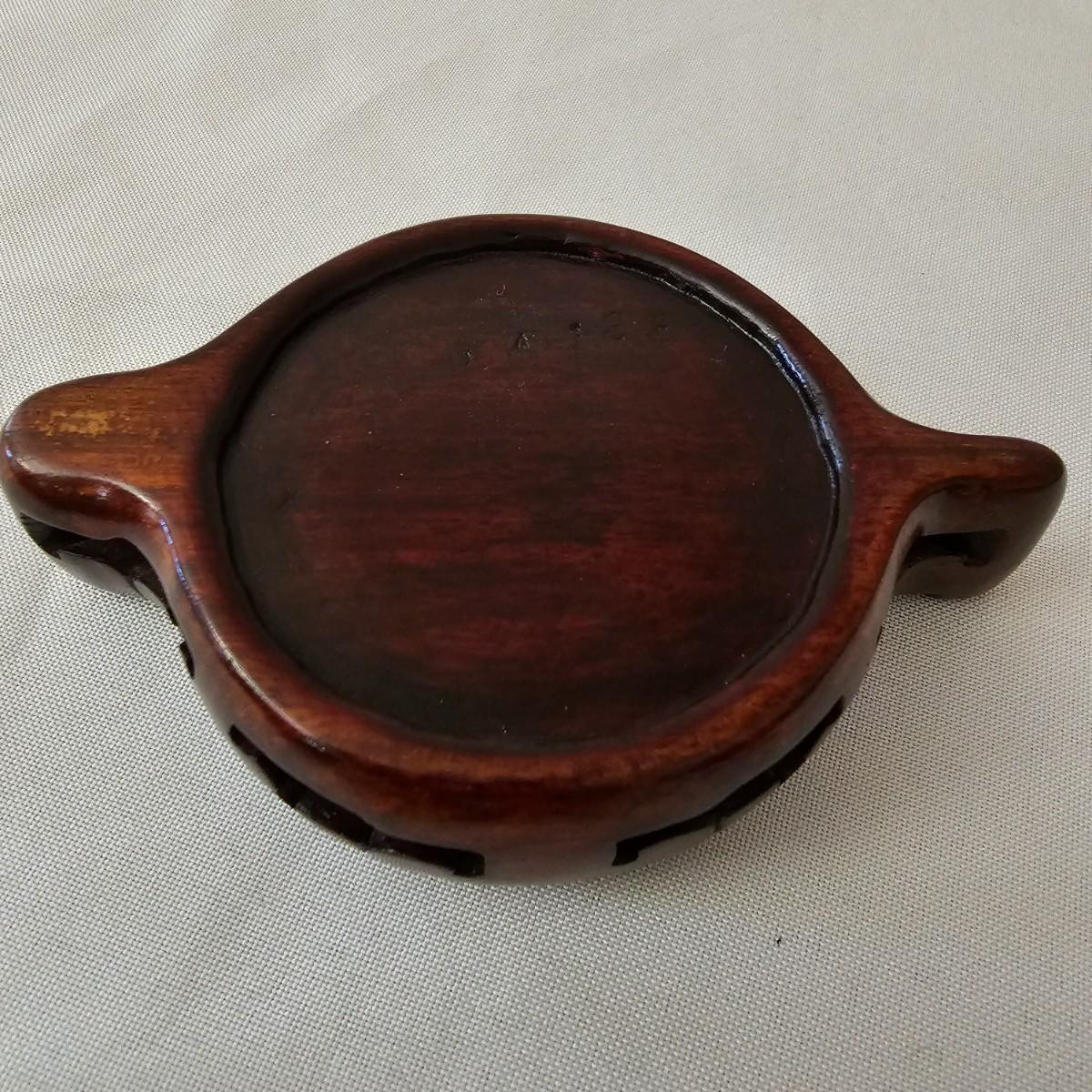 Jade teapot with lid and a carved wooden stand. Teapot measures 5.25" x 3" x 2.25"H. Wooden carved stand is 4.5" x 3" x 1"H. Intricate pierced cutouts in sides of stand. See photos for details. Shipping available.