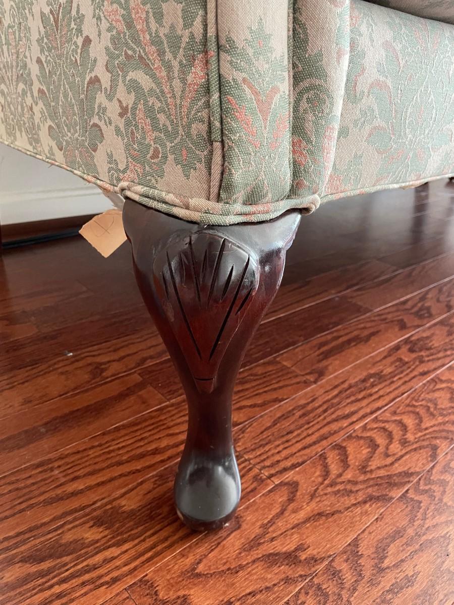 Carved Mahogany Queen Anne Style Upholstered Sofa