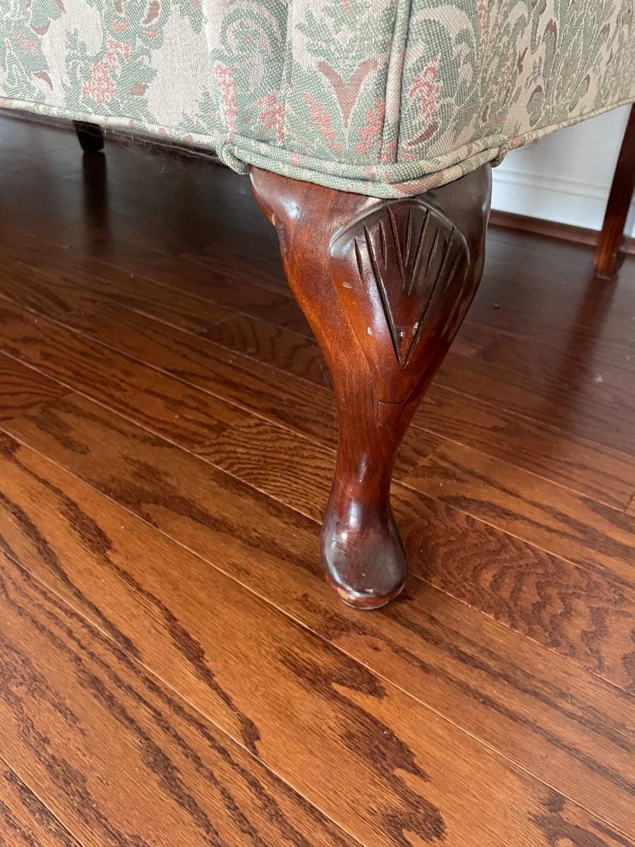 Carved Mahogany Queen Anne Style Upholstered Love Seat