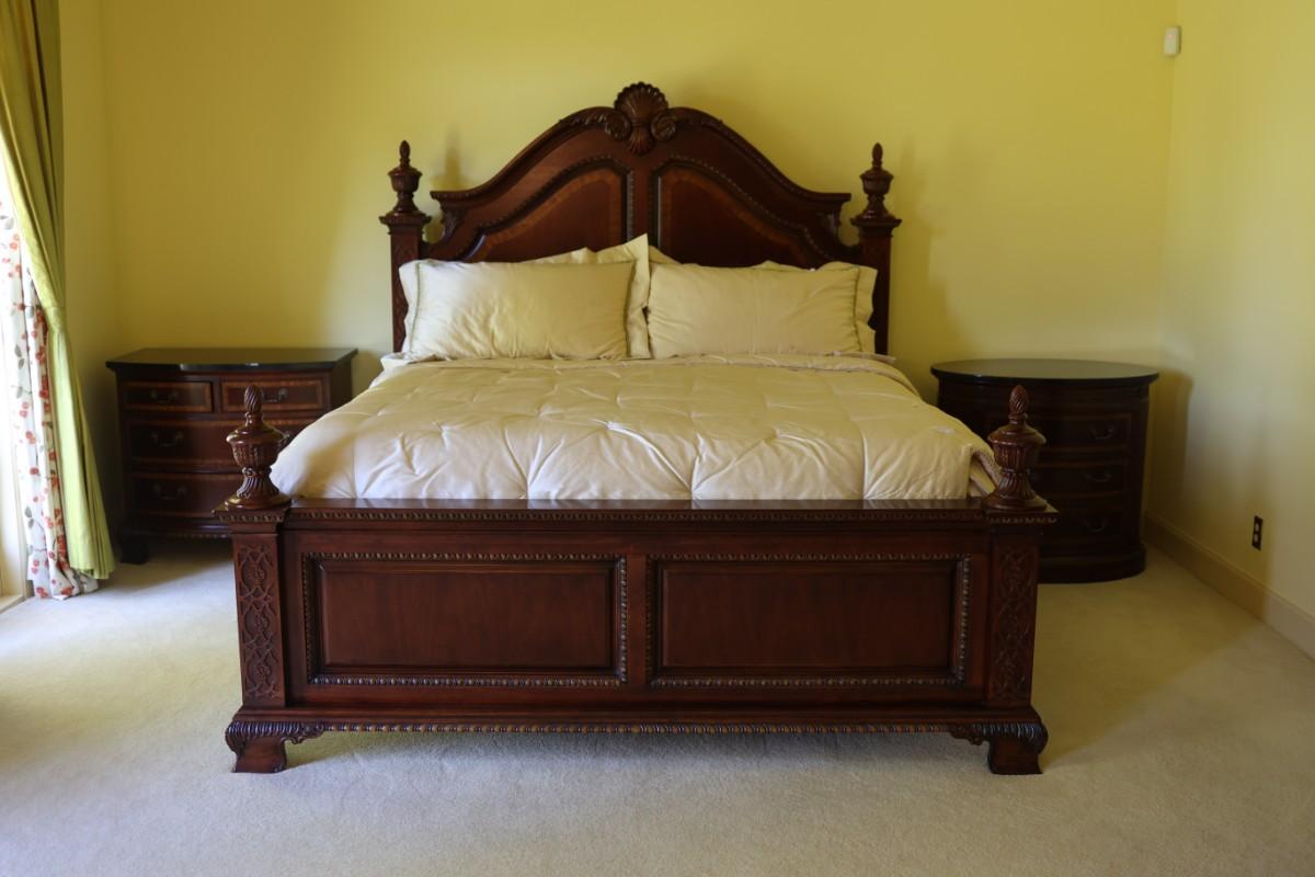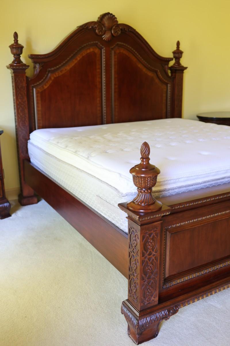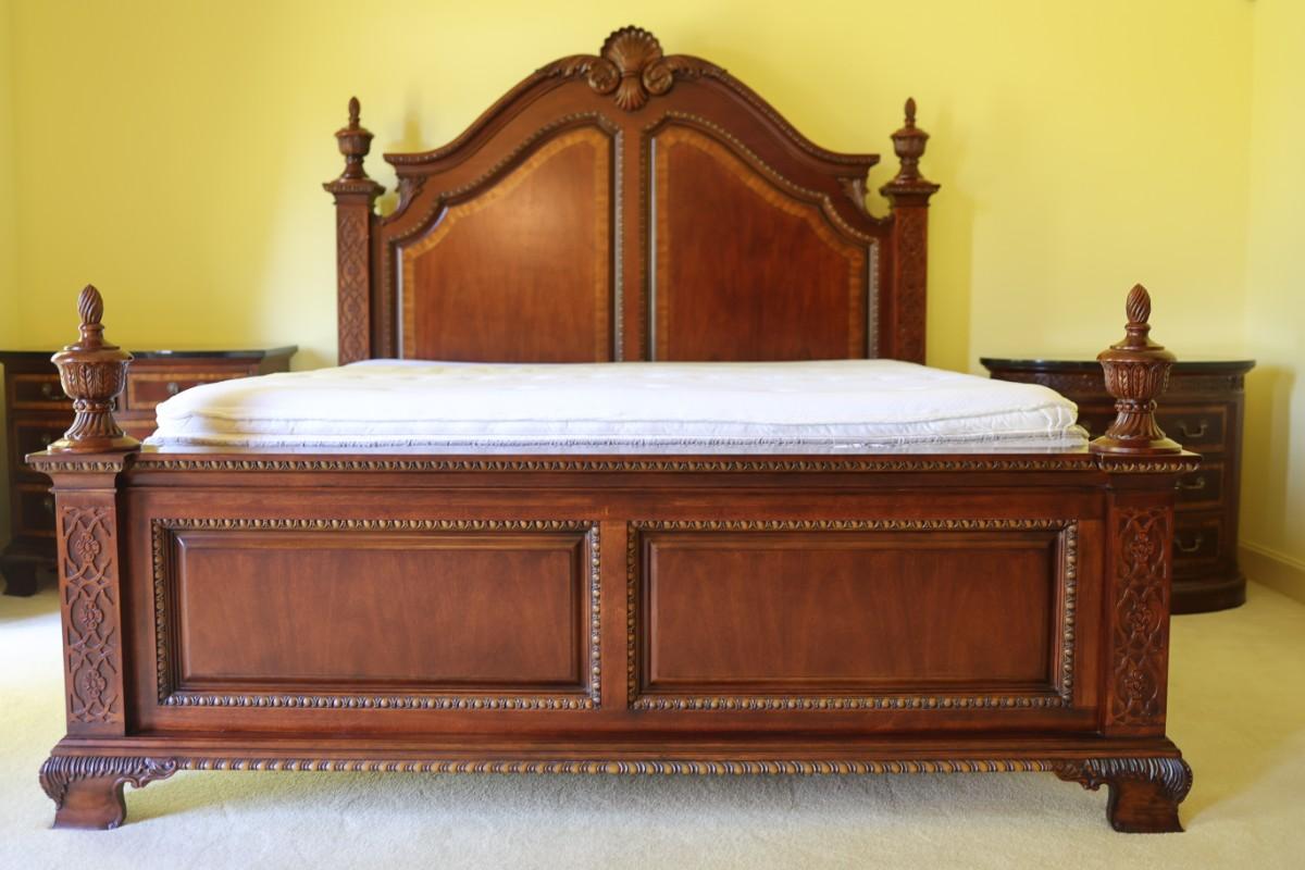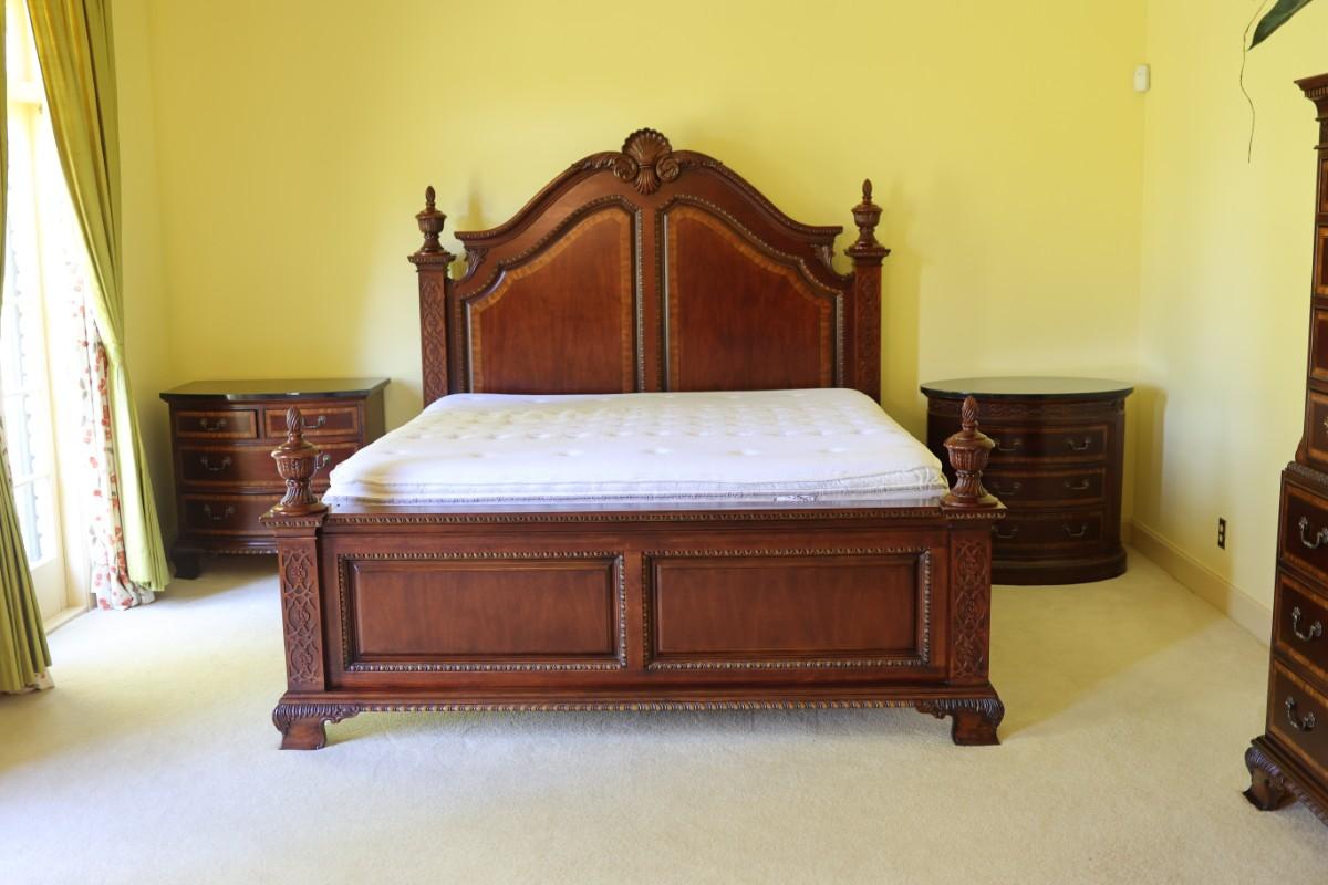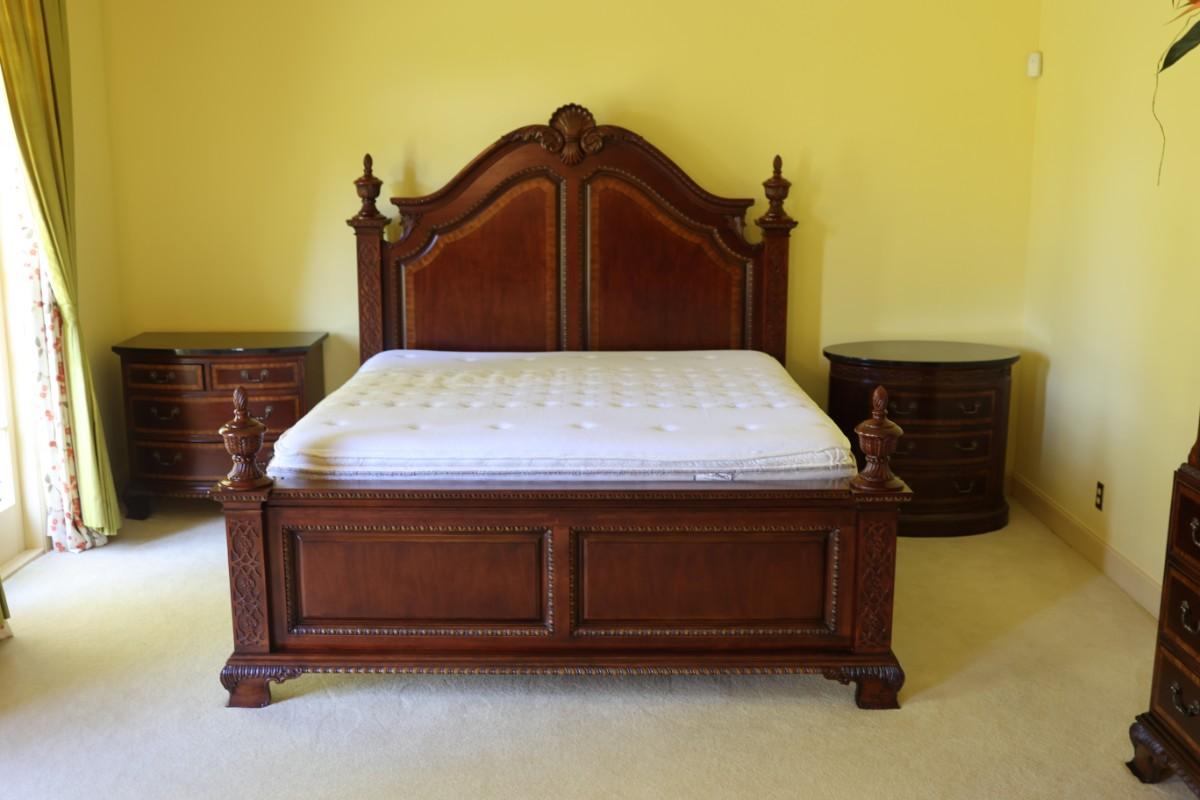 Matching long and tall dresser in the beginning of auction. Alone with night stands with marble tops.