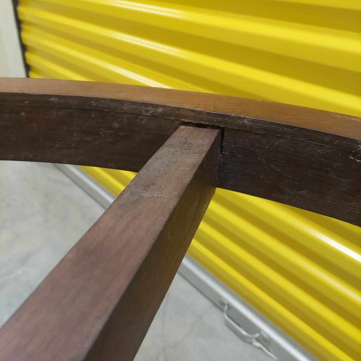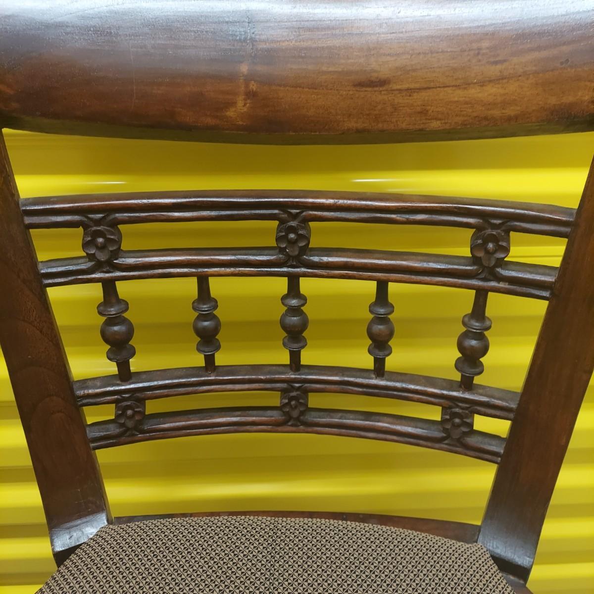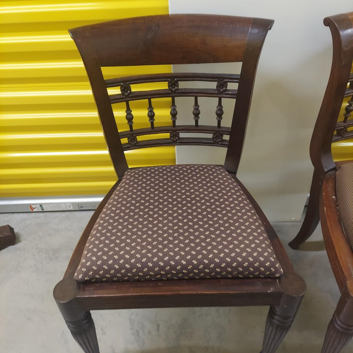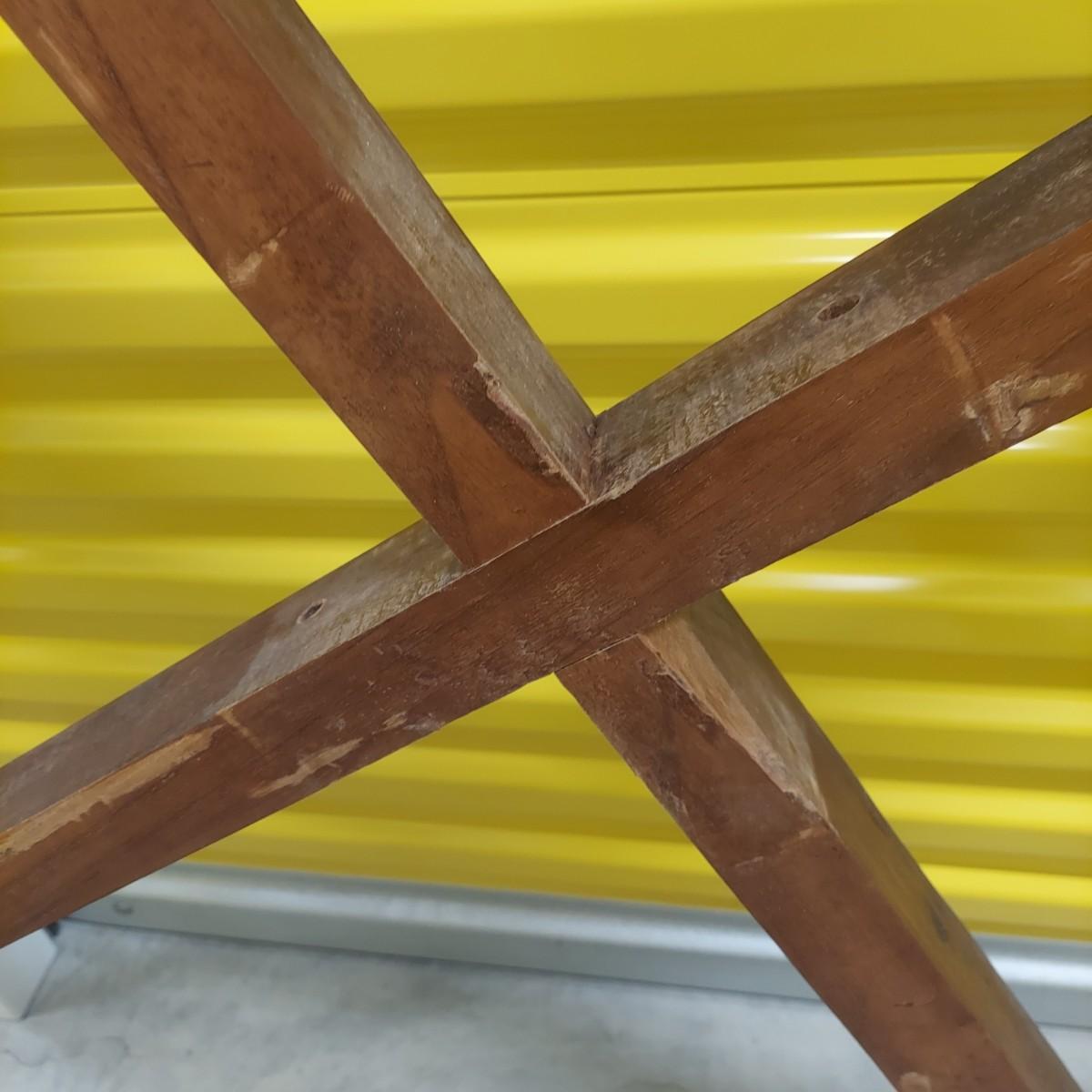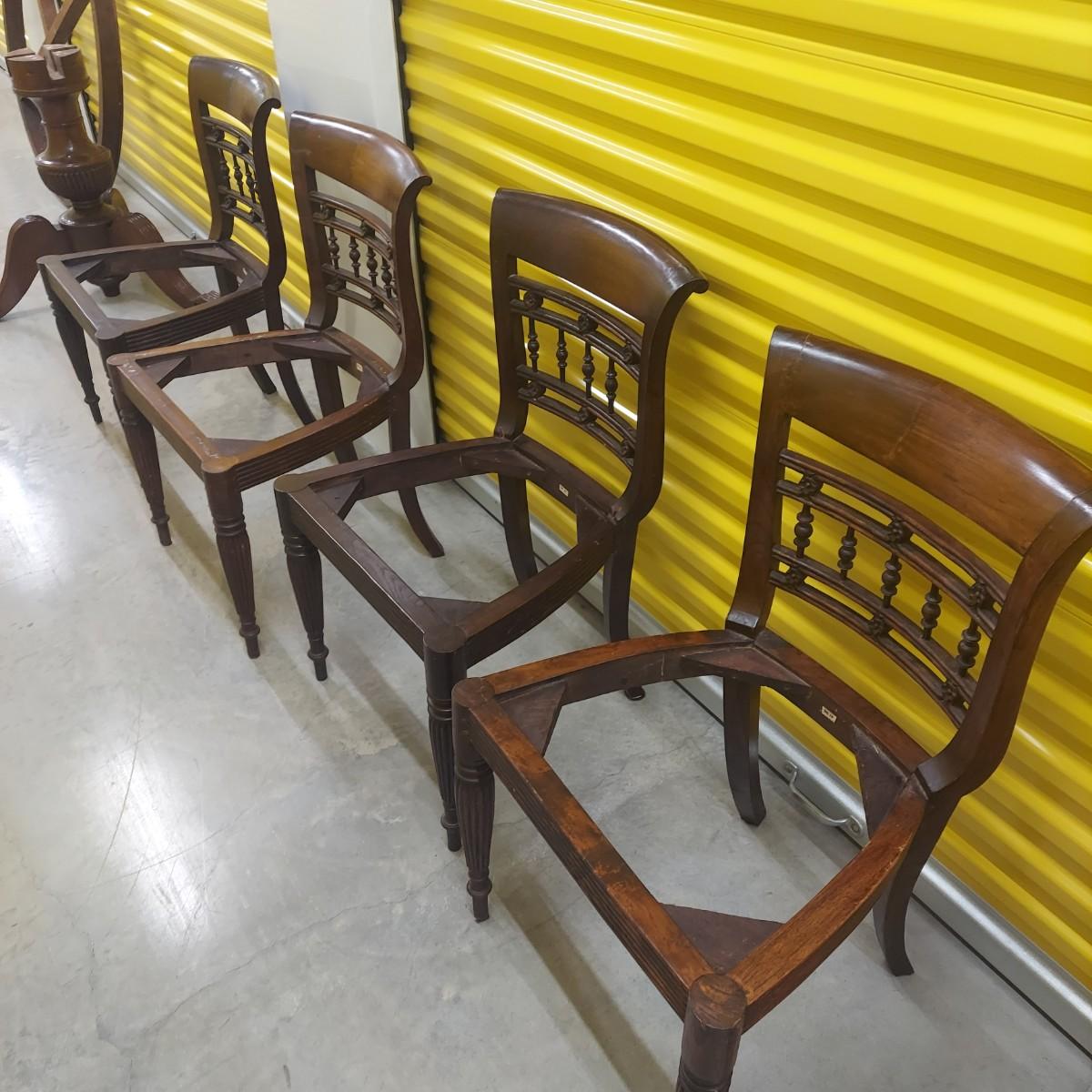 Unique round solid wood dining table with very heavy stone top that appears to be marble. There are also four chairs with upholstered seats. Table is in three pieces. The clawfoot center pedestal measures approximately 30"D x 29"H. The frame measures across 45"D. The top is 47.5"D across. There are four chairs with carved backs and fluted legs. Each chair measures 22” x 20” x 34"H with a seat height of 20”H. There are some overall condition issues like cracks in the base, chips out of a chair and what appears to be double sided tape on a chair. Please see photos for details. Local Pickup Only. Winning bidder must bring assistance to help move and load this item due to its weight and/or size.