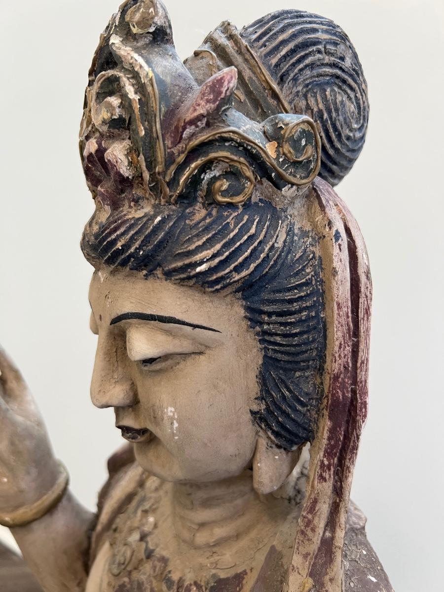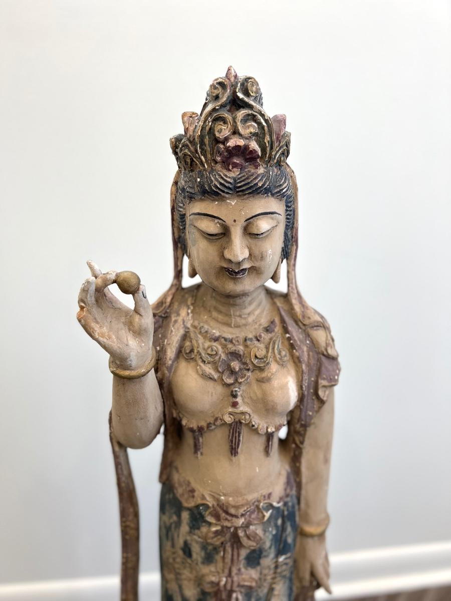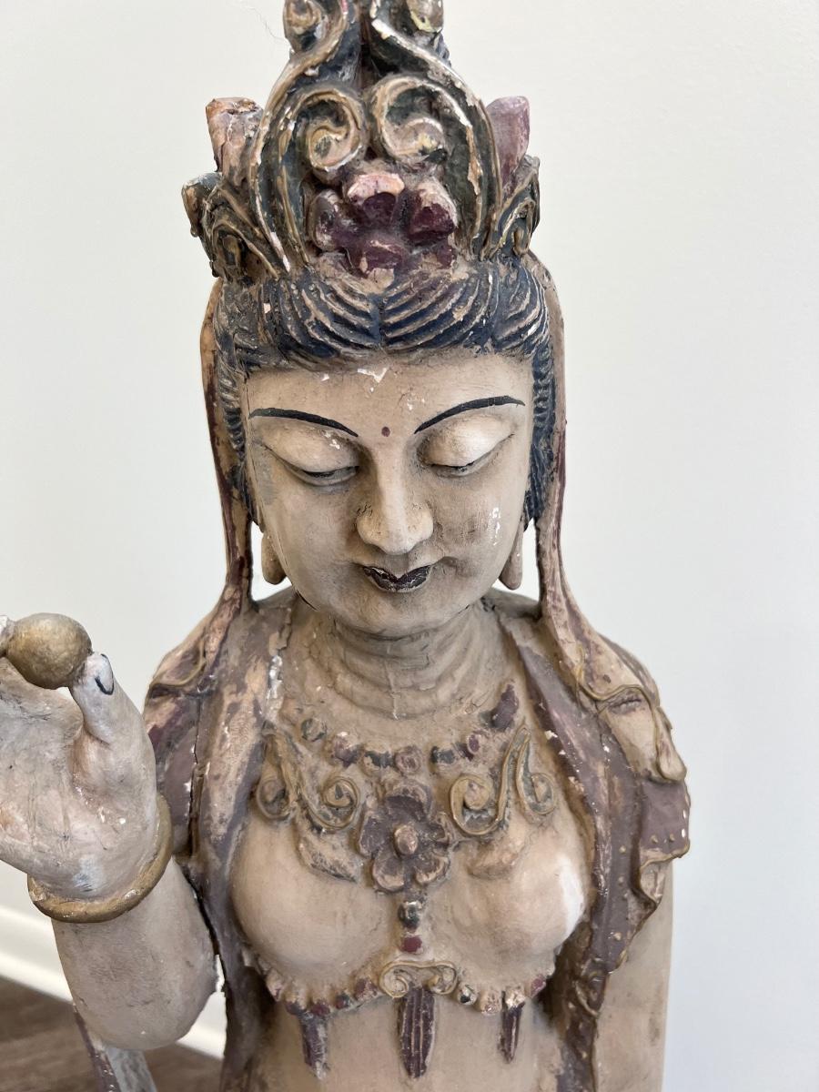 Guan Yin Carved Wooden Goddess Statue *Read Details