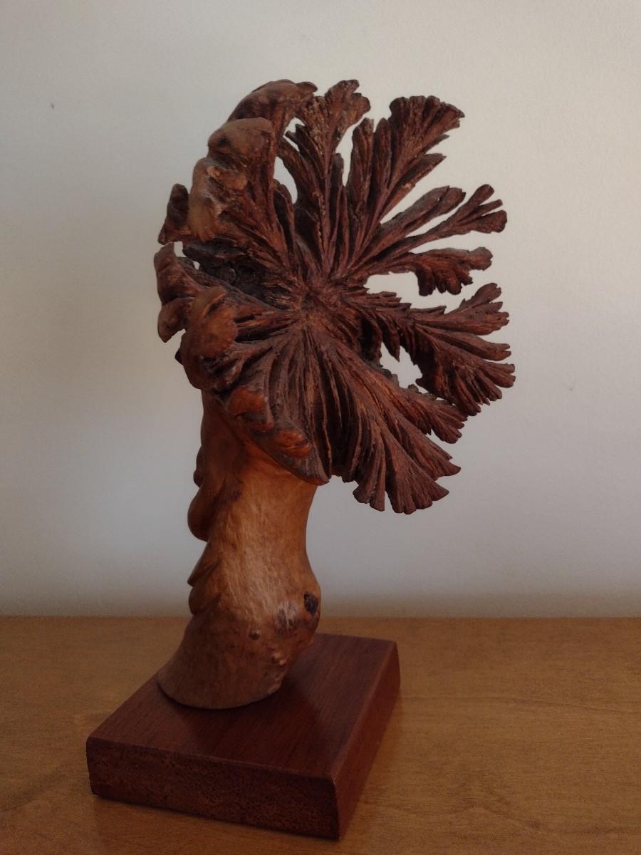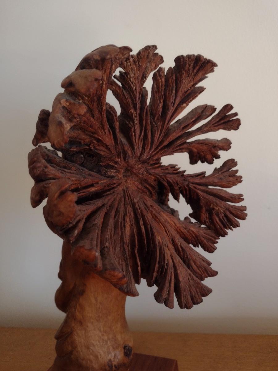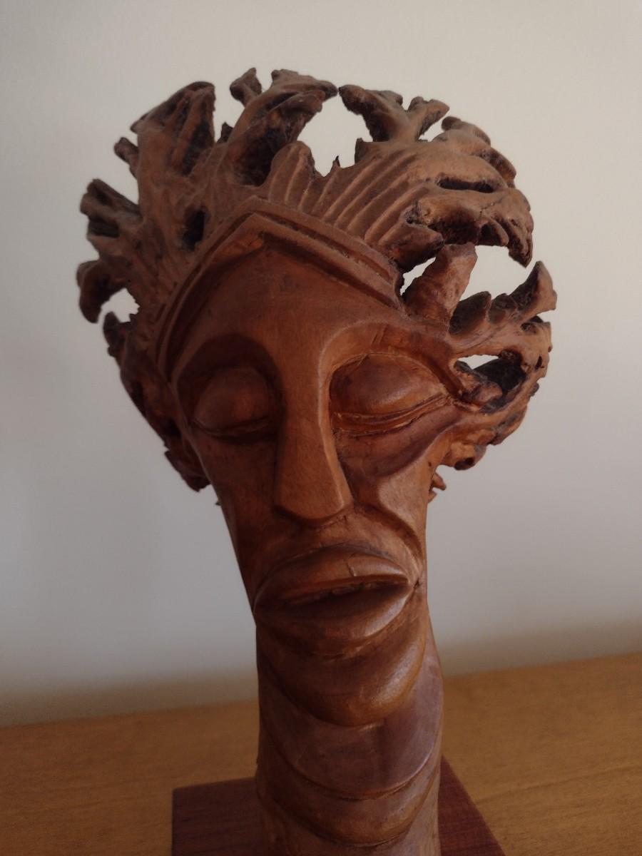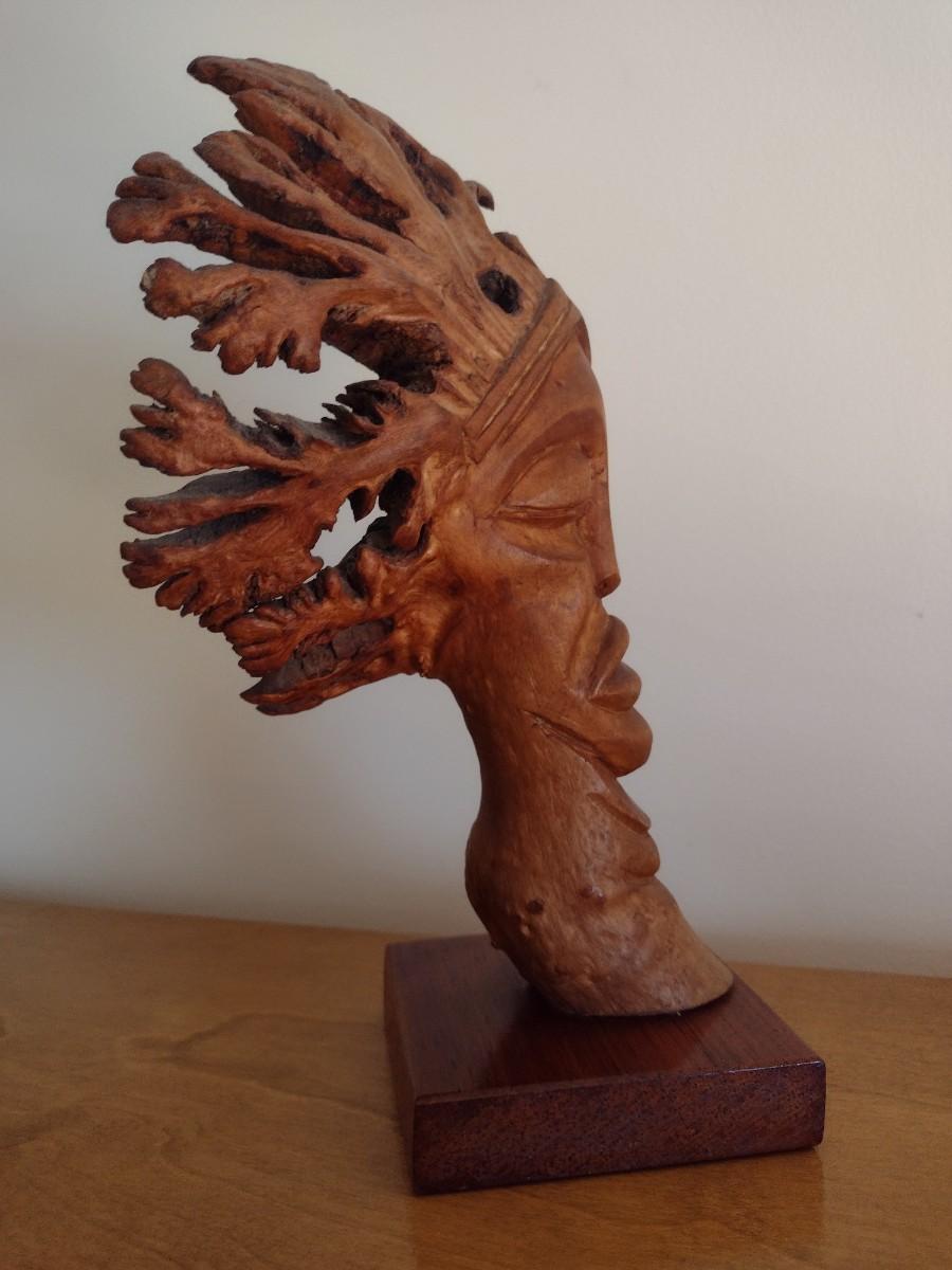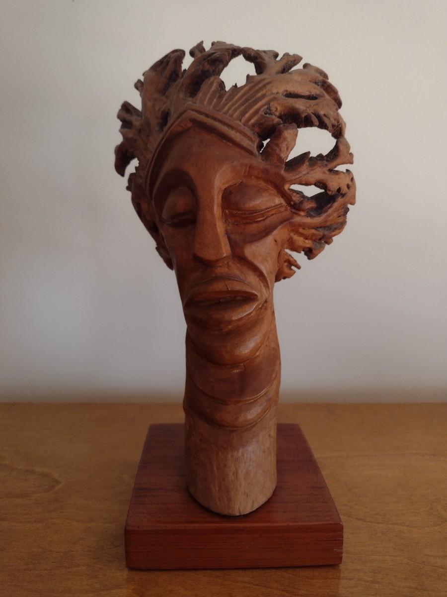 Carved Parasite Wood Tribal Bust on Wood Base-B