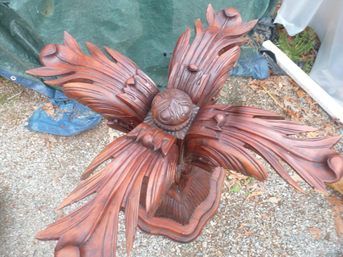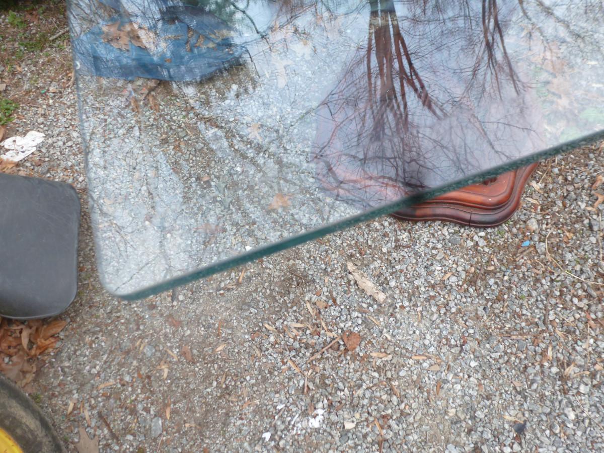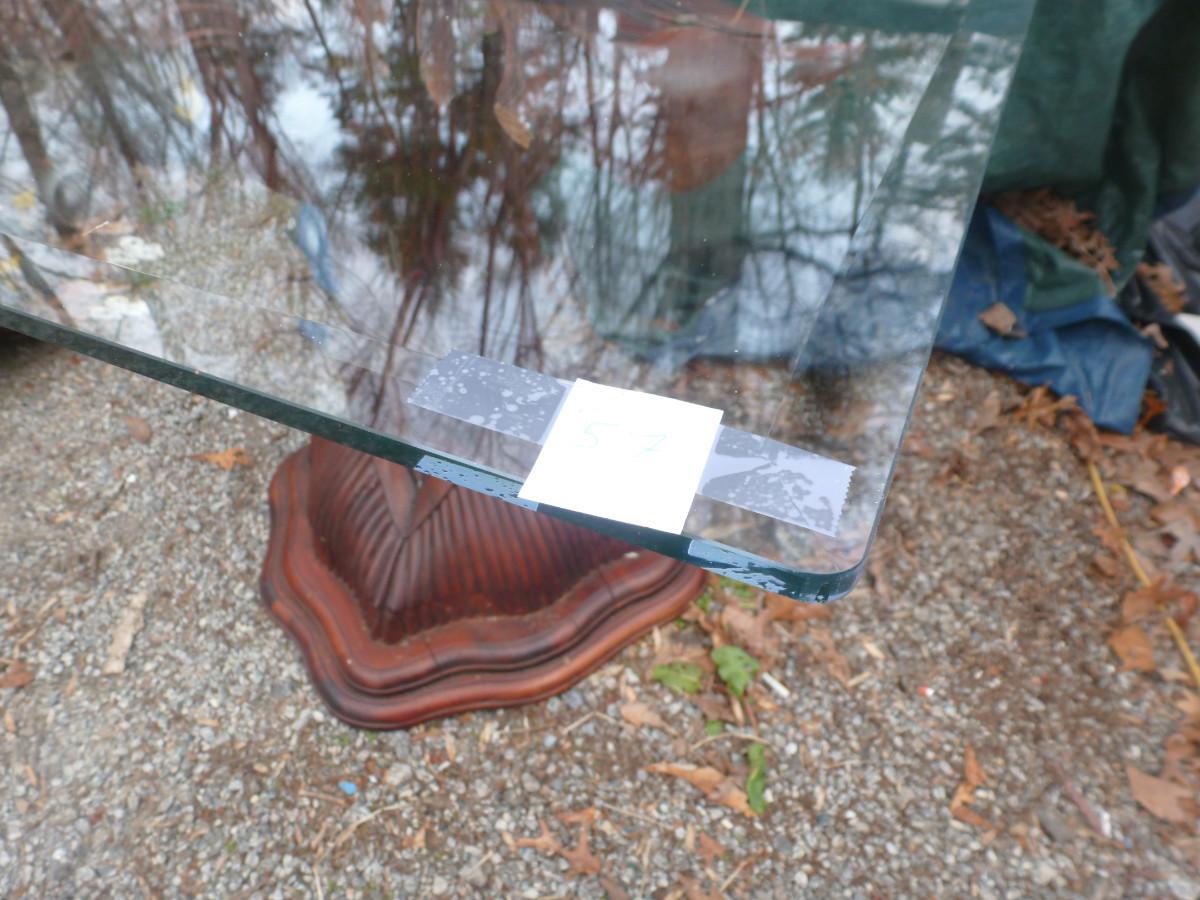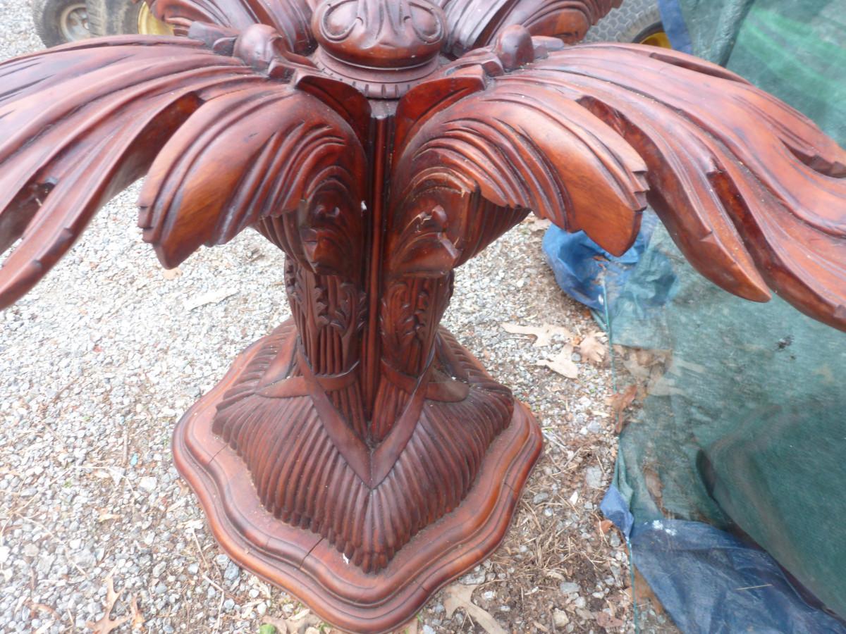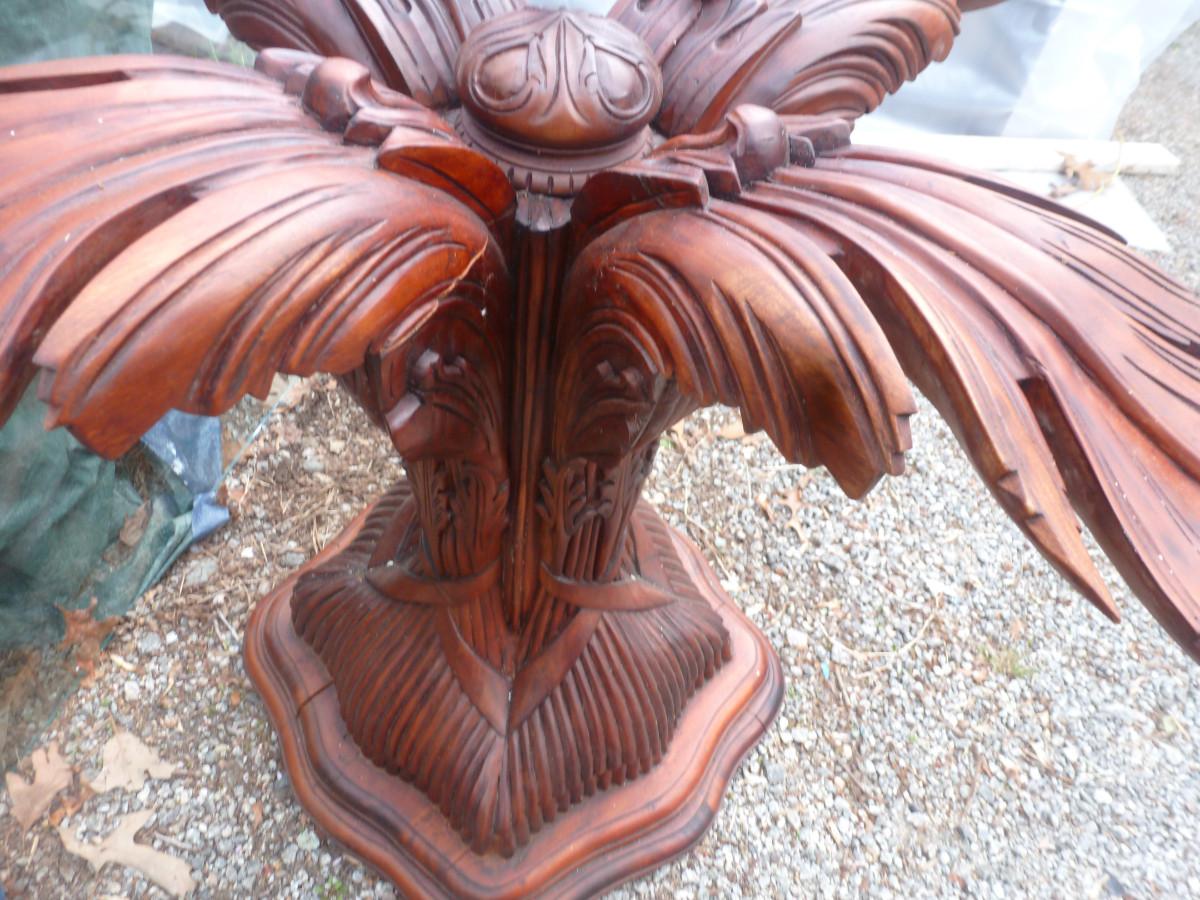 Carved Pedestal Table with Beveled Glass Top. Top is approx 38 3/4" in diameter.