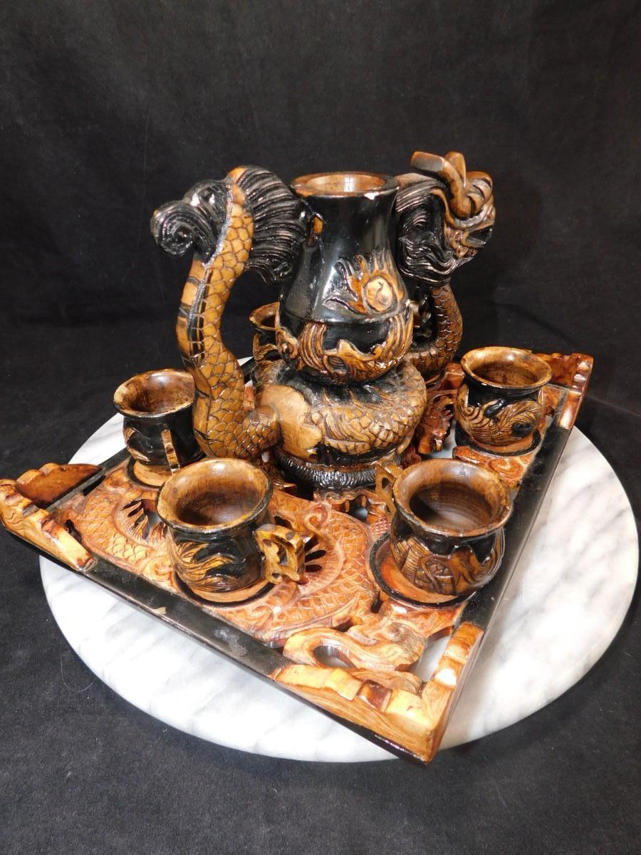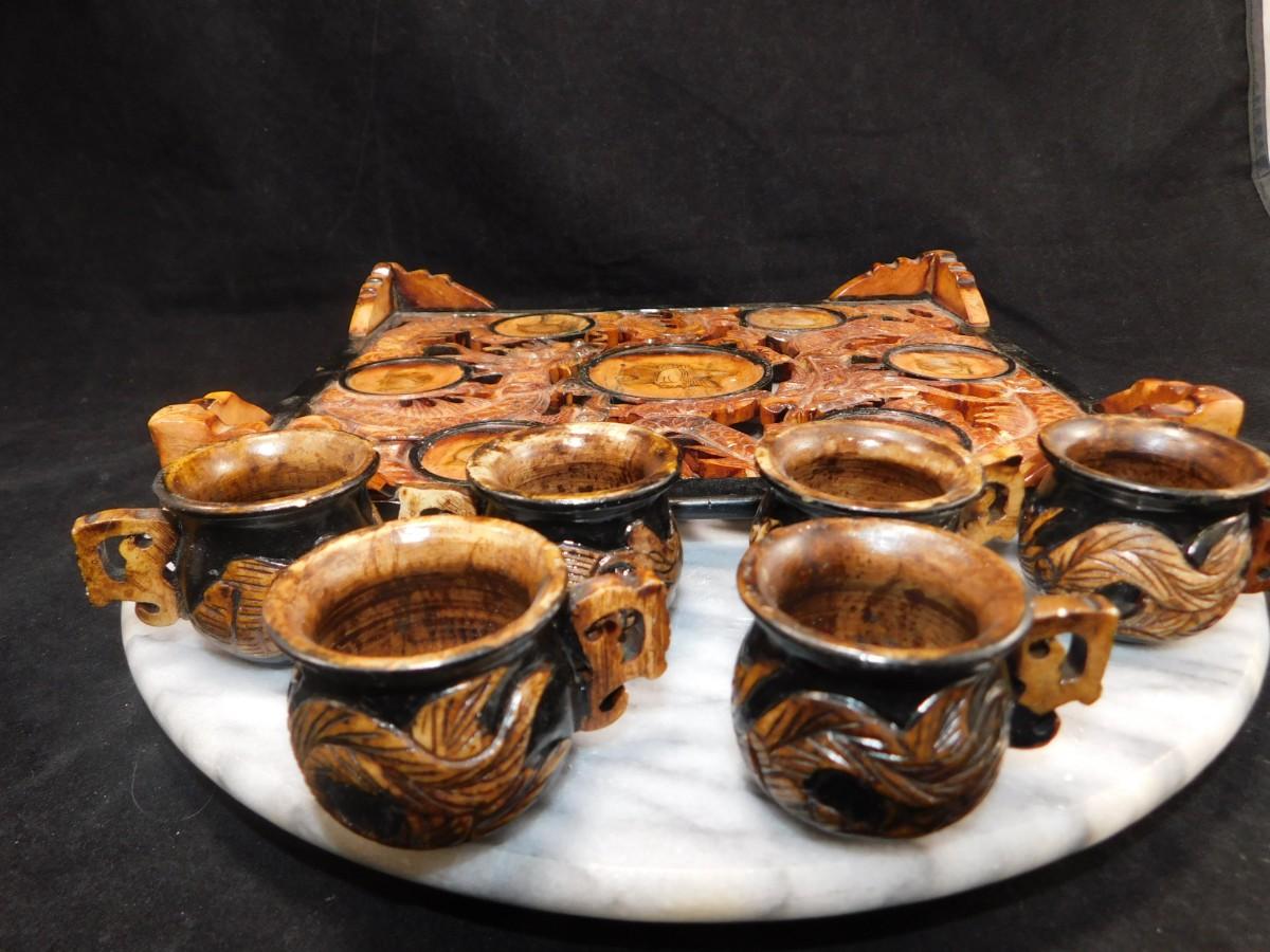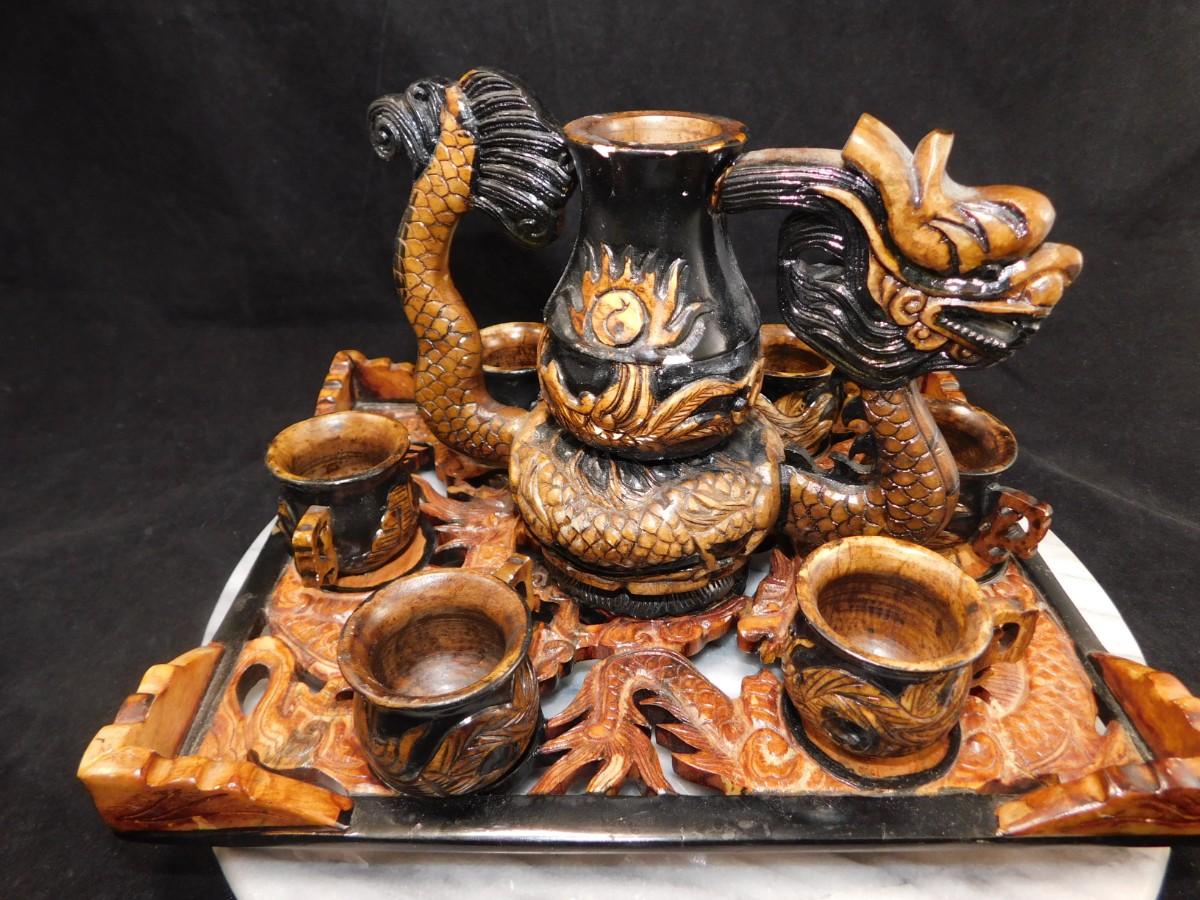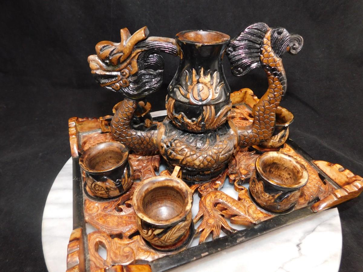 Carved Plaster Serpent Tea Set w/ Serving Tray 9.75”x8”x6”