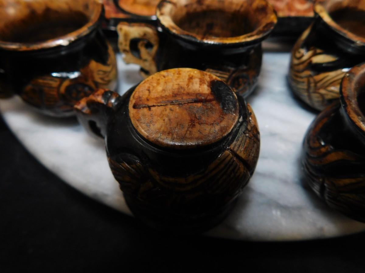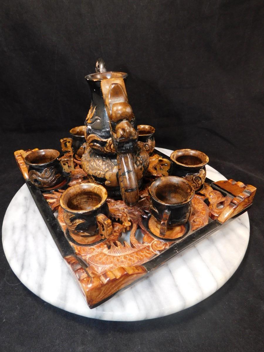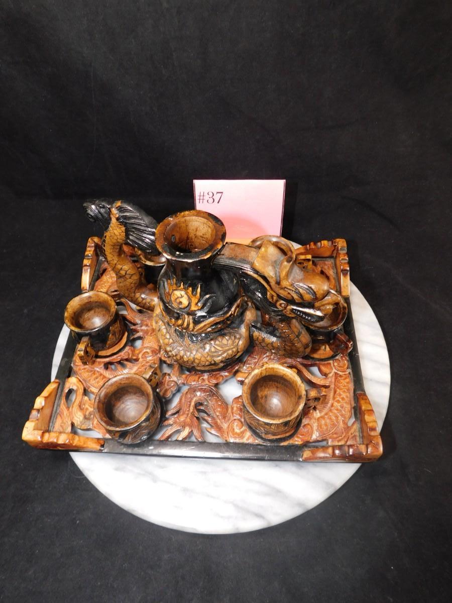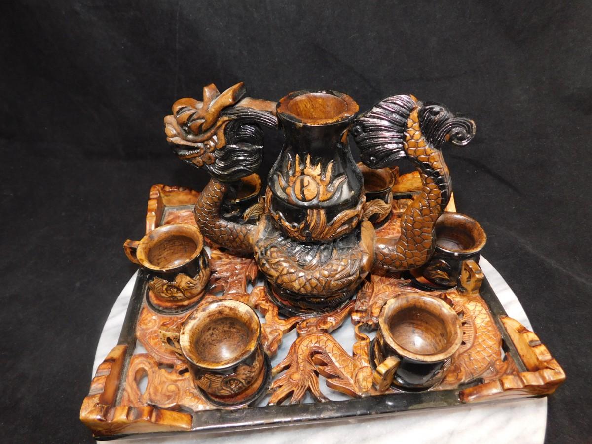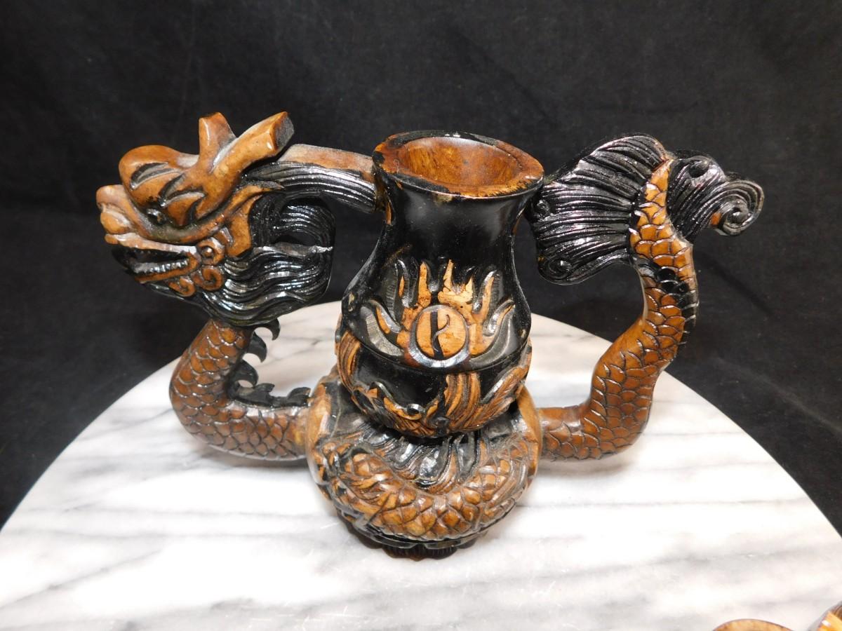 Carved Plaster Serpent Tea Set w/ Serving Tray 9.75”x8”x6”