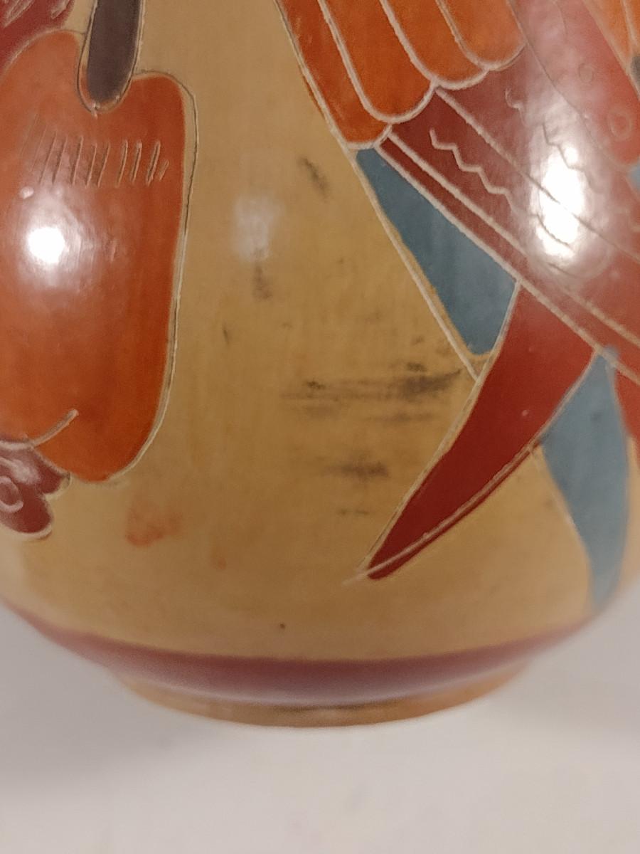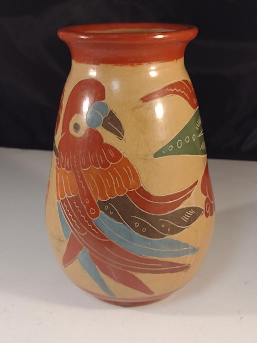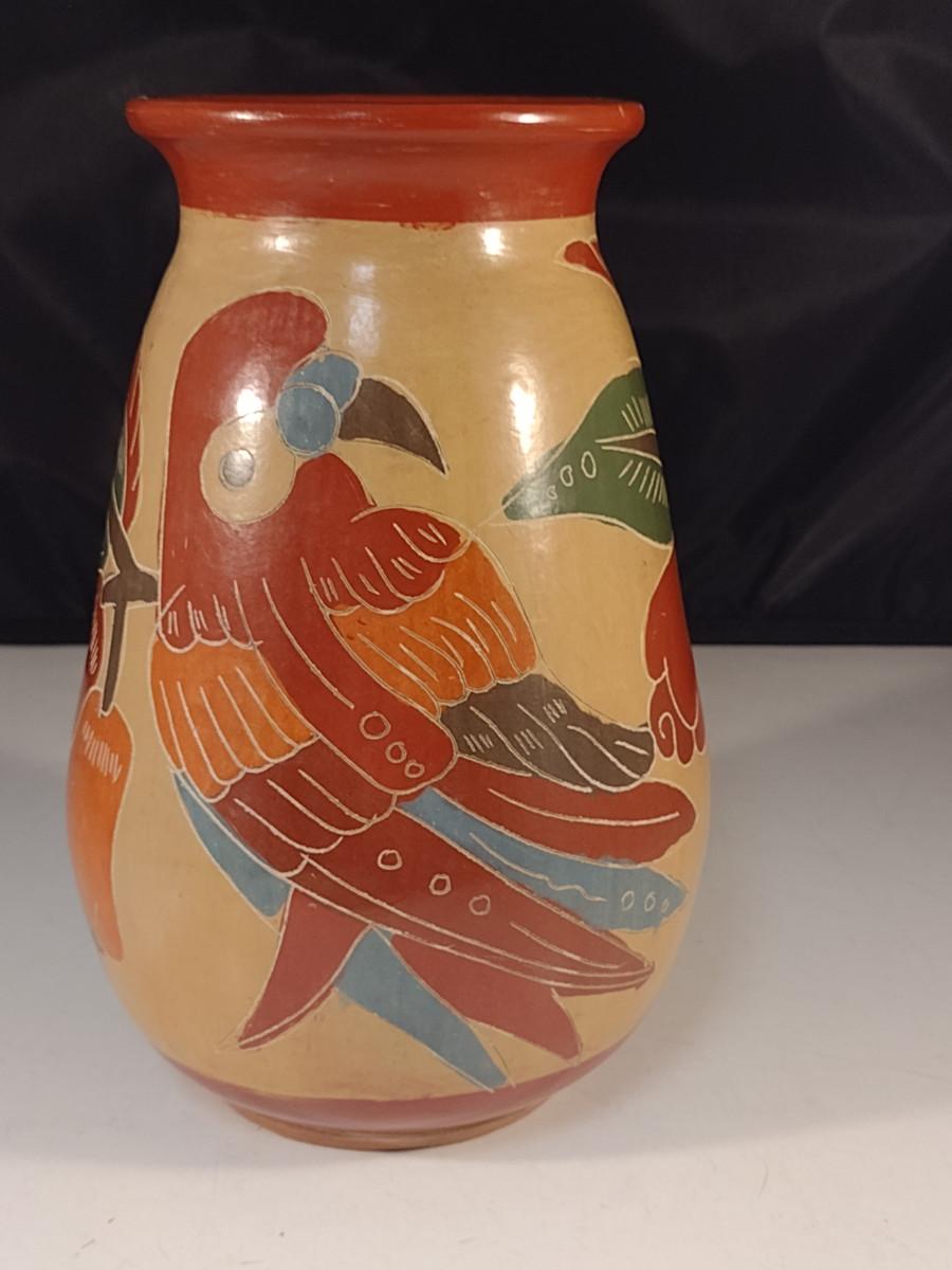 Carved Pottery Vase with Bird Design- Possibly Nicaraguan- Approx 7 3/4" Tall