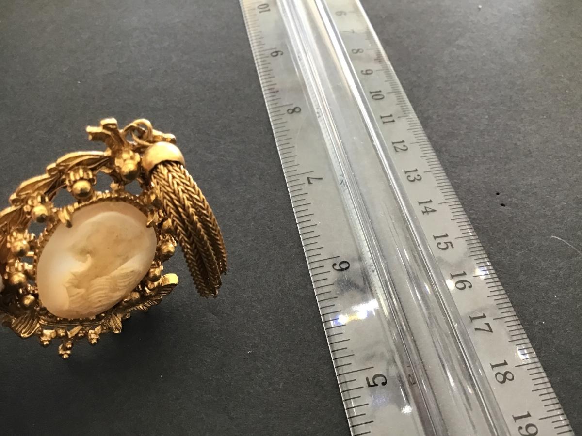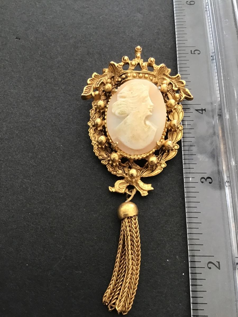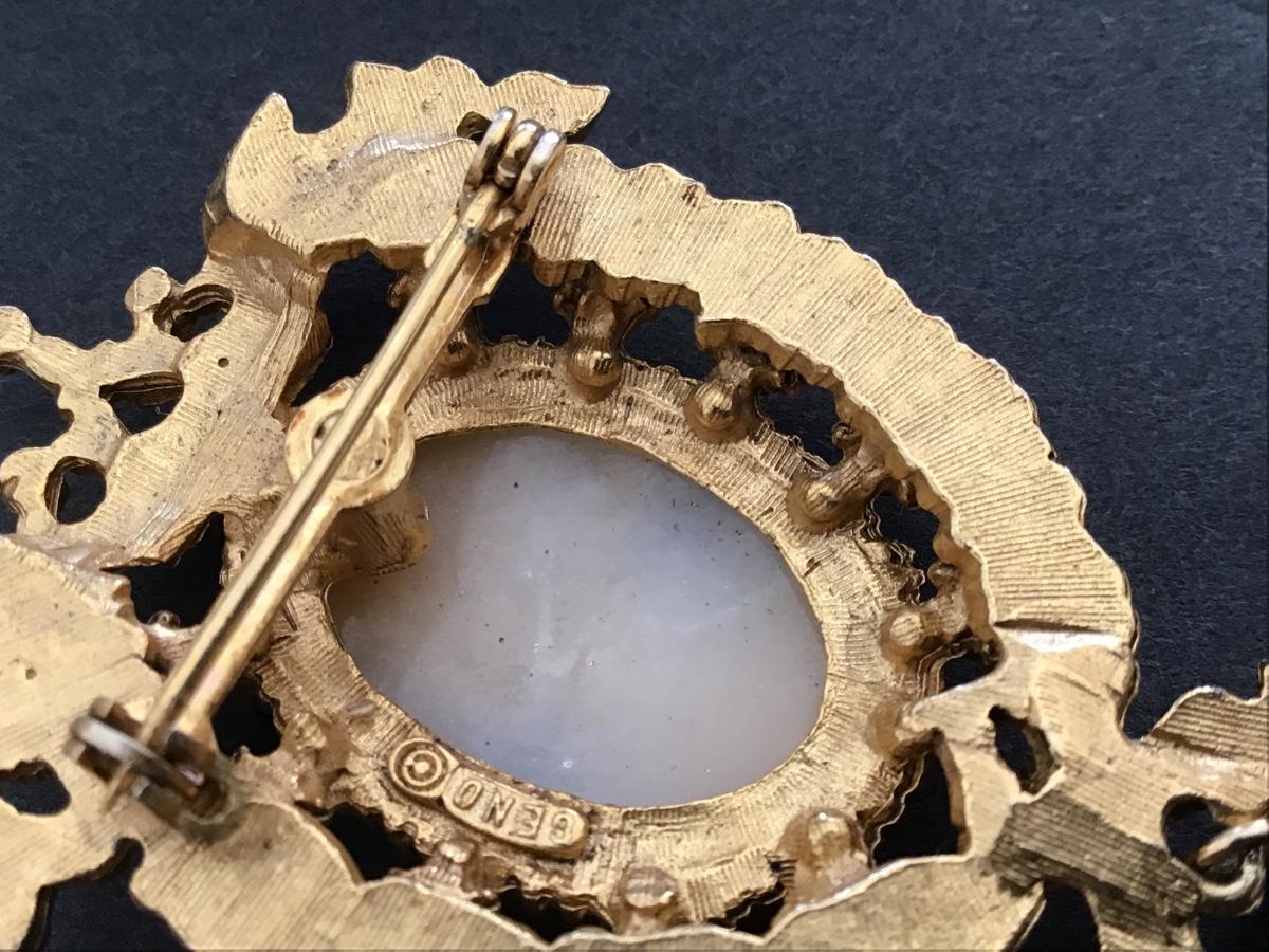 Carved Signed Geno Oval Gold Tone Vintage Brooch