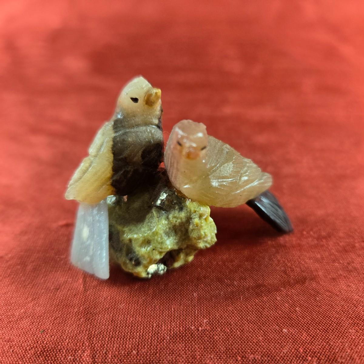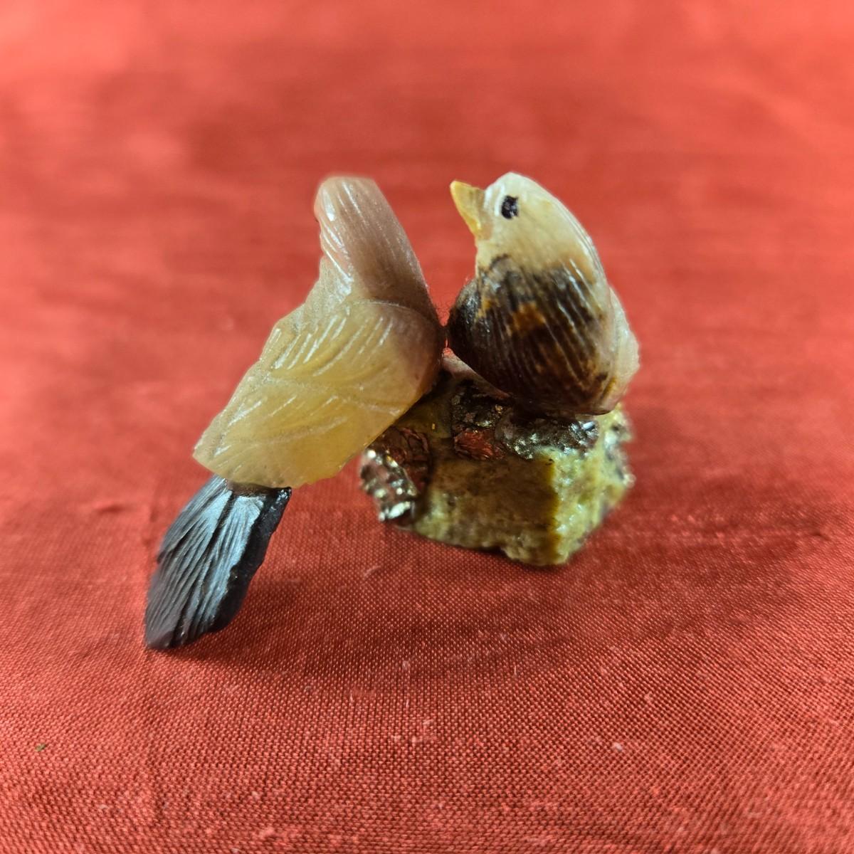 This auction lot is for a lovely pair of Hand-Carved Soapstone Birds on a Quartz Stone. They are miniature - approximately 1.5 inches. They are nicely done and will add to anyone's decor or miniature collections.