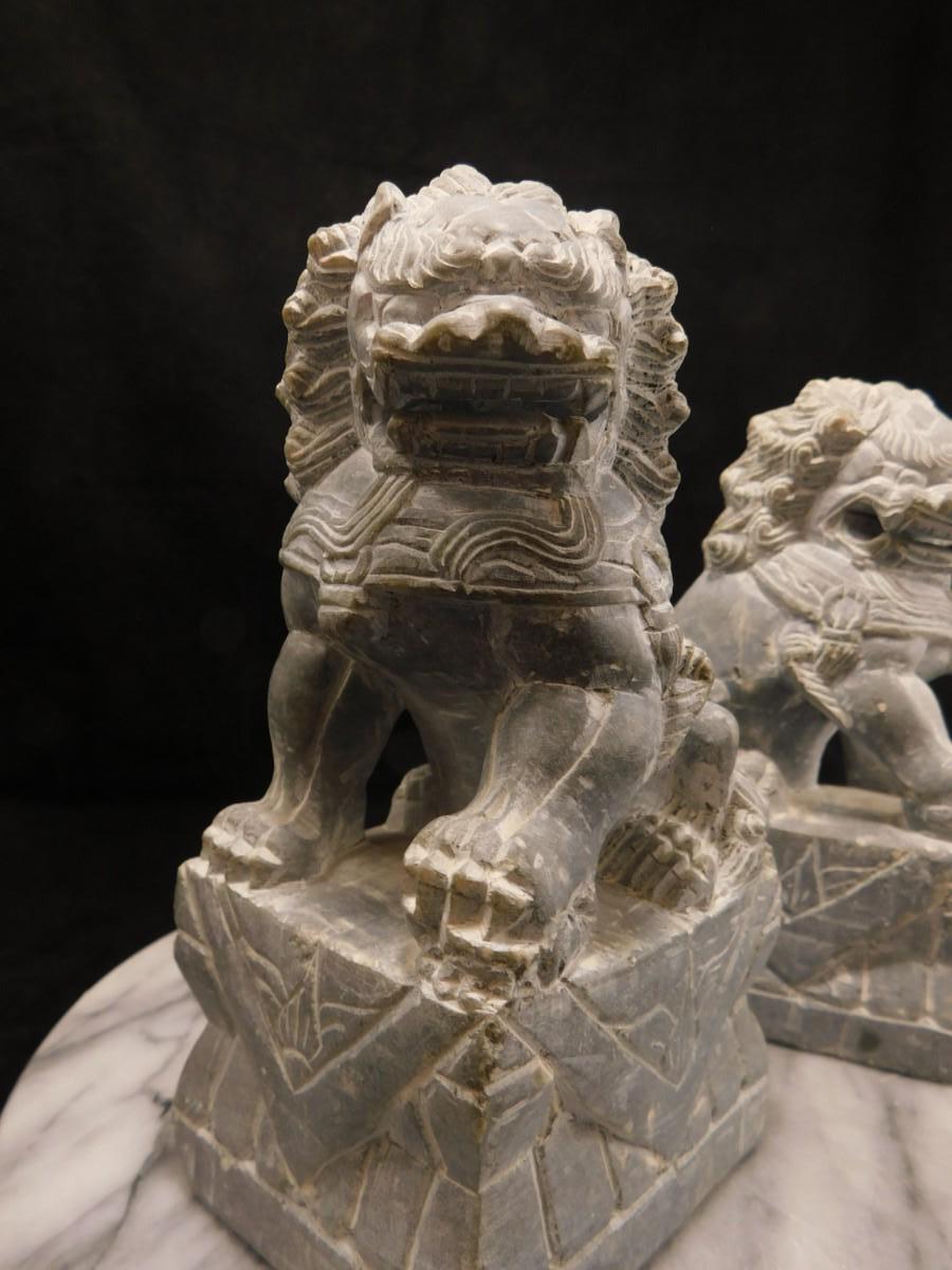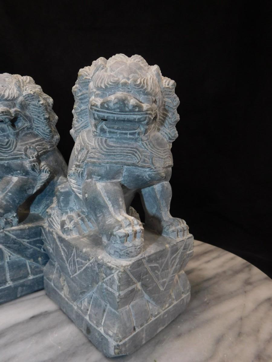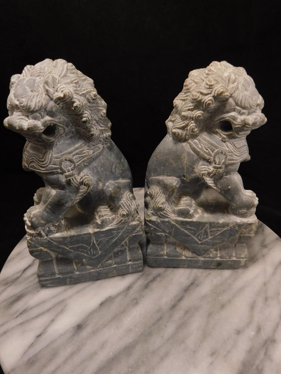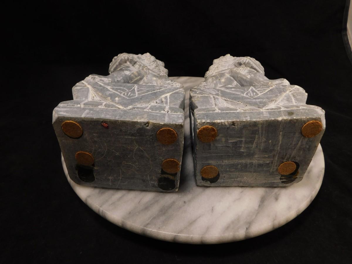 Carved Soapstone Chinese Foo Dog Bookends 7.25” Tall