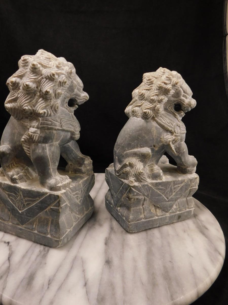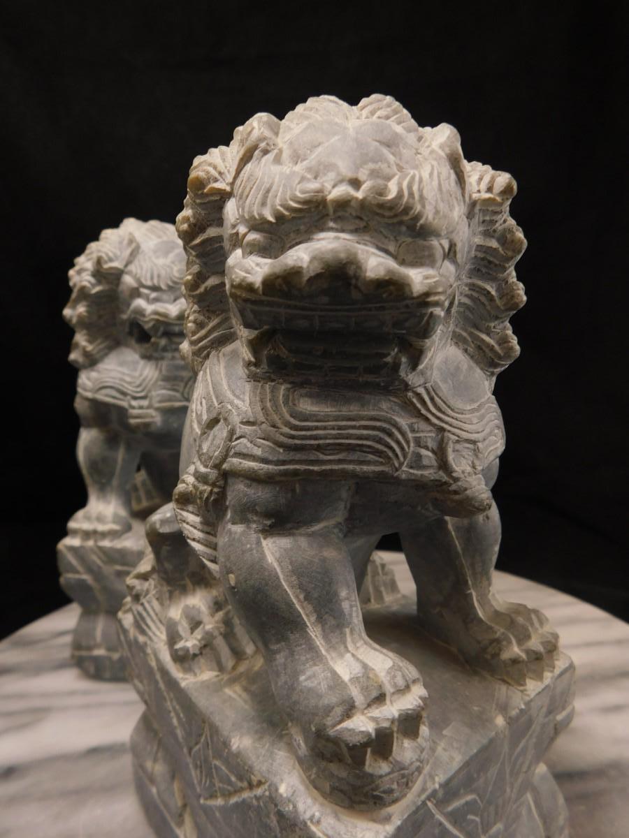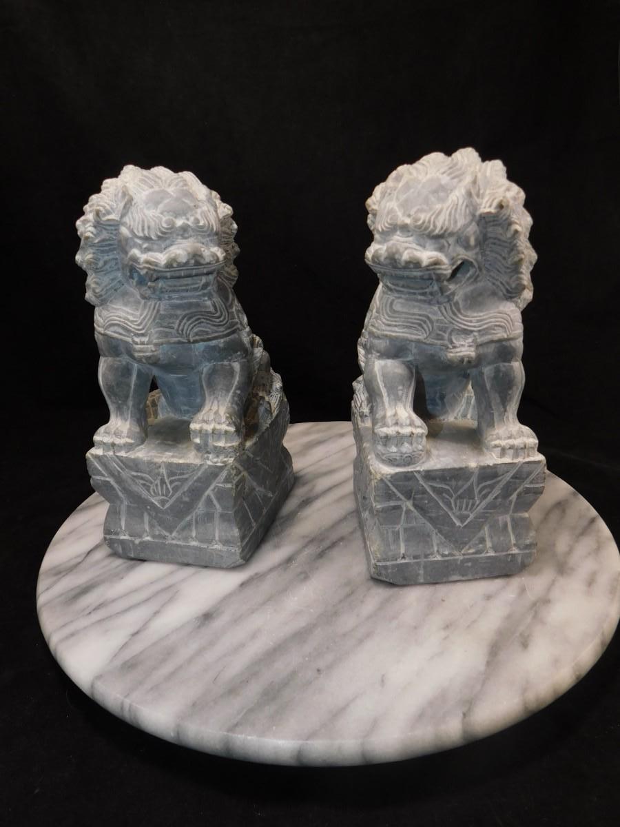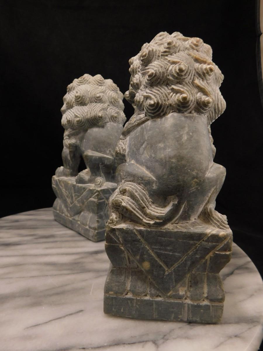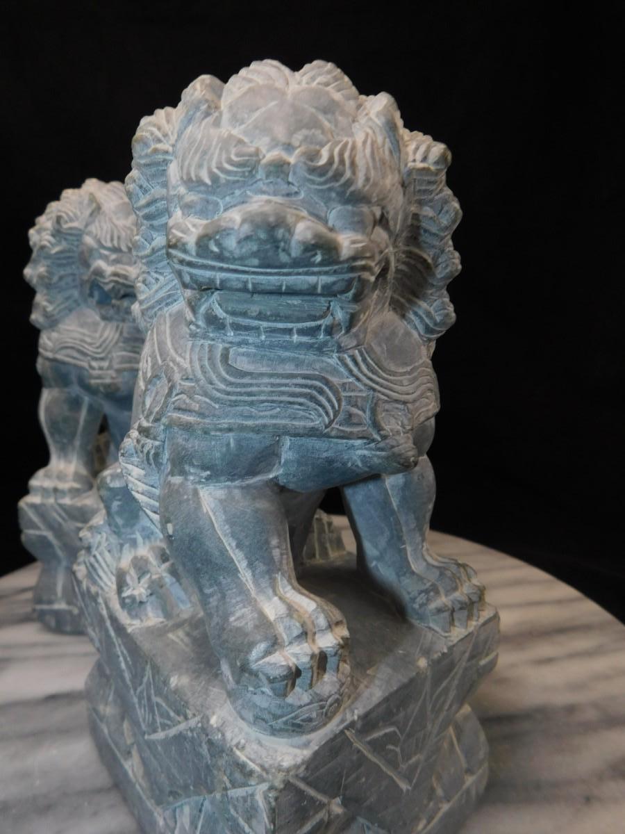 Carved Soapstone Chinese Foo Dog Bookends 7.25” Tall