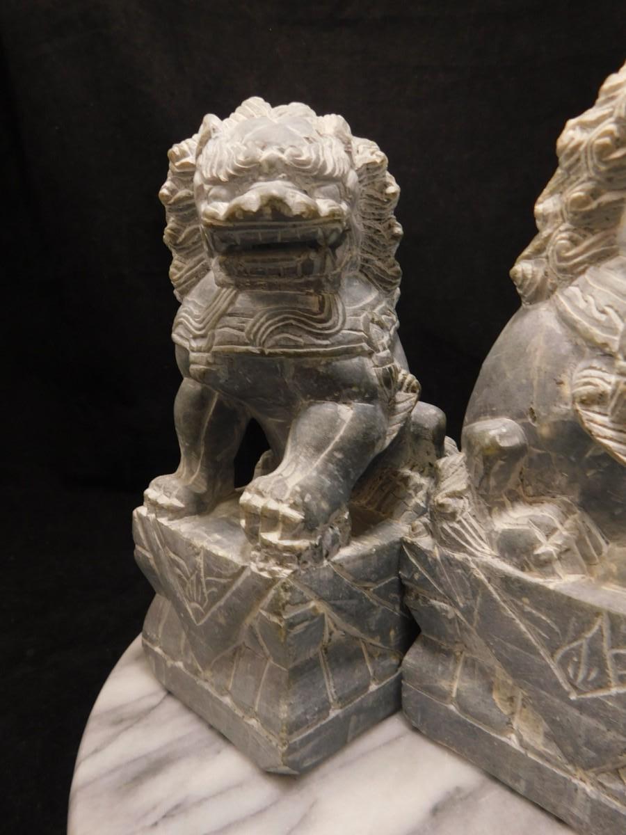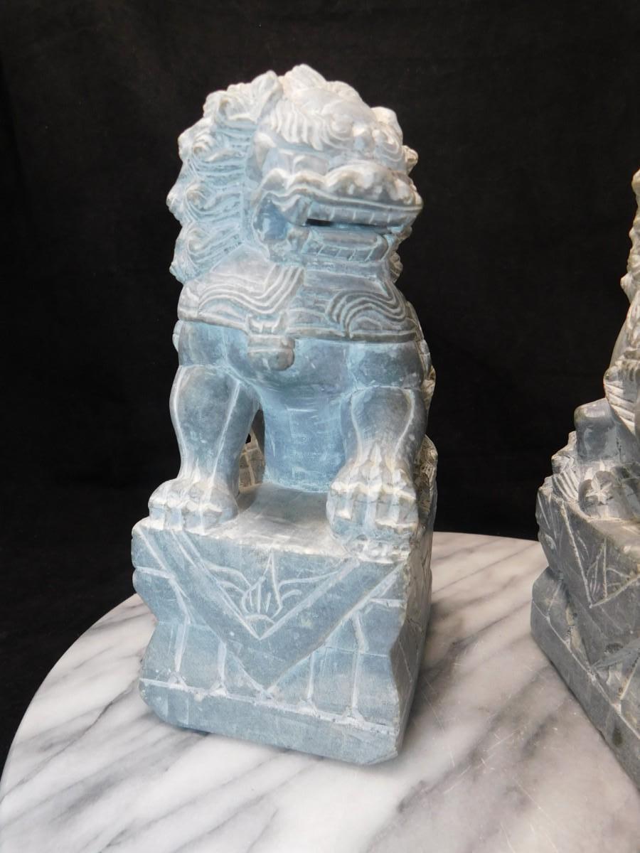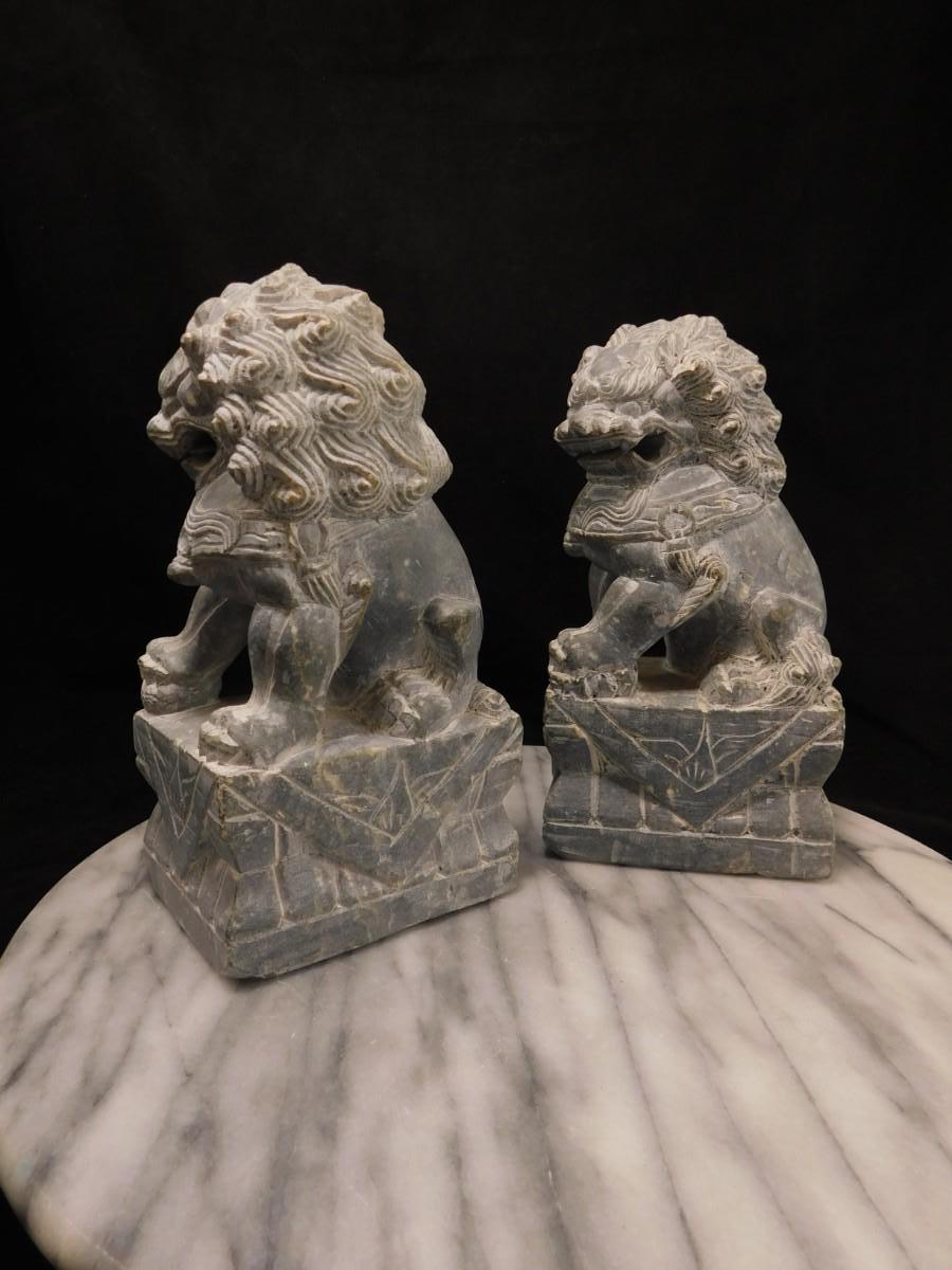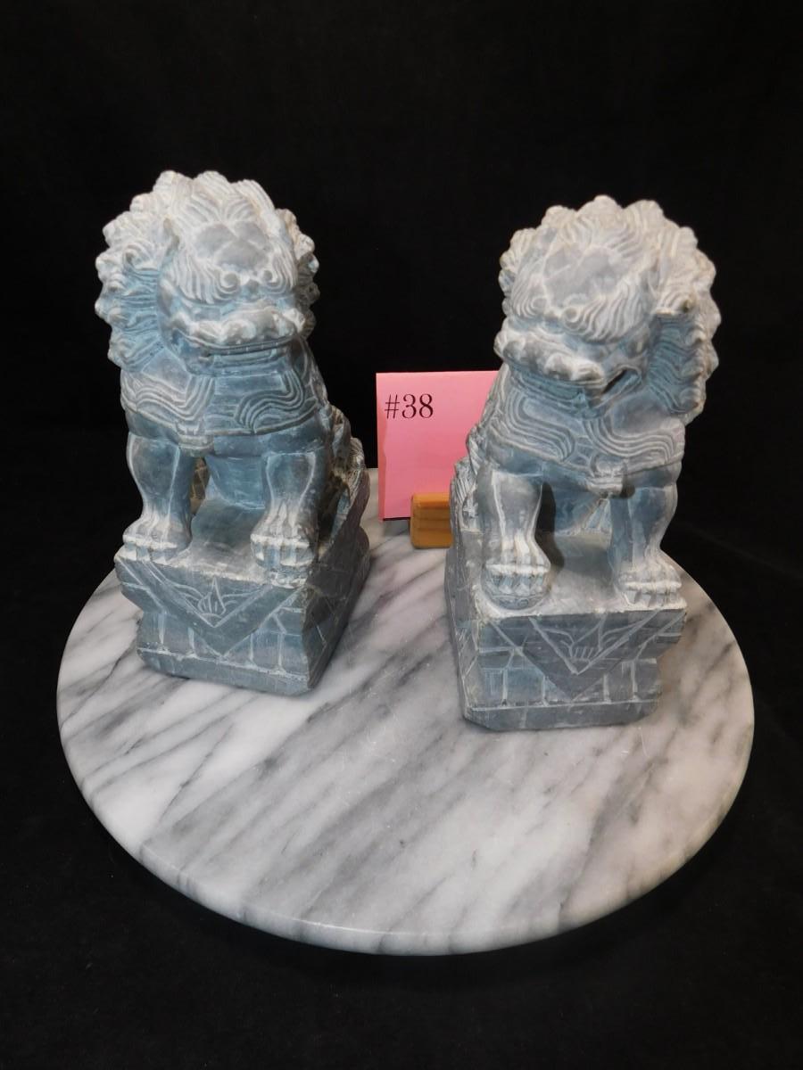 Carved Soapstone Chinese Foo Dog Bookends 7.25” Tall