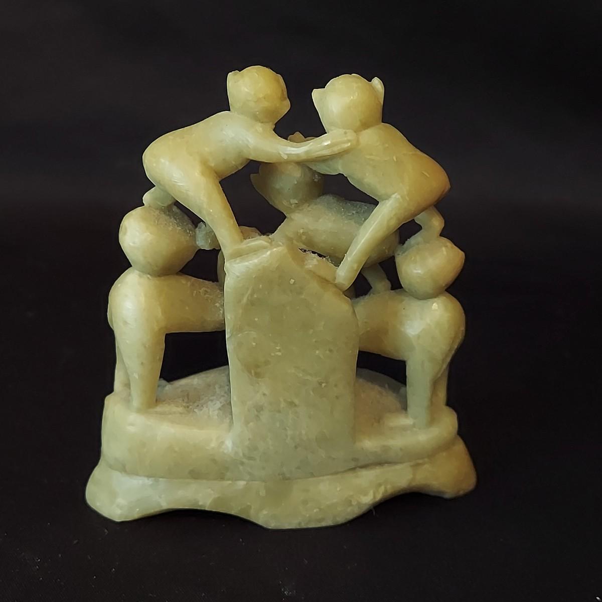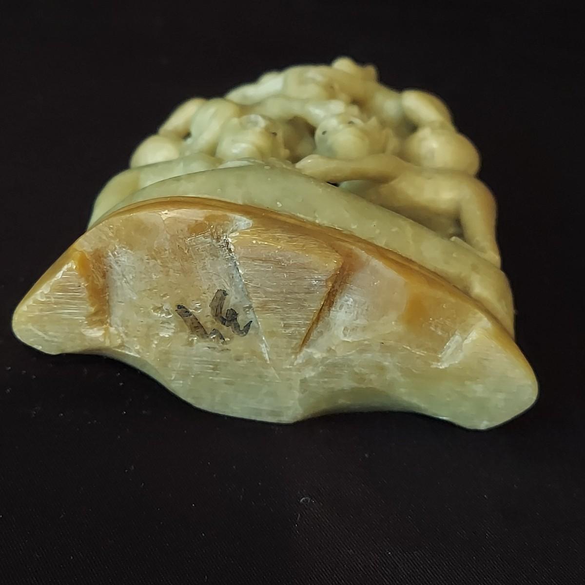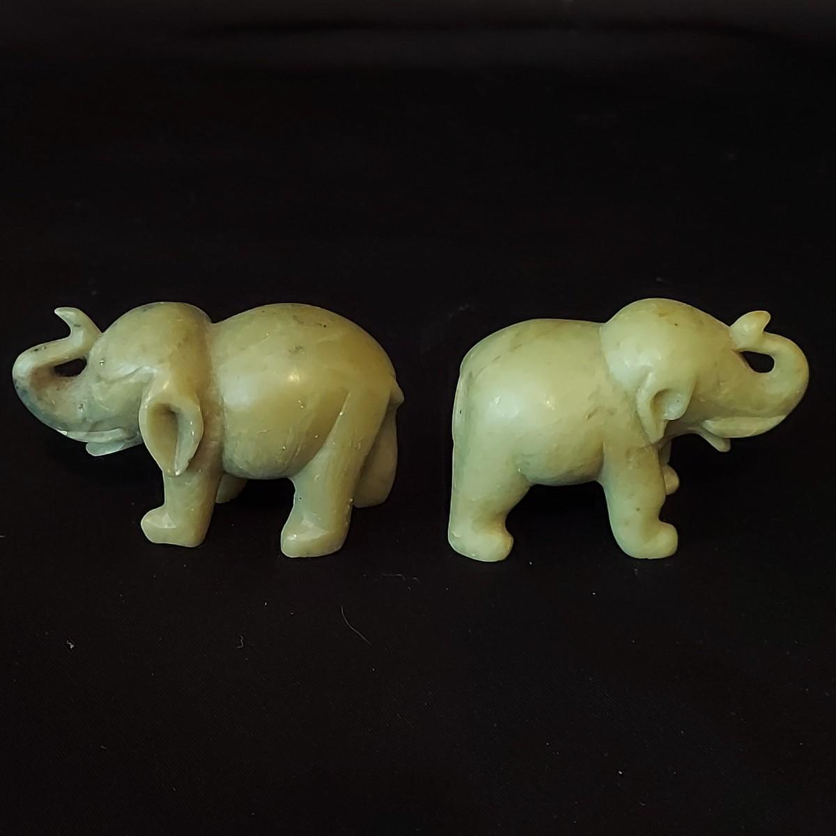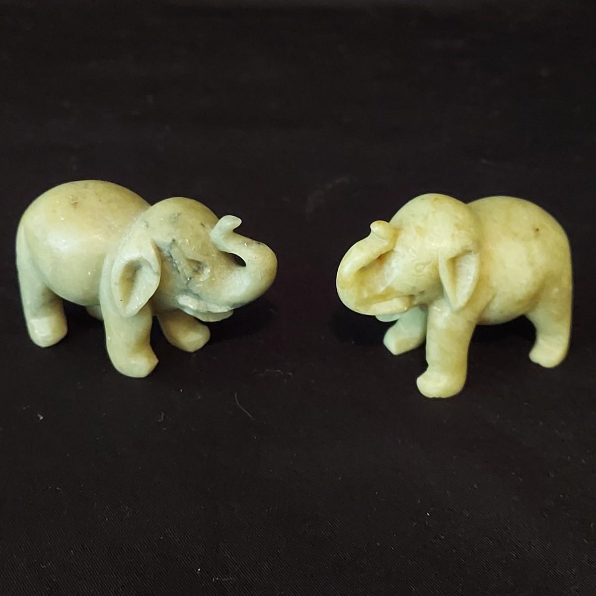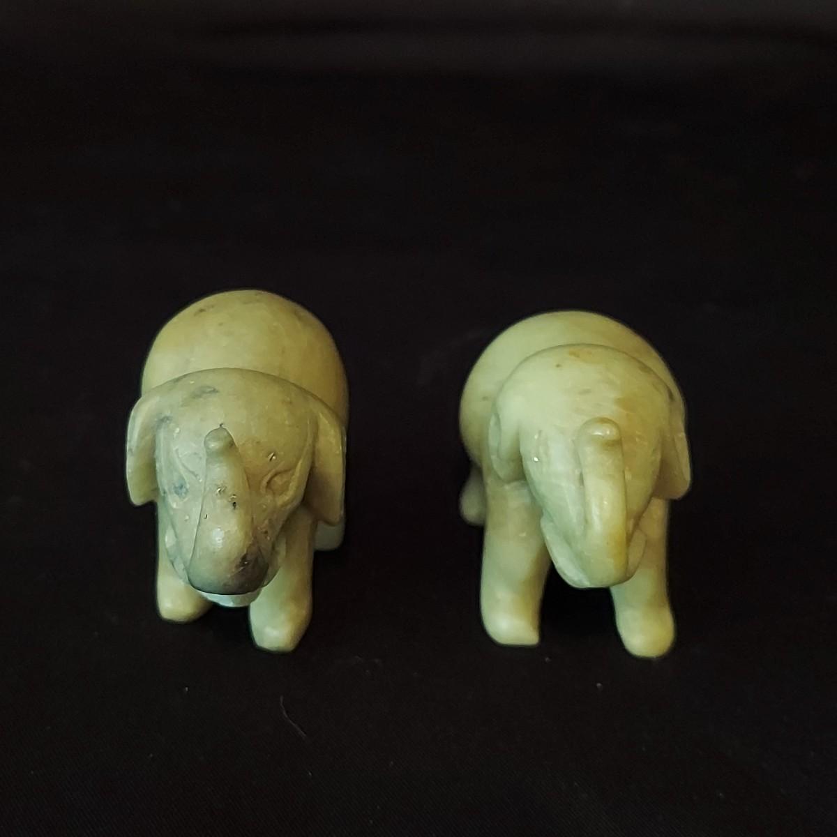 Lot includes a carved stone monkey pyramid figurine with two carved stone elephants. They appear to be soapstone but the stone is very cool to the touch and has a slight green tint and therefore could be jade. The monkeys are 3.5"H. Please see photos for details. Shipping available